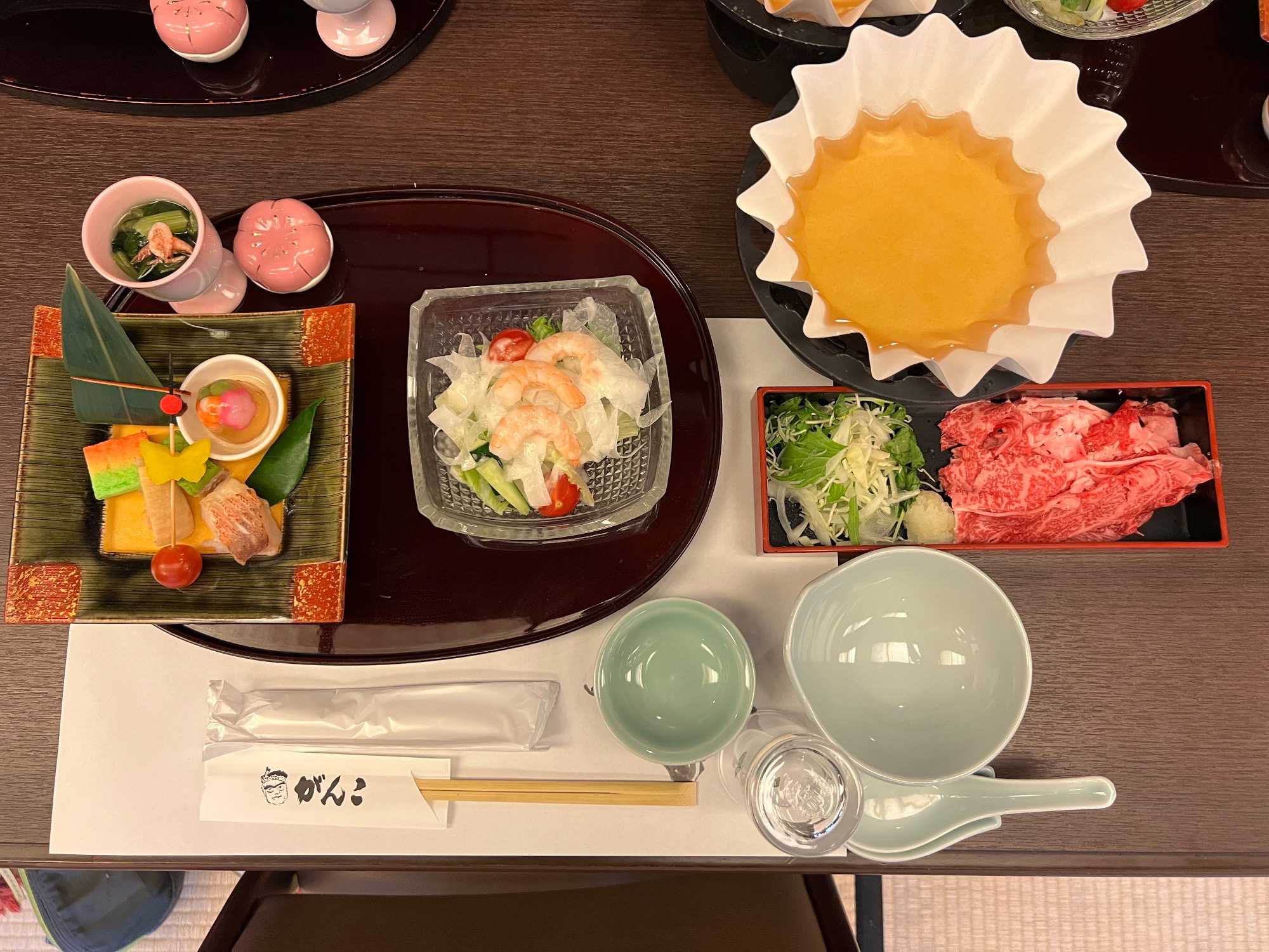 Un excellent souper nous attendais. Cela a vraiment valu la peine de retourner rejoindre les autres. Mousseux en apéritif, vins et bières à volonté, entrée de sushis délicieuse, suivi d’une mini-portion de pâtes bolognaise à se lécher les doigts, de mini-tranches de boeuf wagyu qui se défaisait à la fourchette, et suivi d’un dessert chocolaté sublime. Et tout ça dans un merveilleux décor moderne et entouré de plantes. Nous avons ADORÉ!