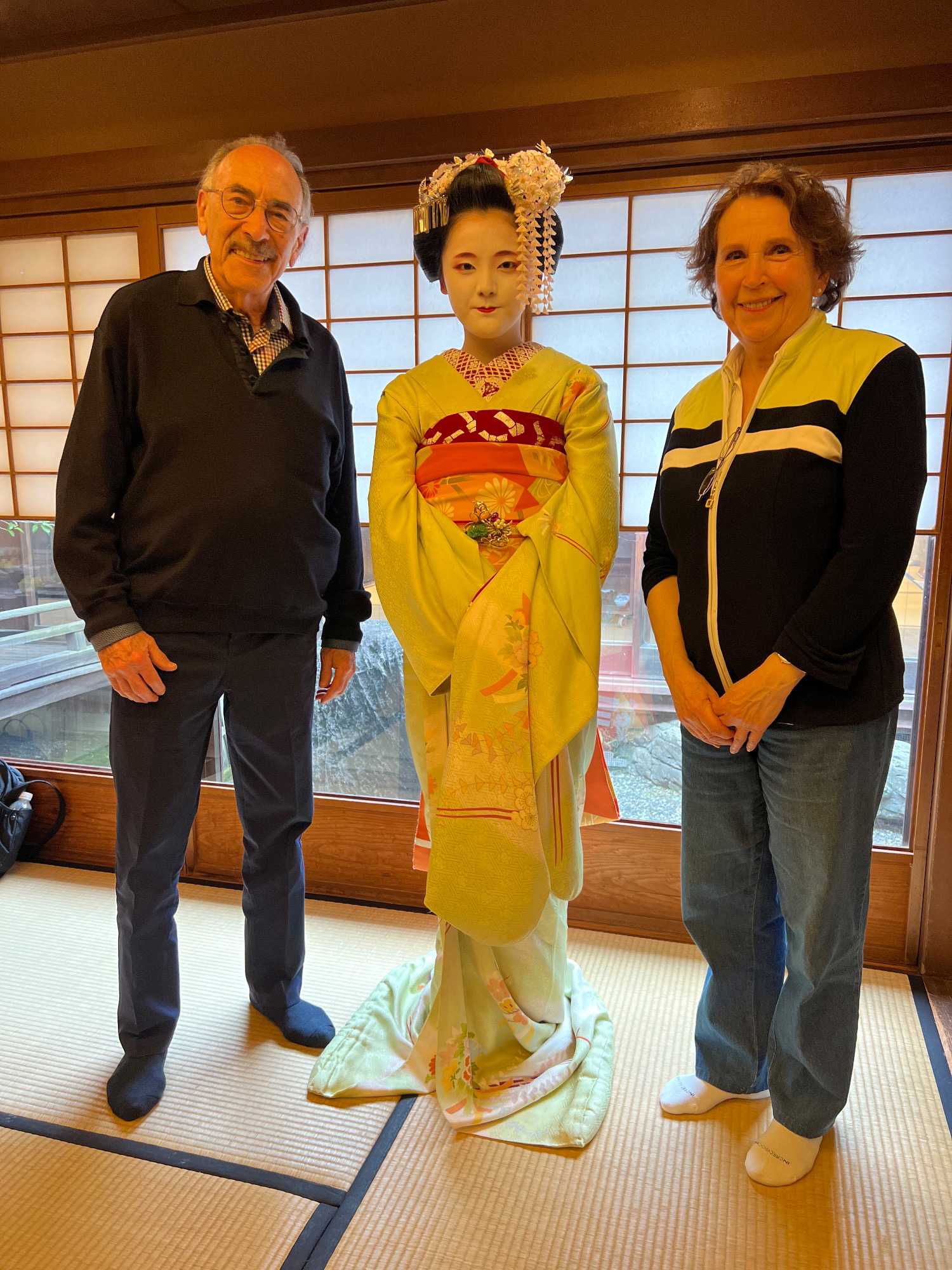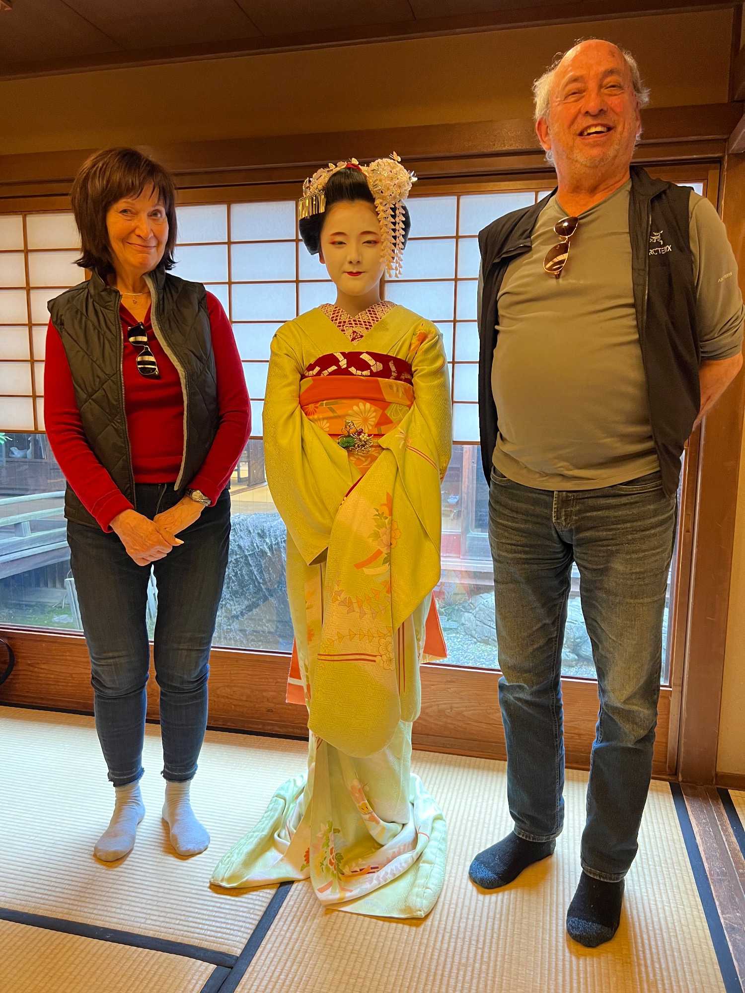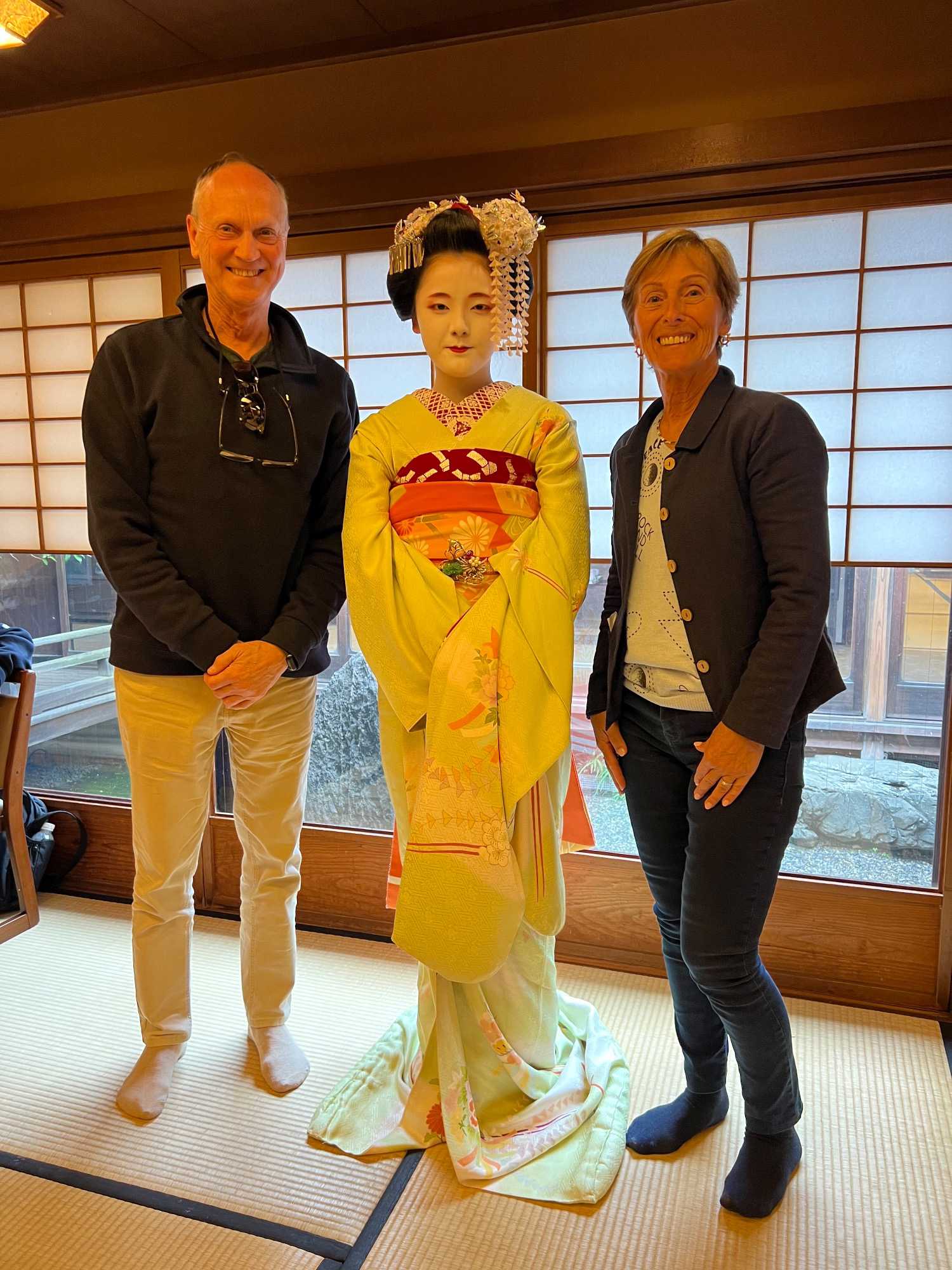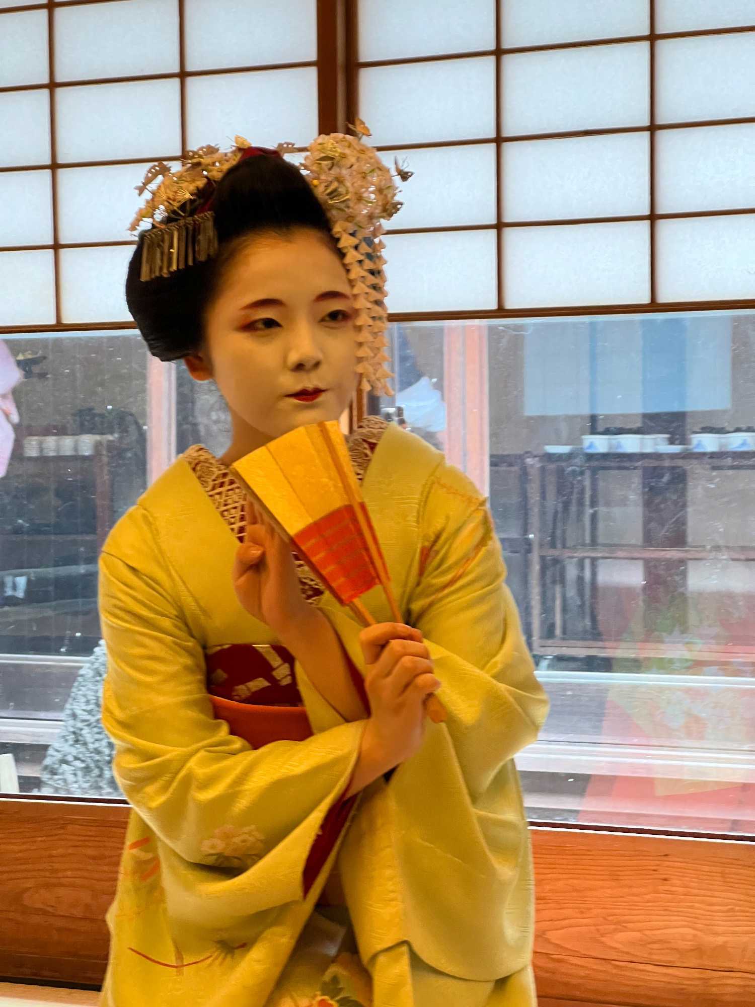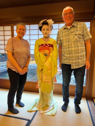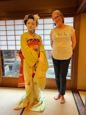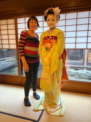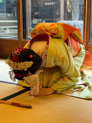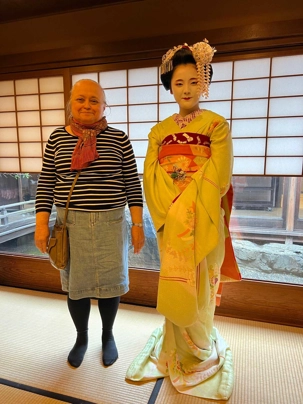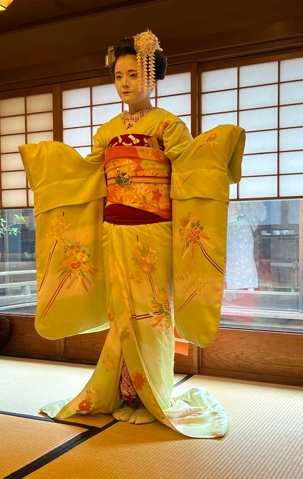 Nous avons la chance de prendre notre repas dans un restaurant traditionnel pour goûter à la cuisine japonaise, constituée de plusieurs petits plats. On n’en fini plus de nous apporter des plats différents, et pour la plupart, que nous n’avons jamais goûté. Tout le monde adore l’expérience. Après avoir mangé, nous avons la chance d’admirer un spectacle de danse japonaise donné par une maiko, c’est le nom donné aux apprenties geishas. Nous admirons l’élégance et la grâce de la maiko dansant au son de la musique traditionnelle, une expérience unique et d’une rareté pour nous, étrangers au Japon. De plus, après le spectacle, nous saisissons l’occasion pour poser nos questions à la maiko pendant que notre guide fait la traduction. C’est avec générosité que la maiko répond sans hésitation à chacune de nos questions.