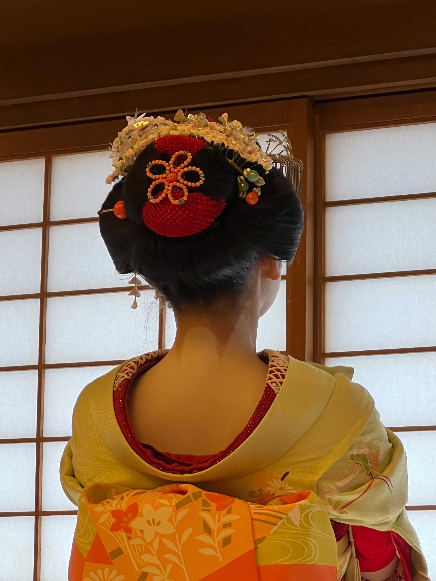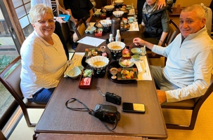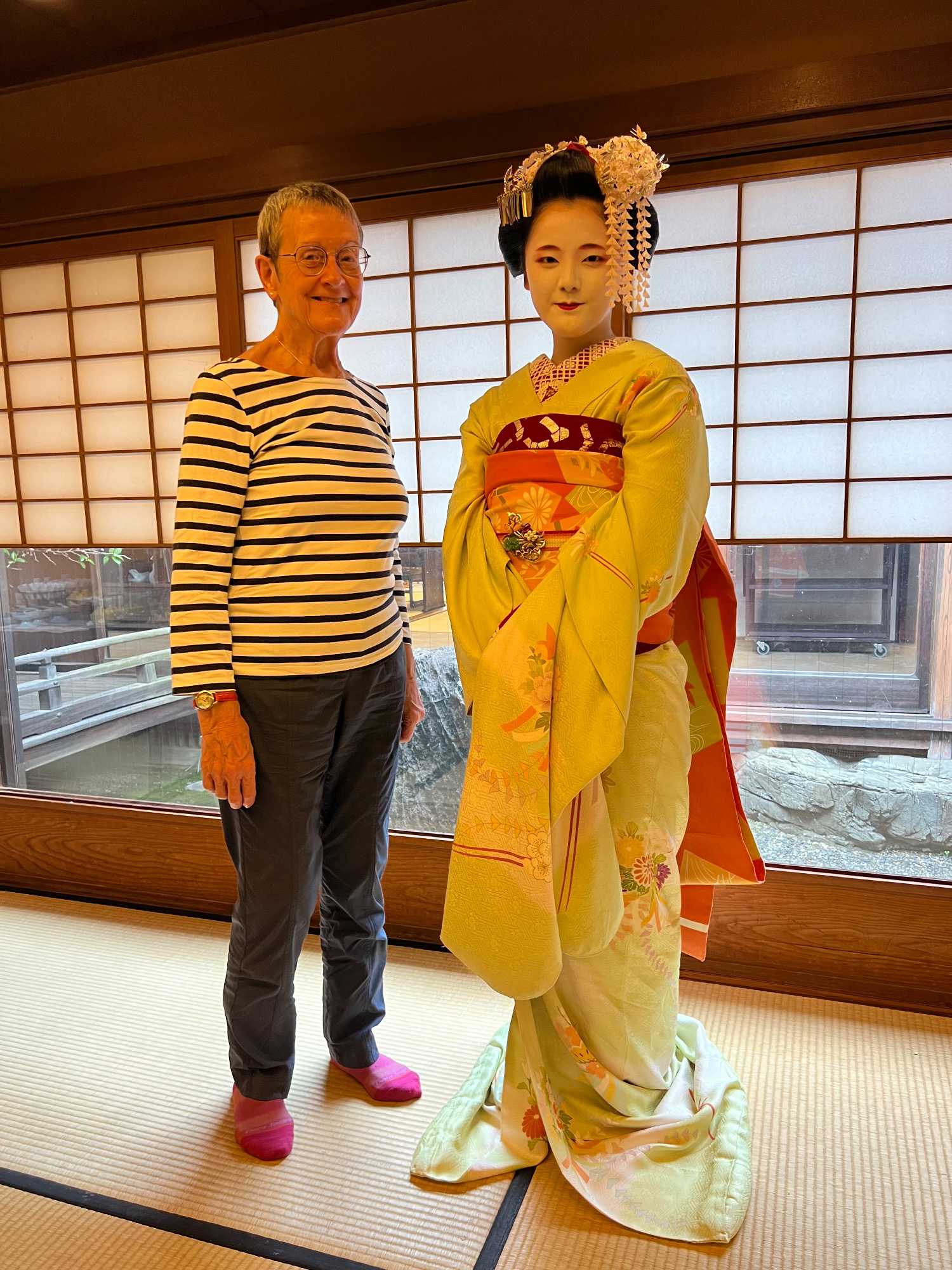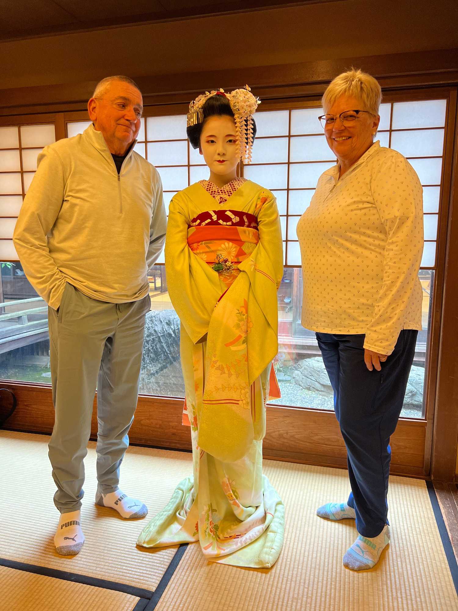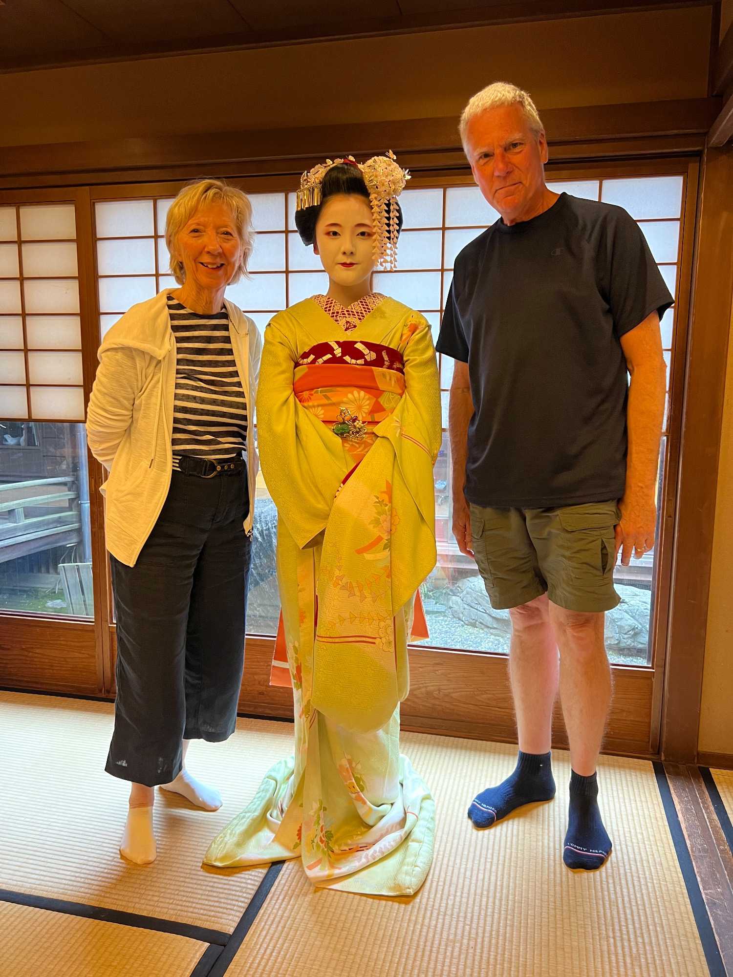 Nous avons la chance de prendre notre repas dans un restaurant traditionnel pour goûter à la cuisine japonaise, constituée de plusieurs petits plats. On n’en fini plus de nous apporter des plats différents, et pour la plupart, que nous n’avons jamais goûté. Tout le monde adore l’expérience. Après avoir mangé, nous avons la chance d’admirer un spectacle de danse japonaise donné par une maiko, c’est le nom donné aux apprenties geishas. Nous admirons l’élégance et la grâce de la maiko dansant au son de la musique traditionnelle, une expérience unique et d’une rareté pour nous, étrangers au Japon. De plus, après le spectacle, nous saisissons l’occasion pour poser nos questions à la maiko pendant que notre guide fait la traduction. C’est avec générosité que la maiko répond sans hésitation à chacune de nos questions.