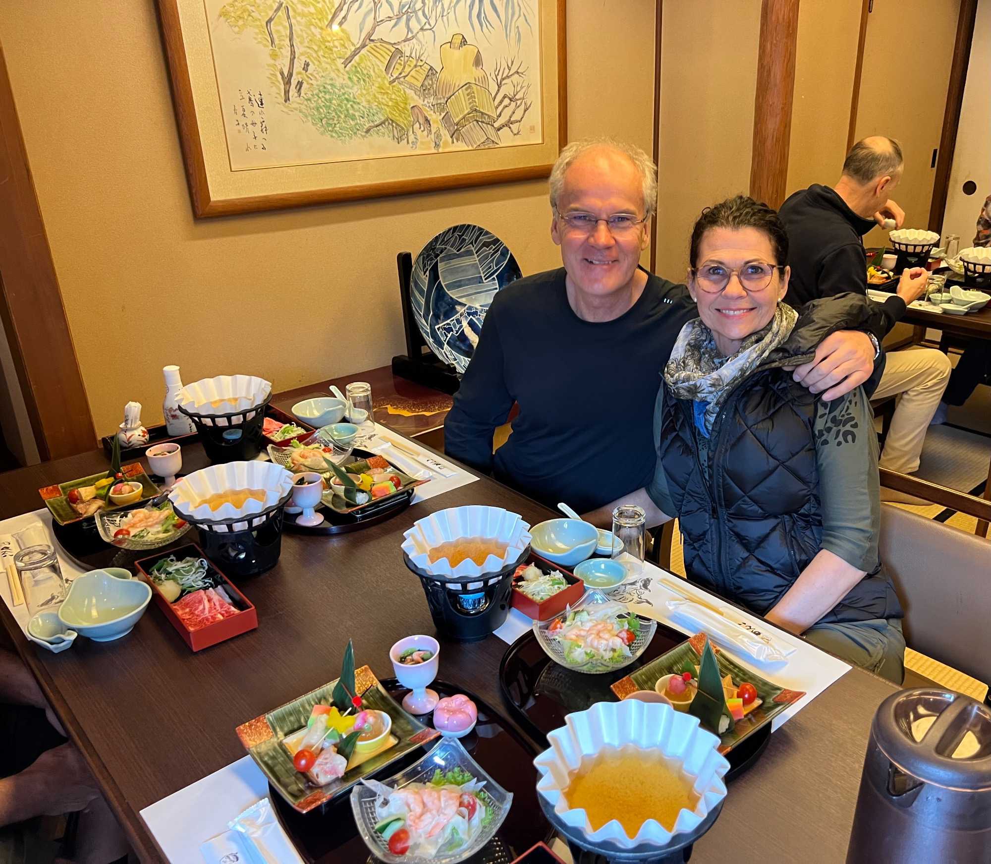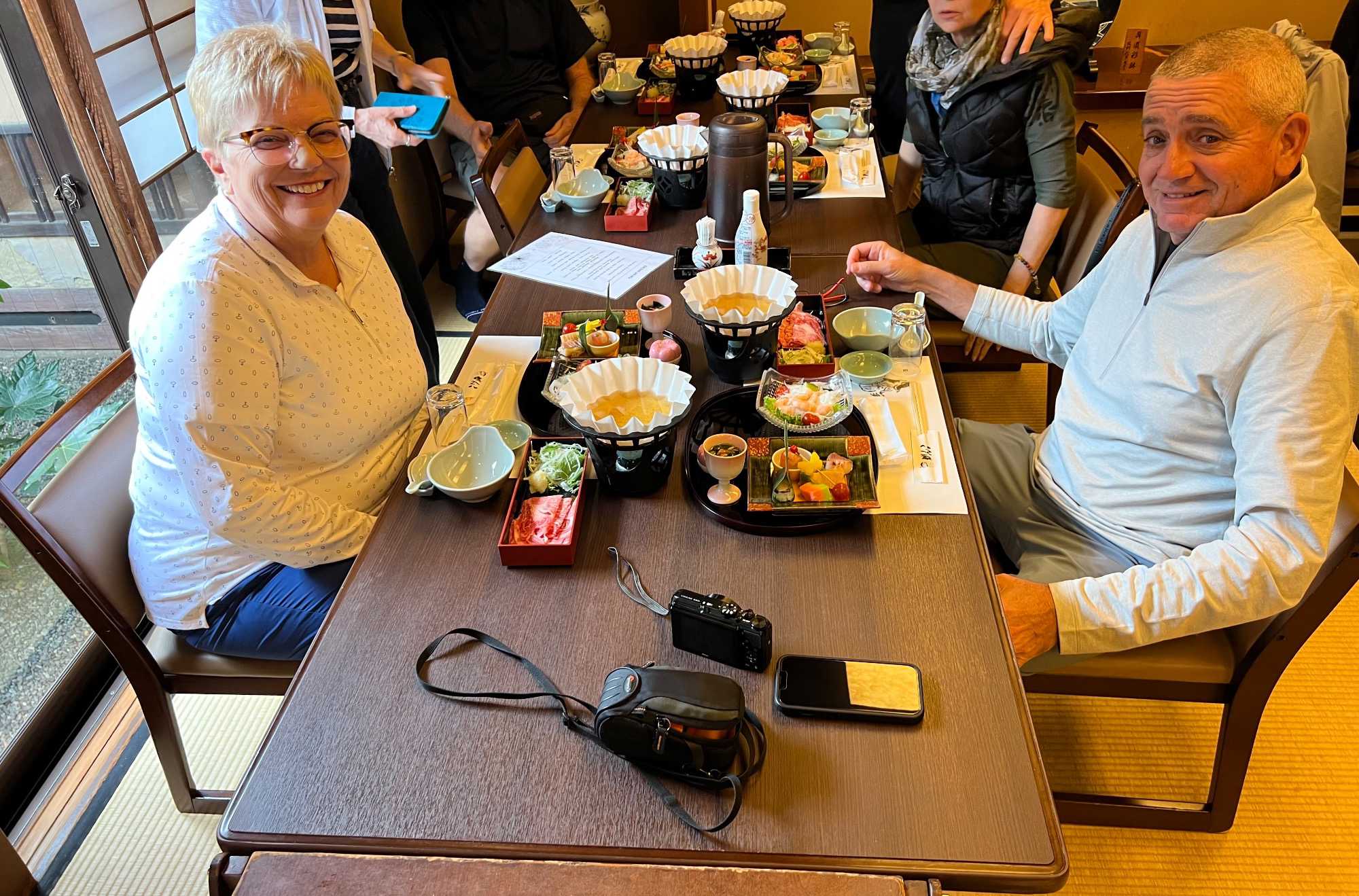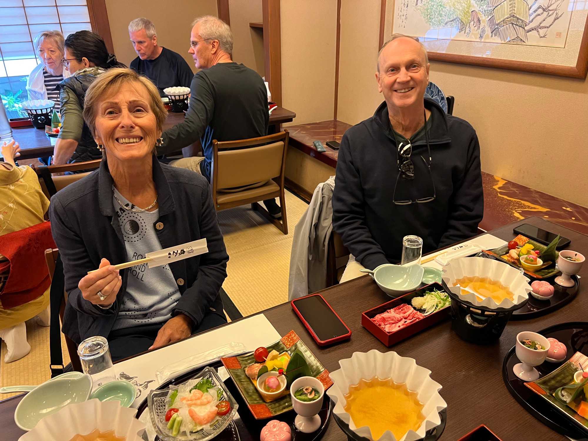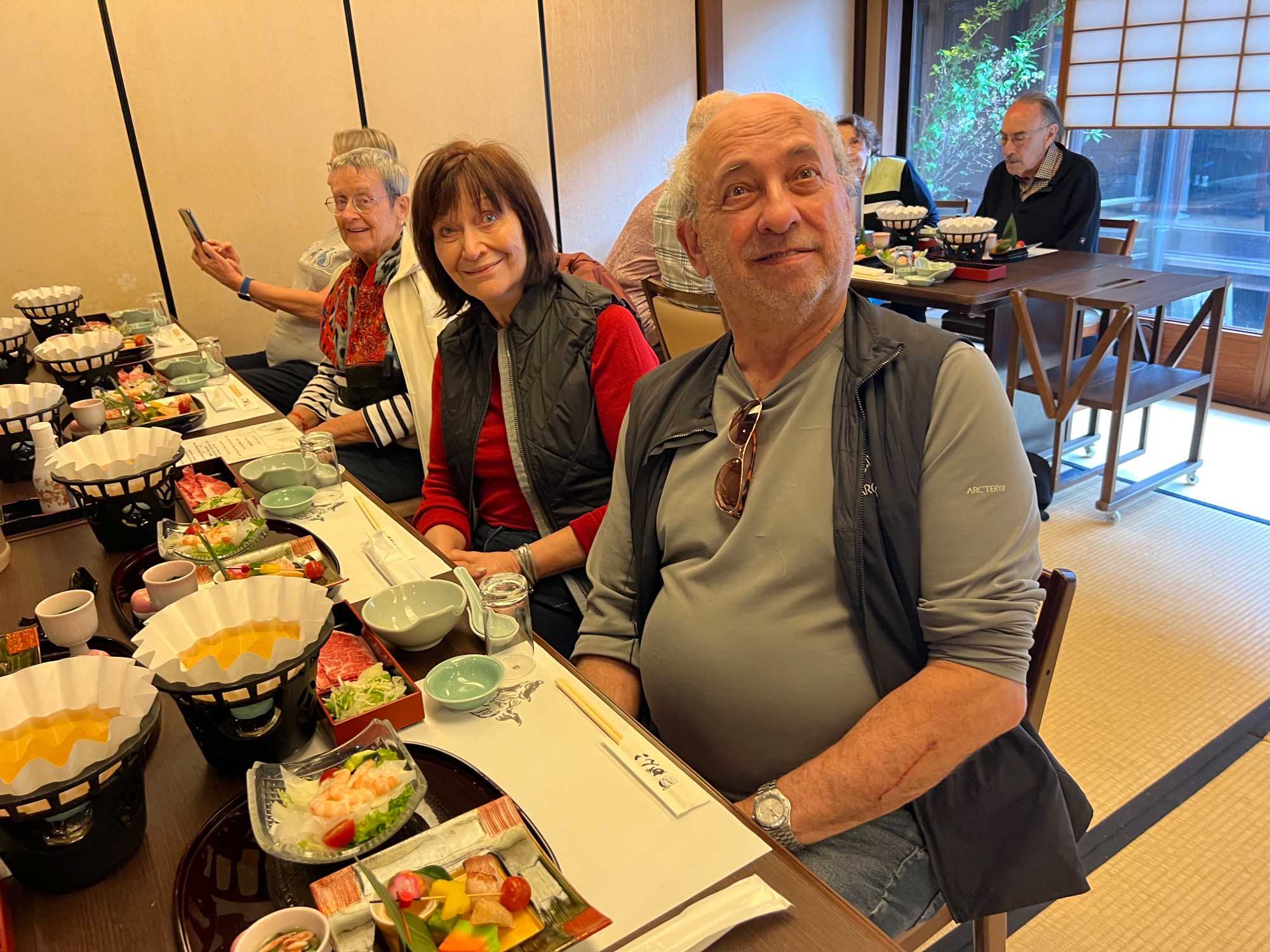 Nous avons la chance de prendre notre repas dans un restaurant traditionnel pour goûter à la cuisine japonaise, constituée de plusieurs petits plats. On n’en fini plus de nous apporter des plats différents, et pour la plupart, que nous n’avons jamais goûté. Tout le monde adore l’expérience. Après avoir mangé, nous avons la chance d’admirer un spectacle de danse japonaise donné par une maiko, c’est le nom donné aux apprenties geishas. Nous admirons l’élégance et la grâce de la maiko dansant au son de la musique traditionnelle, une expérience unique et d’une rareté pour nous, étrangers au Japon. De plus, après le spectacle, nous saisissons l’occasion pour poser nos questions à la maiko pendant que notre guide fait la traduction. C’est avec générosité que la maiko répond sans hésitation à chacune de nos questions.