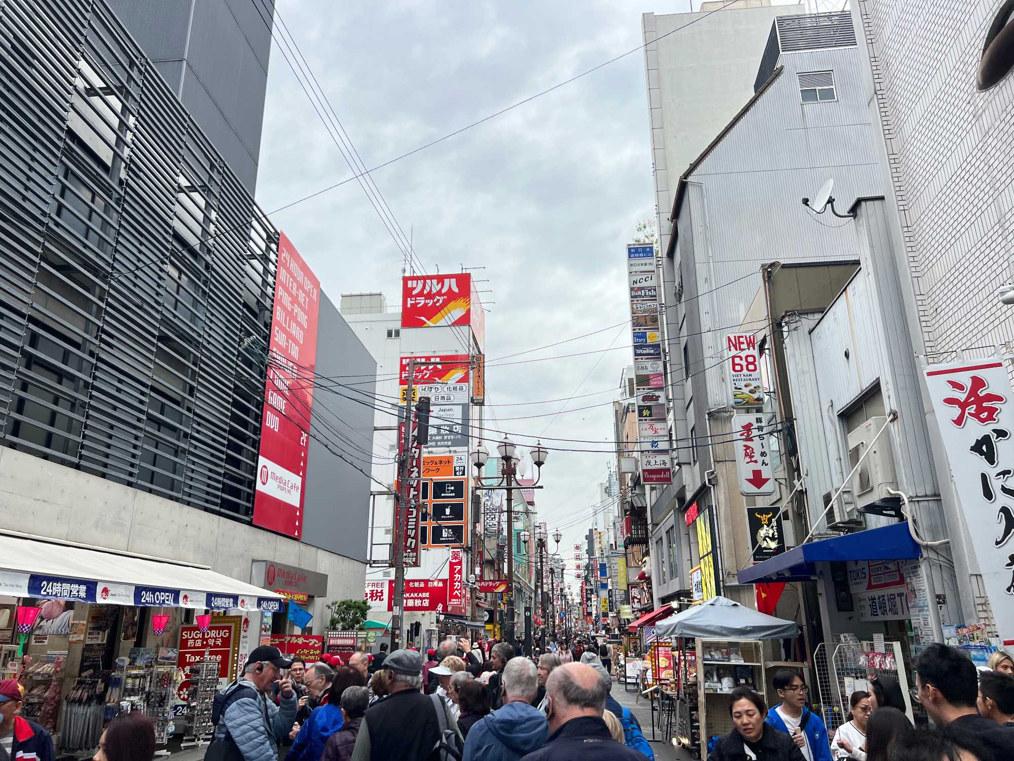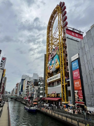 Puis, nous prenons le chemin de retour vers Osaka. Arrivés en ville, notre guide nous fait découvrir le quartier de Dotonbori, l’un des quartiers les plus animés et les plus branchés de la ville, où se trouvent certaines des meilleures boutiques et des meilleurs restaurants. C’est vraiment tout un contraste pour nous: de passer de temples très zen et maintenant à l’effervescence très animée de cette grande ville. Il y a beaucoup de monde, mais comme on est assez tôt dans la journée, c’est encore très bien pour marcher. Après avoir fait la rue principale, on se sépare en quelques groupes: certains restent pour magasiner alors que d’autres préfèrent retourner à l’hôtel. Je les raccompagne à pied: nous avons un peu plus de 3 km à faire sur un grand boulevard, genre « Champs Élysées ». Cela nous fait du bien de marcher un peu 🤣.