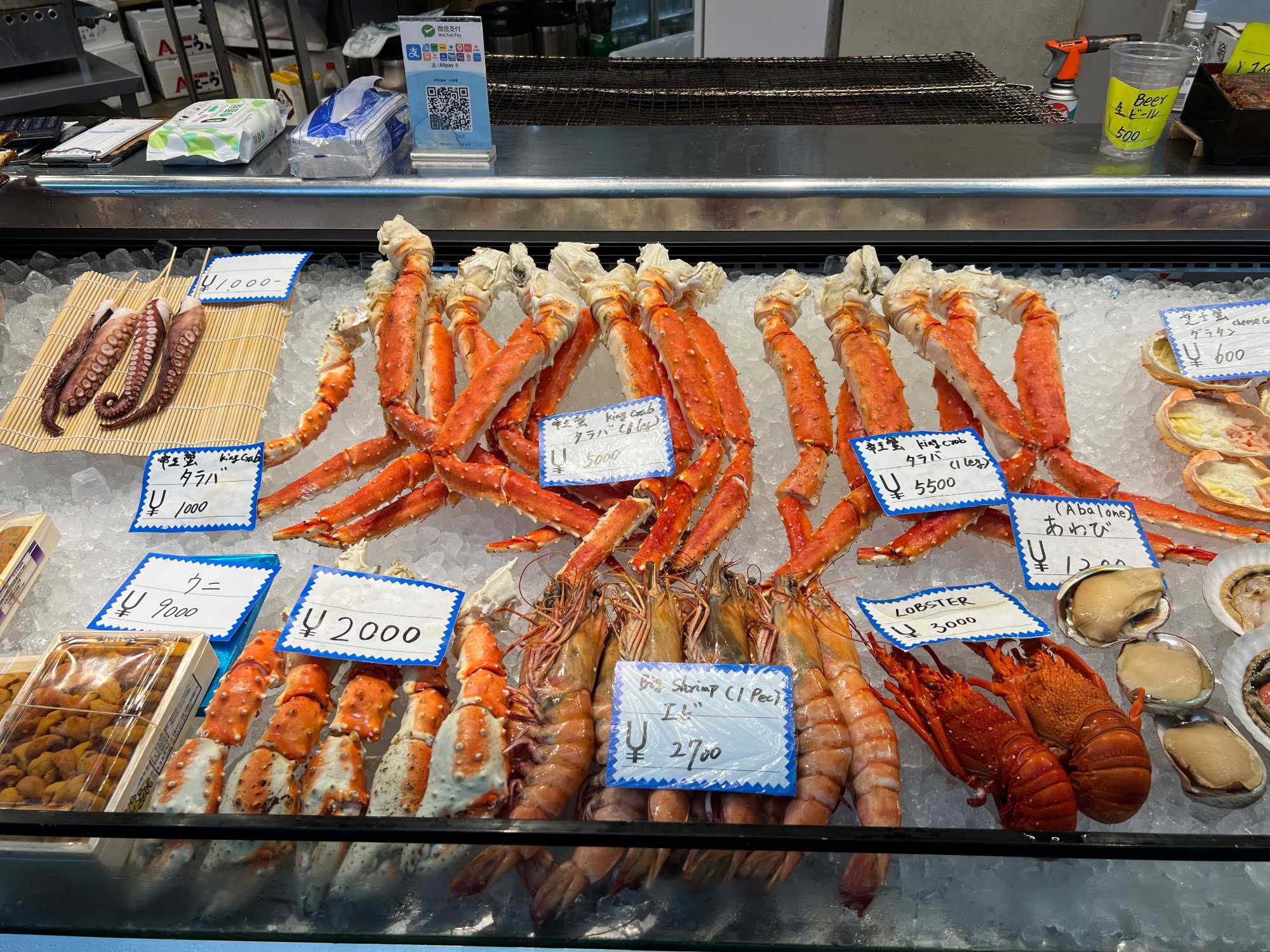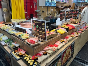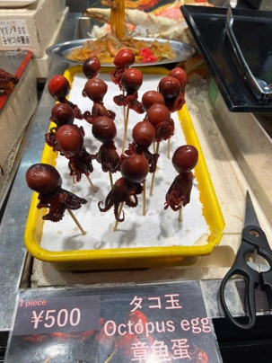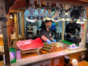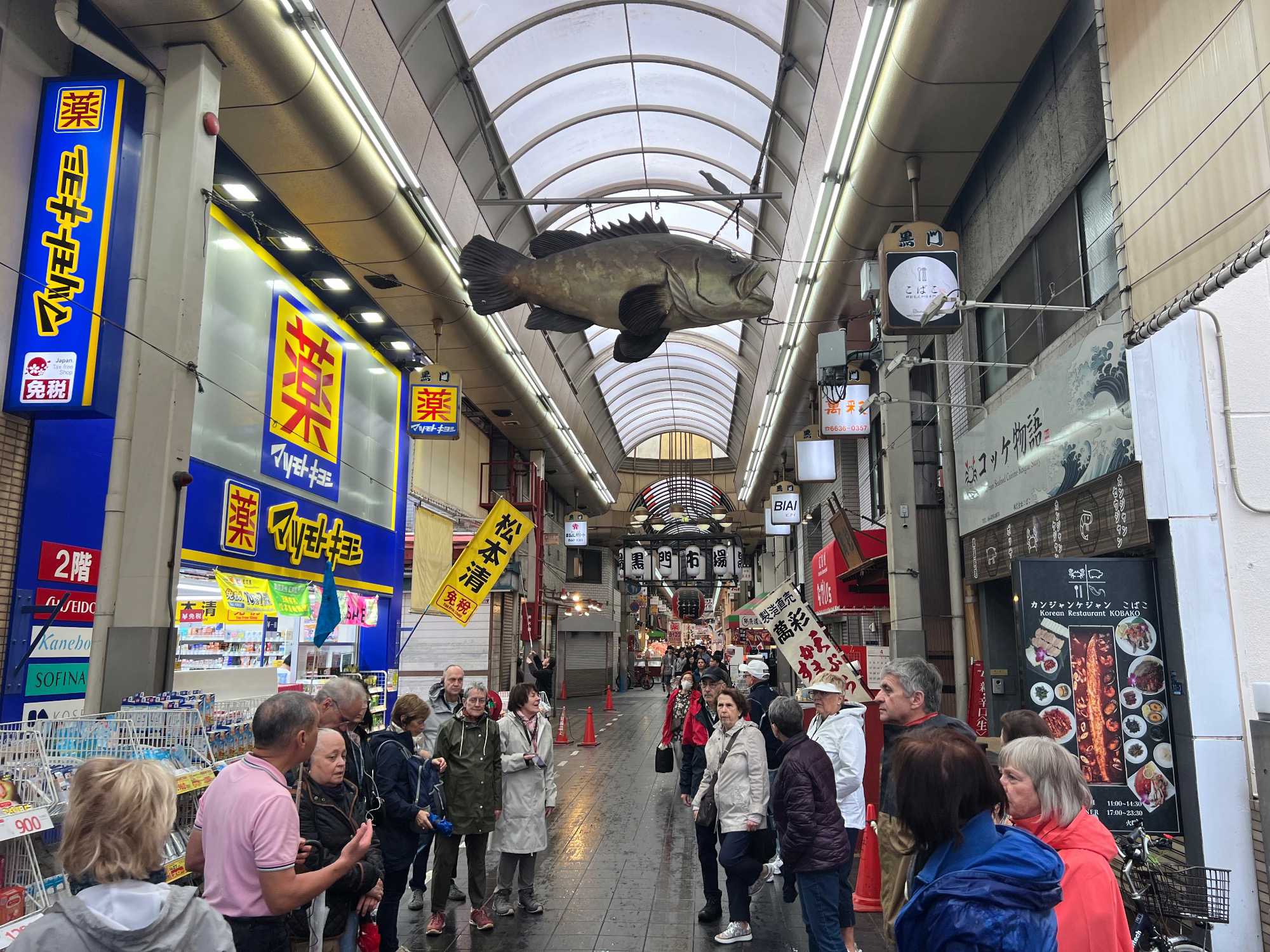 Osaka est la troisième ville la plus peuplée du Japon après Tokyo et Yokohama. Nous débutons notre journée par la visite d’un marché bien connu de la ville: le Kuromon Market. De nombreux produits tels que poissons, viandes et légumes sont vendus dans ce marché où s’approvisionnent les locaux tout comme les chefs de restaurants. Mes voyageurs sont assoiffés de connaissances et Jean est bombardé de questions! Il répond à tout le monde avec son calme olympien. Ce que l’on aime ça!