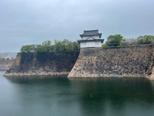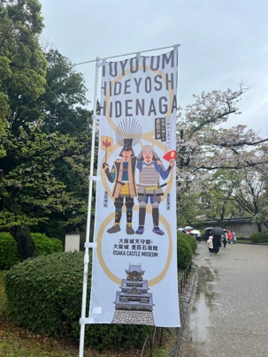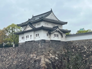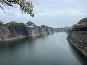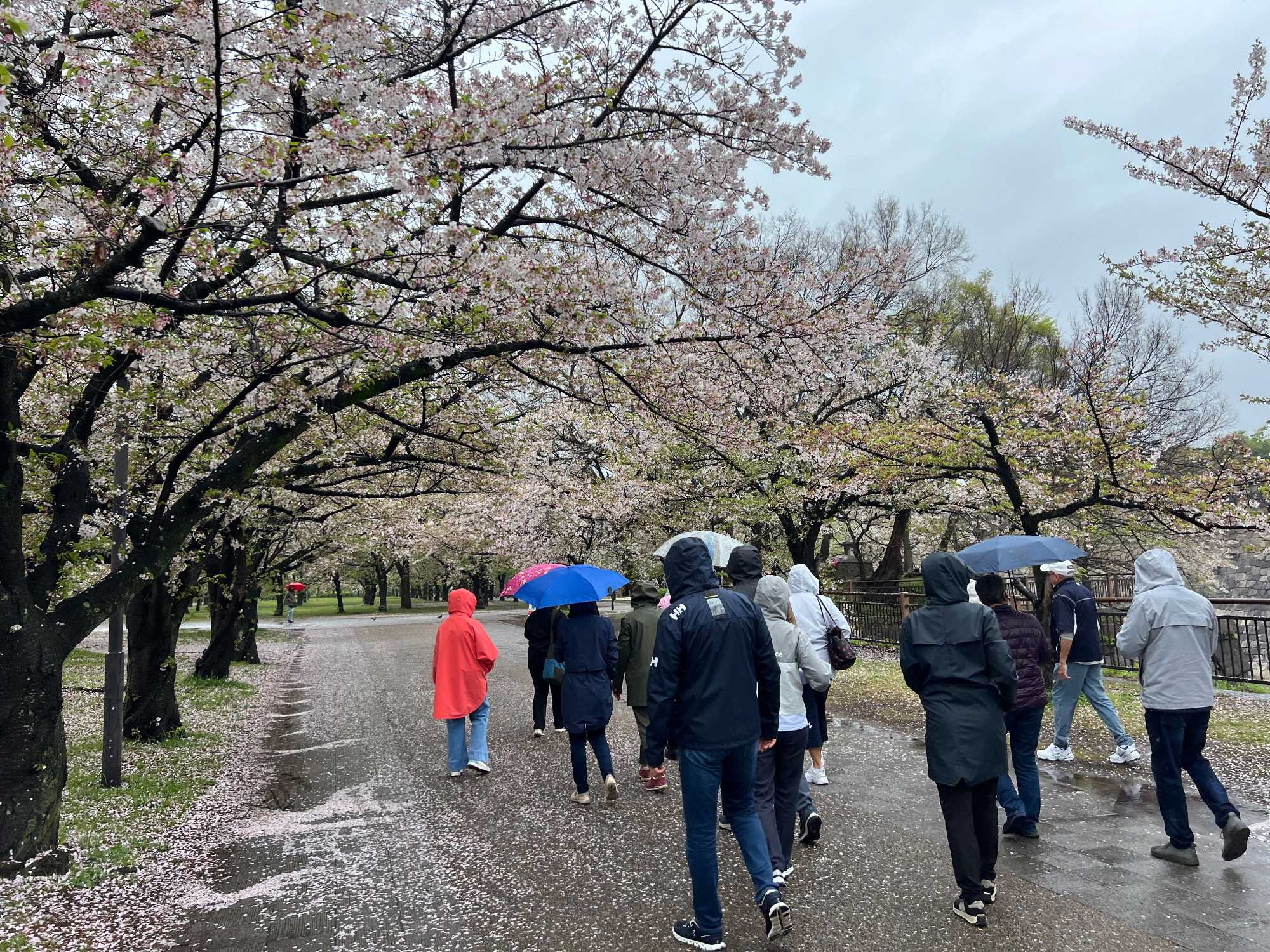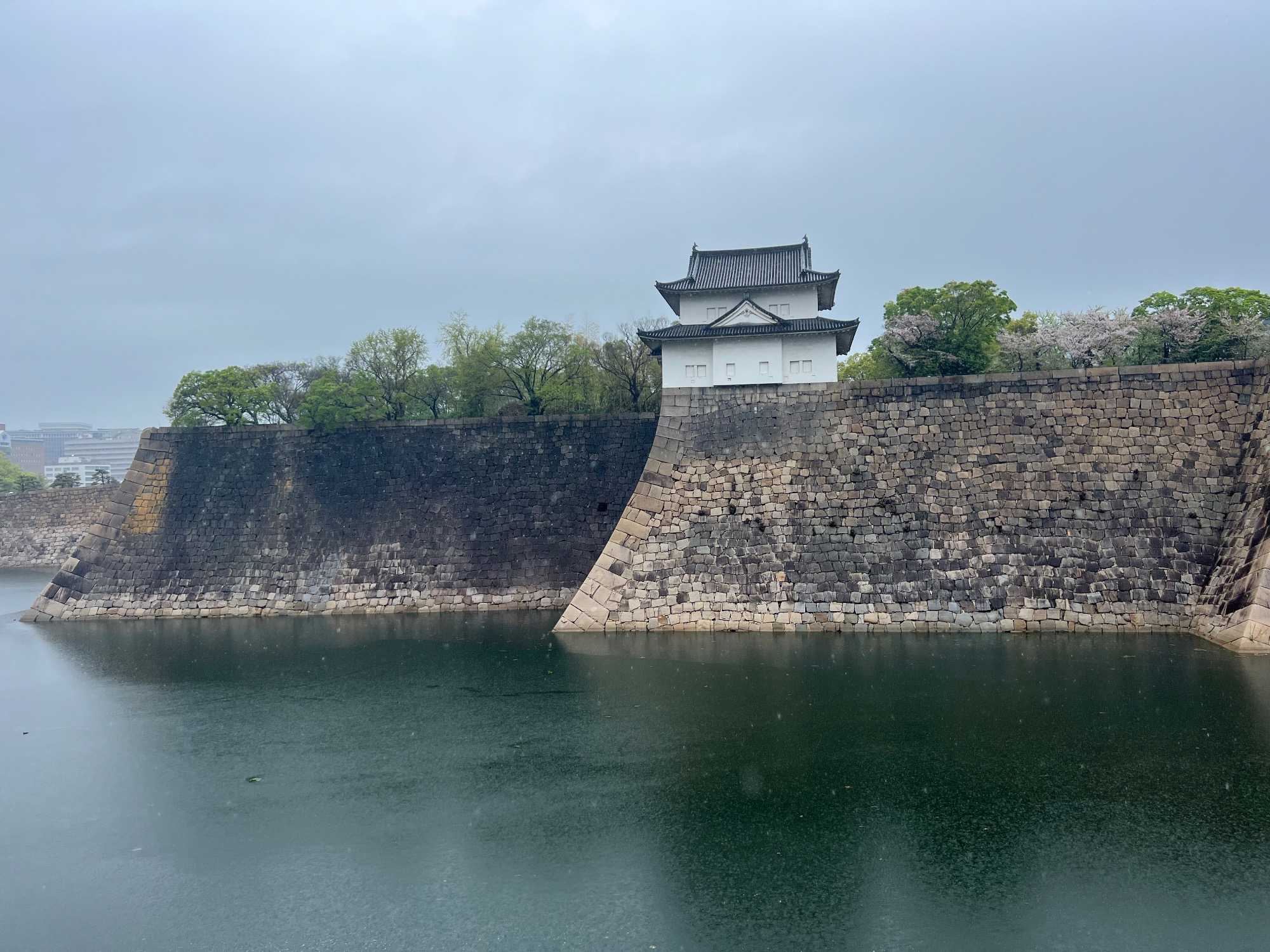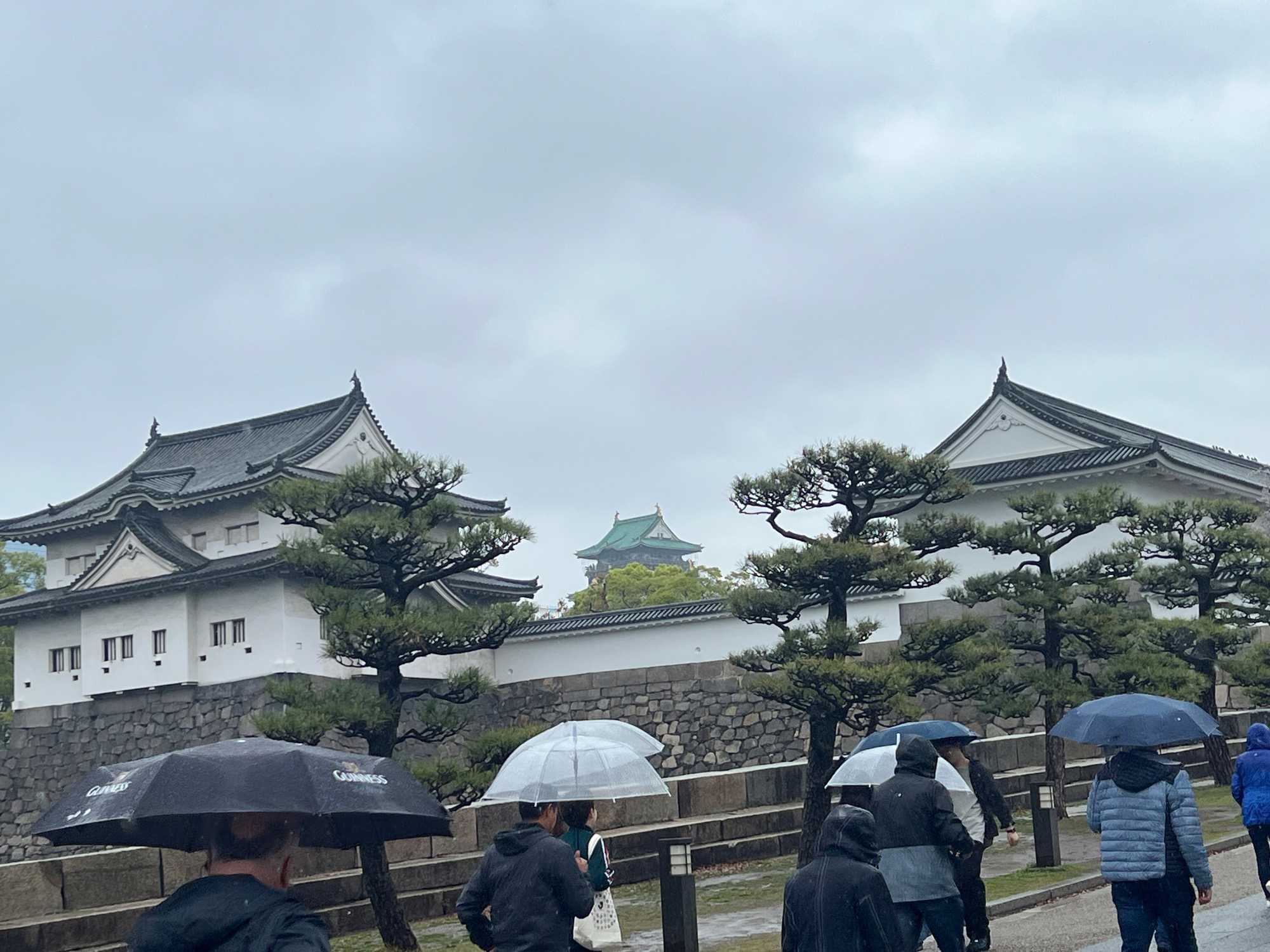 Puis, on fait un petit arrêt près du château d’Osaka. Il pleut quand même assez fort lorsque nous débarquons du bus.