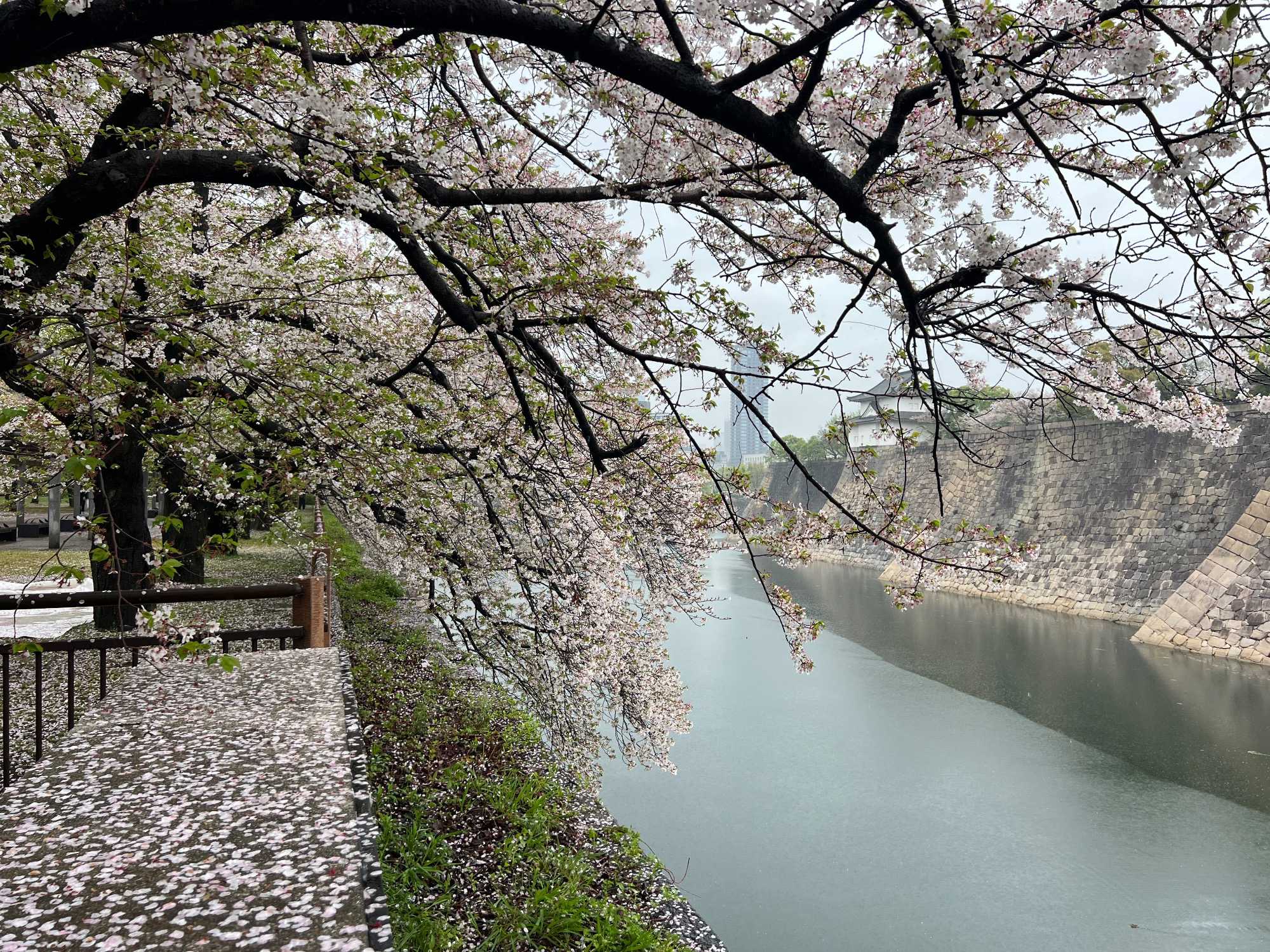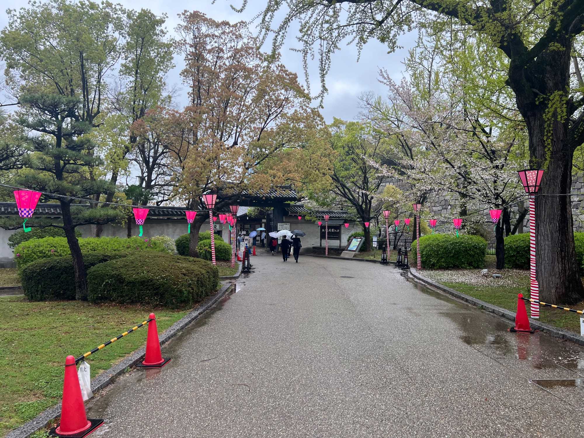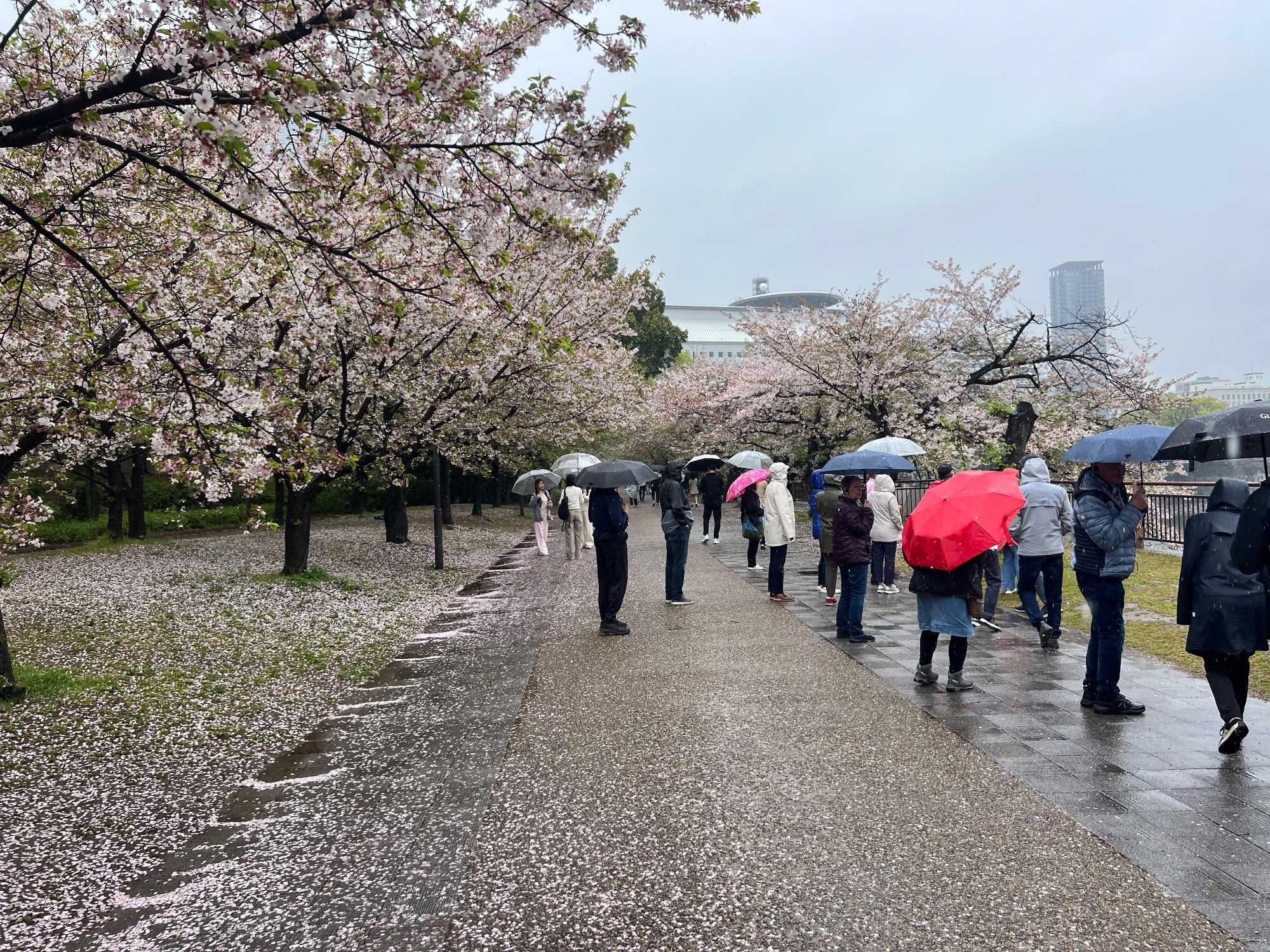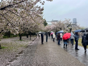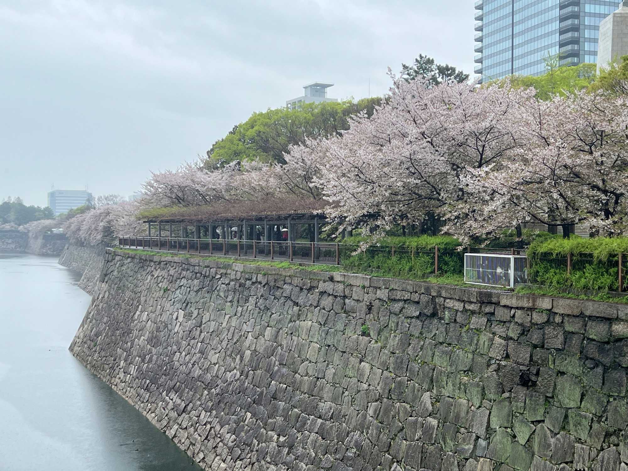 Puis, on fait un petit arrêt près du château d’Osaka. Il pleut quand même assez fort lorsque nous débarquons du bus.