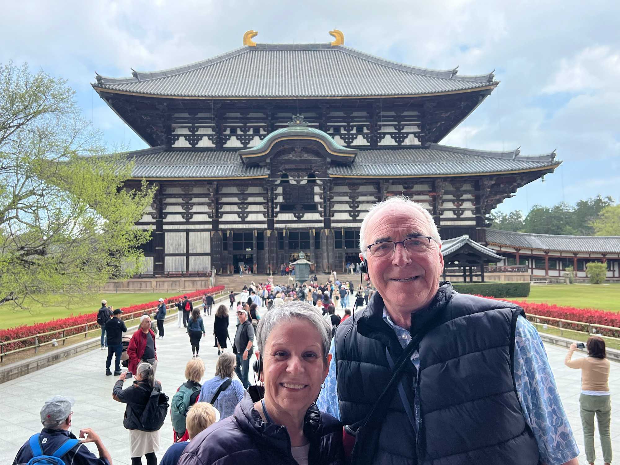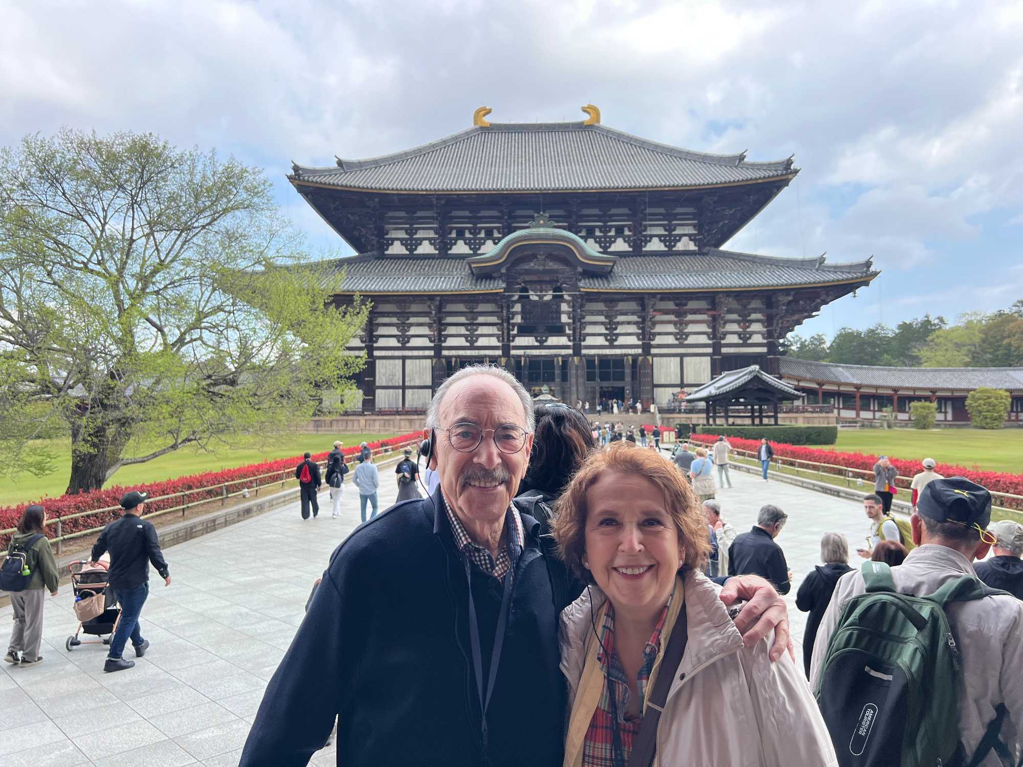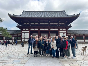 Nous avons une heure de route à faire pour nous rendre à Nara. Il s’agit de la première capitale du Japon (en 710), et elle fut également un des berceaux de l'art, de la littérature et de la culture japonaise. Cette ville entourée de collines comporte certaines des plus anciennes constructions de bois du Japon et huit de ses sites sont sur la liste du patrimoine mondial de l'UNESCO.