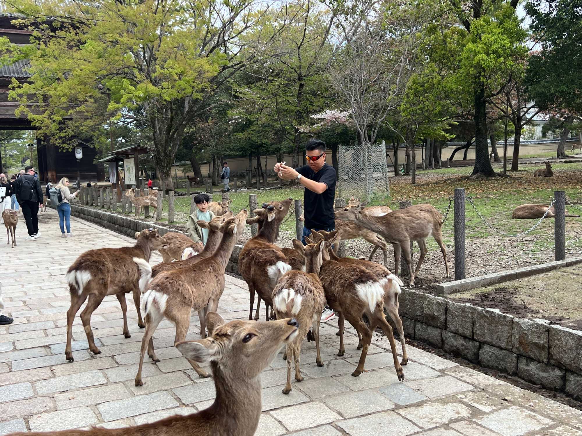 Tout près, le Nara-koen le parc central de la ville, nous fait voir plus d'un millier de daims qui se baladent en toute liberté. Il vaut mieux ne rien avoir à manger dans nos mains ou nos sacs car ils viennent nous sentir d’assez proche…