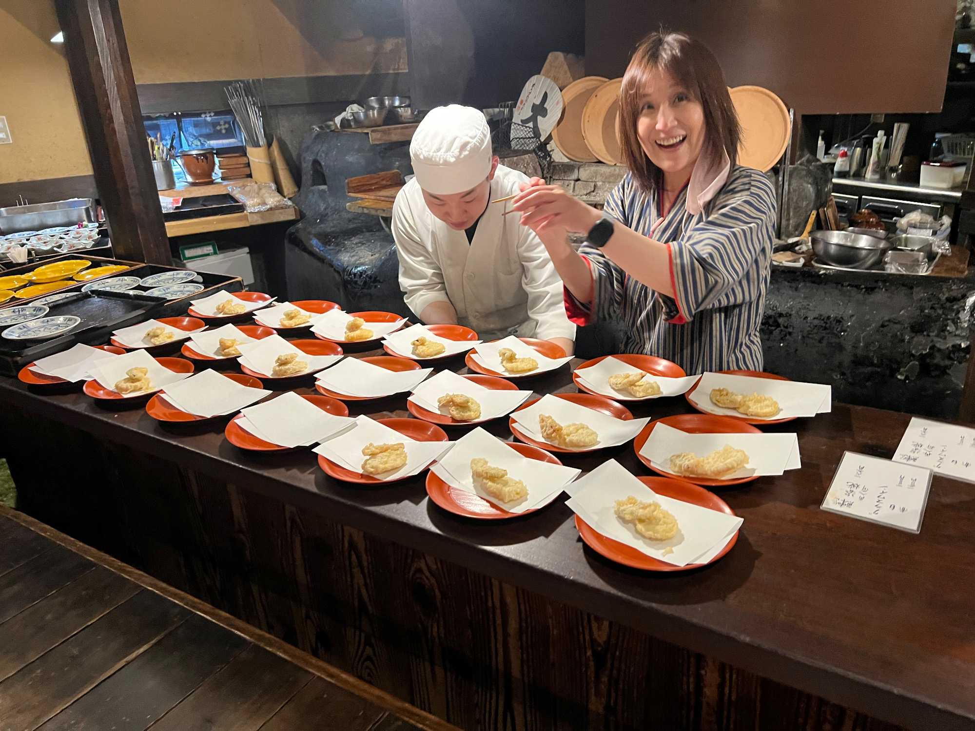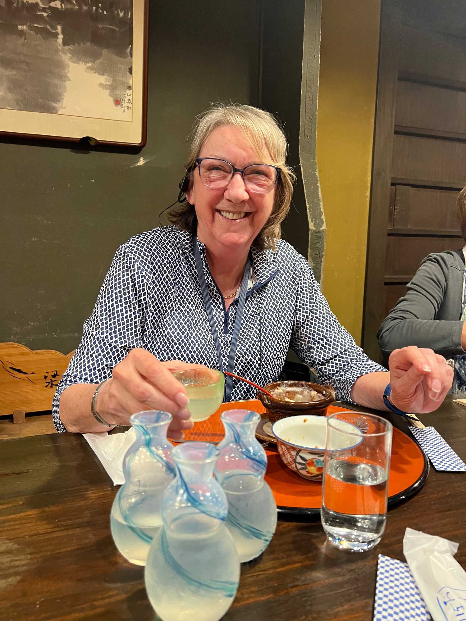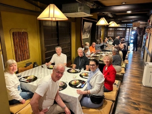 Puis c’est la pause du dîner au restaurant japonais Ryozanpaku. Nous sommes reçus par une charmante jeune fille qui vient nous chercher sur la rue principale. La dame propriétaire a 75 ans et travail encore! On mange super bien. On se régale vraiment et leur crème brûlée est un vrai délice! Lorsqu’on a terminé notre repas, la jeune fille vient nous reconduire à la rue. Elle était tellement charmante qu’on l’aurait bien embarqué avec nous dans le bus!