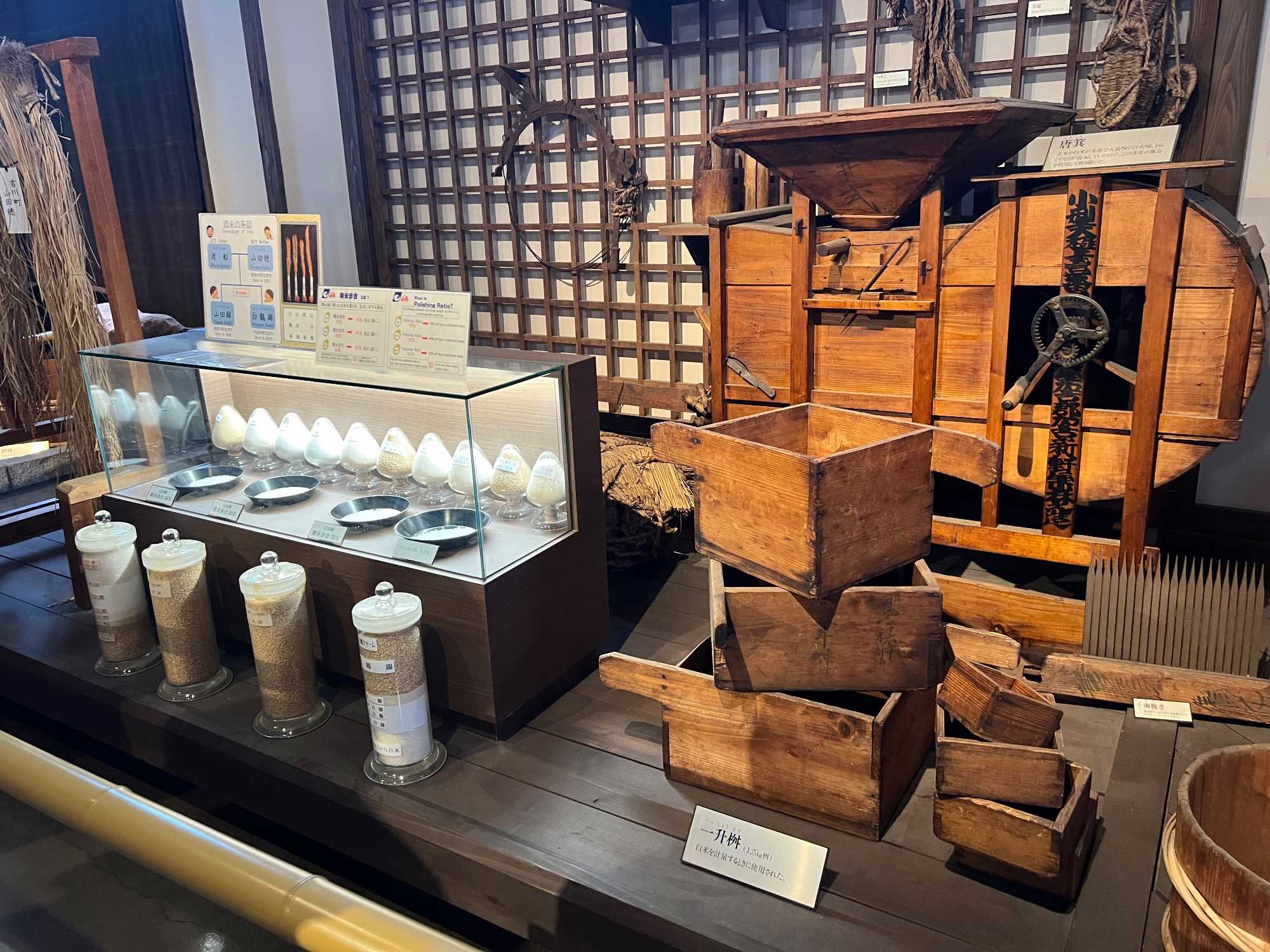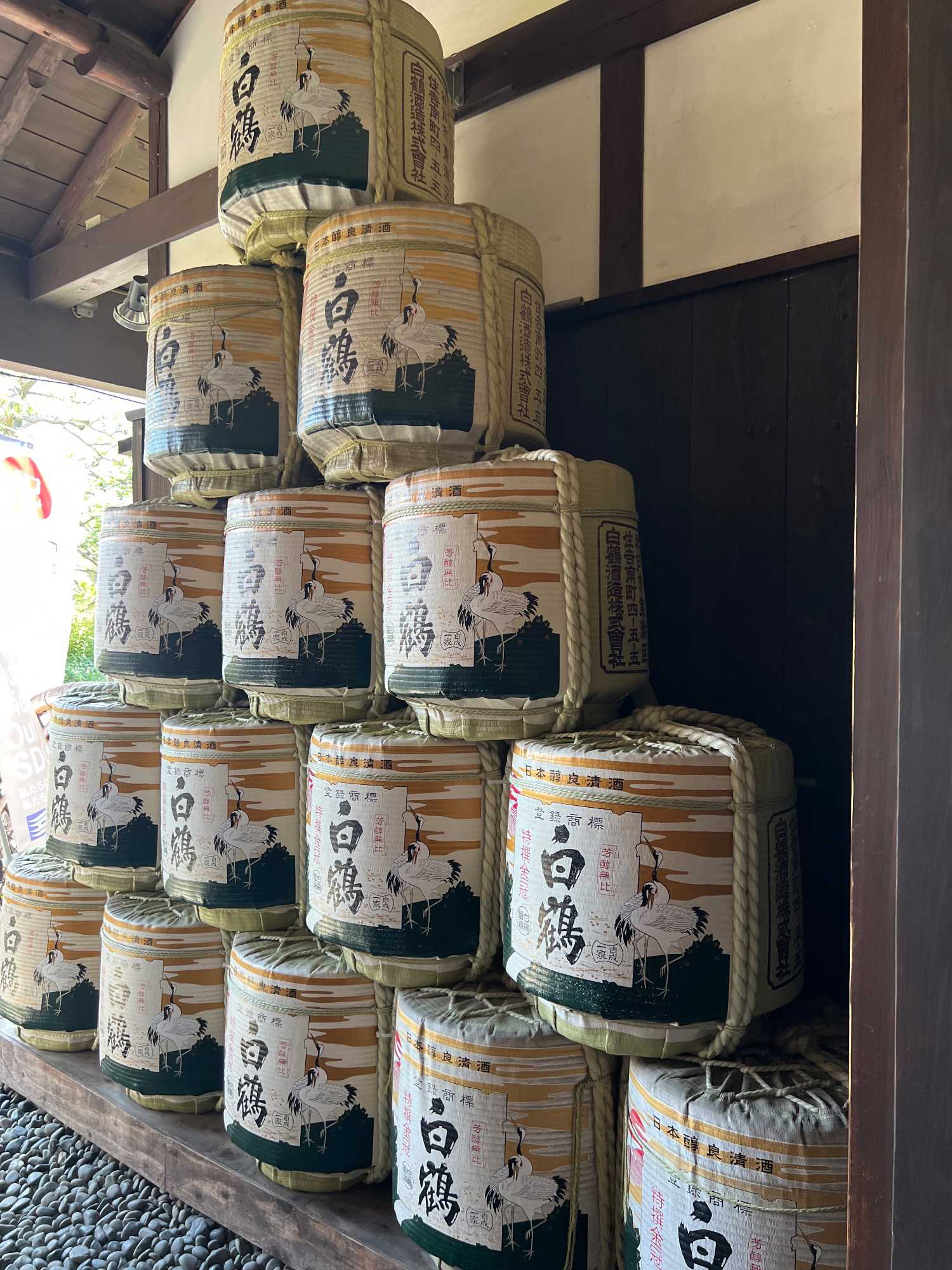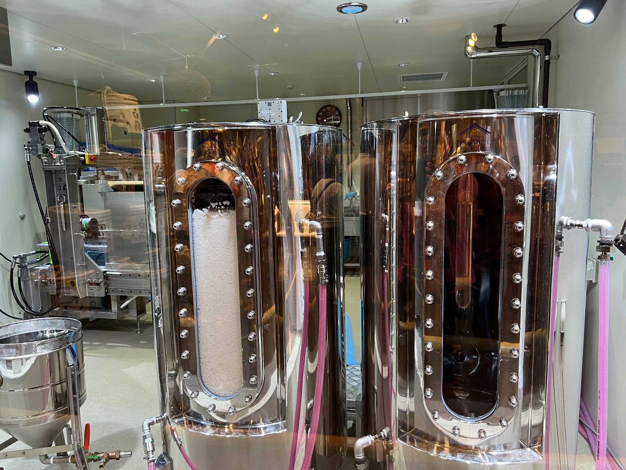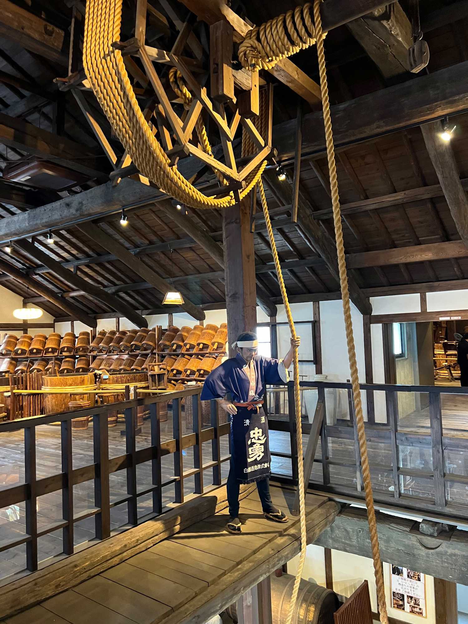 Après le dîner, nous retournons vers Kobe, où une visite du musée du saké Hakutsuru nous attend. On y voit la façon traditionnelle de fabriquer du saké… et une petite dégustation est de mise! Fondée en 1743 à Kobe, Hakutsuru est l'une des plus anciennes et plus grandes brasseries de saké au Japon. Elle produit des sakés élégants, souvent frais et fruités, utilisant l'eau pure du Mont Rokko. Étant donné que la qualité de l’eau utilisée dans le processus de brassage influence la qualité et la saveur du saké, l’utilisation d’une eau aussi pure vise à garantir une boisson au goût supérieur. La visite commence dans l'espace musée, où Jean nous apprend l'histoire et les bases de la fabrication du saké, ainsi que les différentes variétés. Heureusement qu’il nous a donné une bonne formation dans le bus, cela nous permet d’apprécier pleinement la découverte du lieu. Pour tous ceux qui s'intéressent au saké, c'est un aperçu fascinant de la boisson et de la façon dont elle est produite.