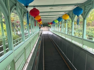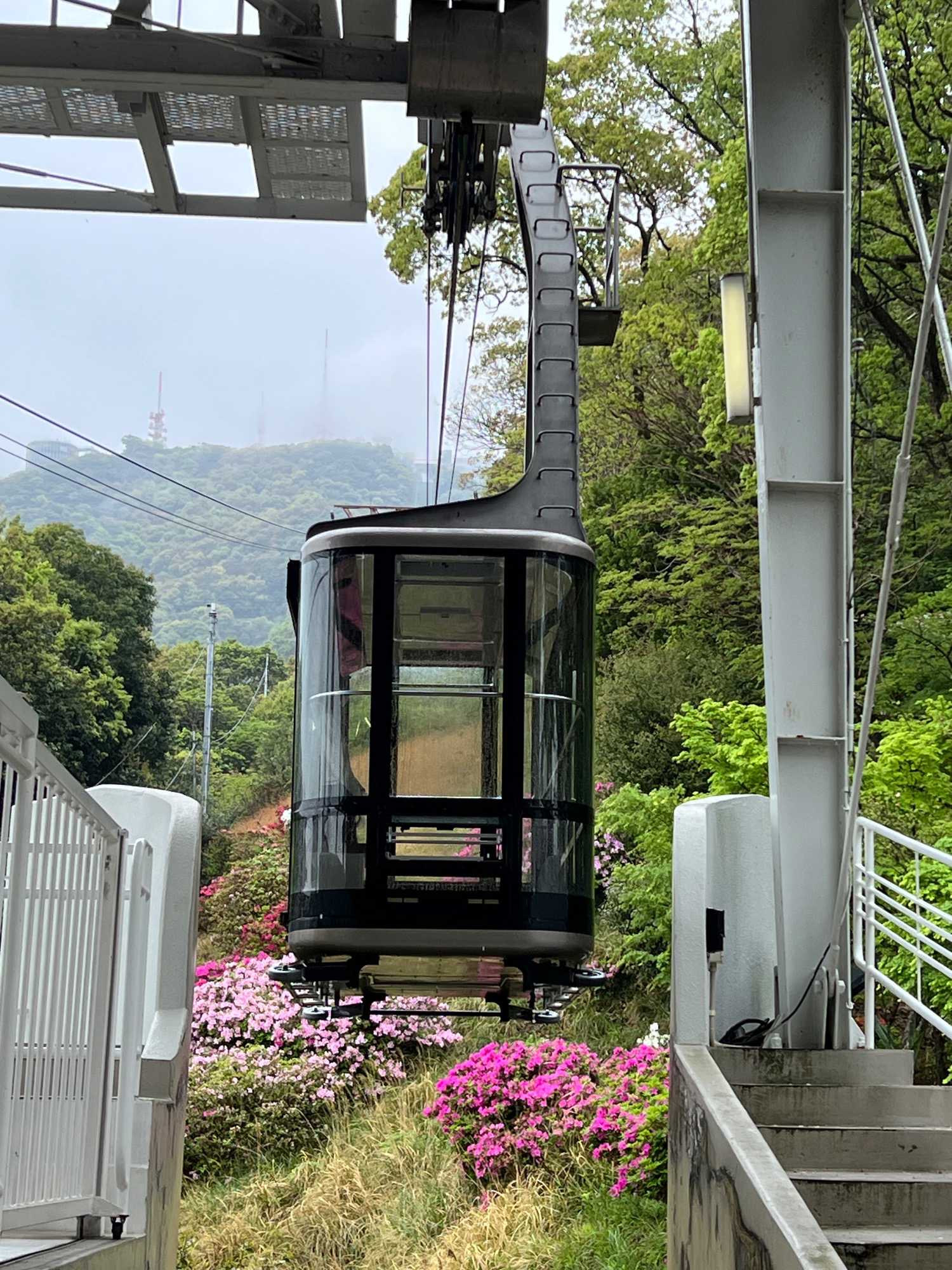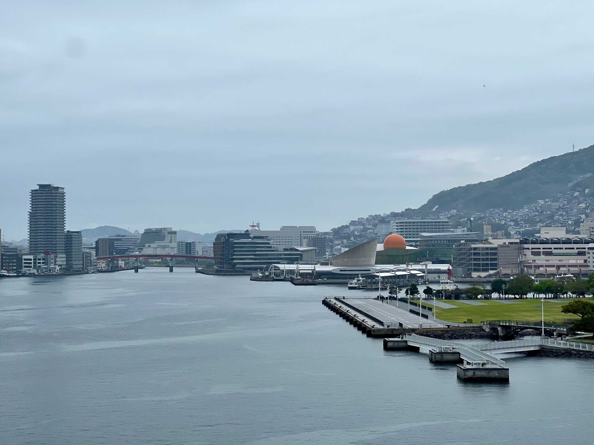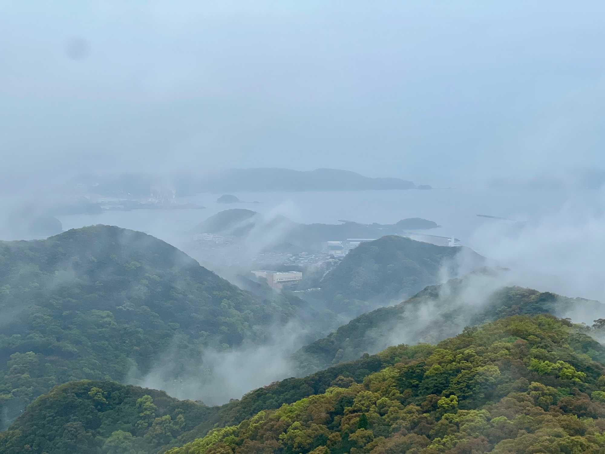 La visite prend ensuite de la hauteur avec l’ascension en téléphérique vers le mont Inasa. De là-haut, le regard s’ouvre sur un panorama exceptionnel à 360 degrés : la ville de Nagasaki, son port en forme d’amphithéâtre naturel, ses collines verdoyantes et son front de mer animé forment un tableau très joli. Les nuages et la brume étaient de la partie, mais on a quand même pu avoir un bel aperçu.