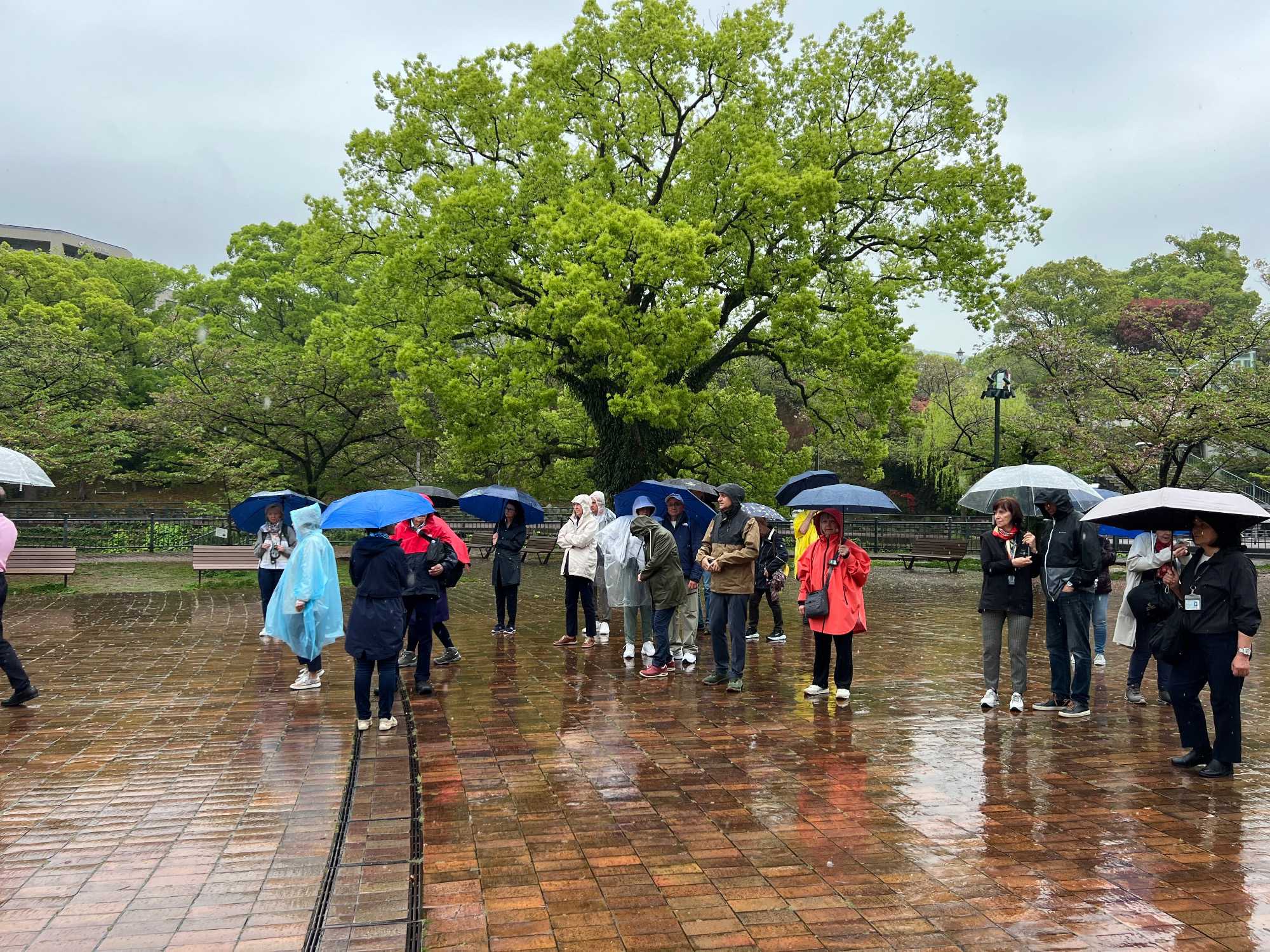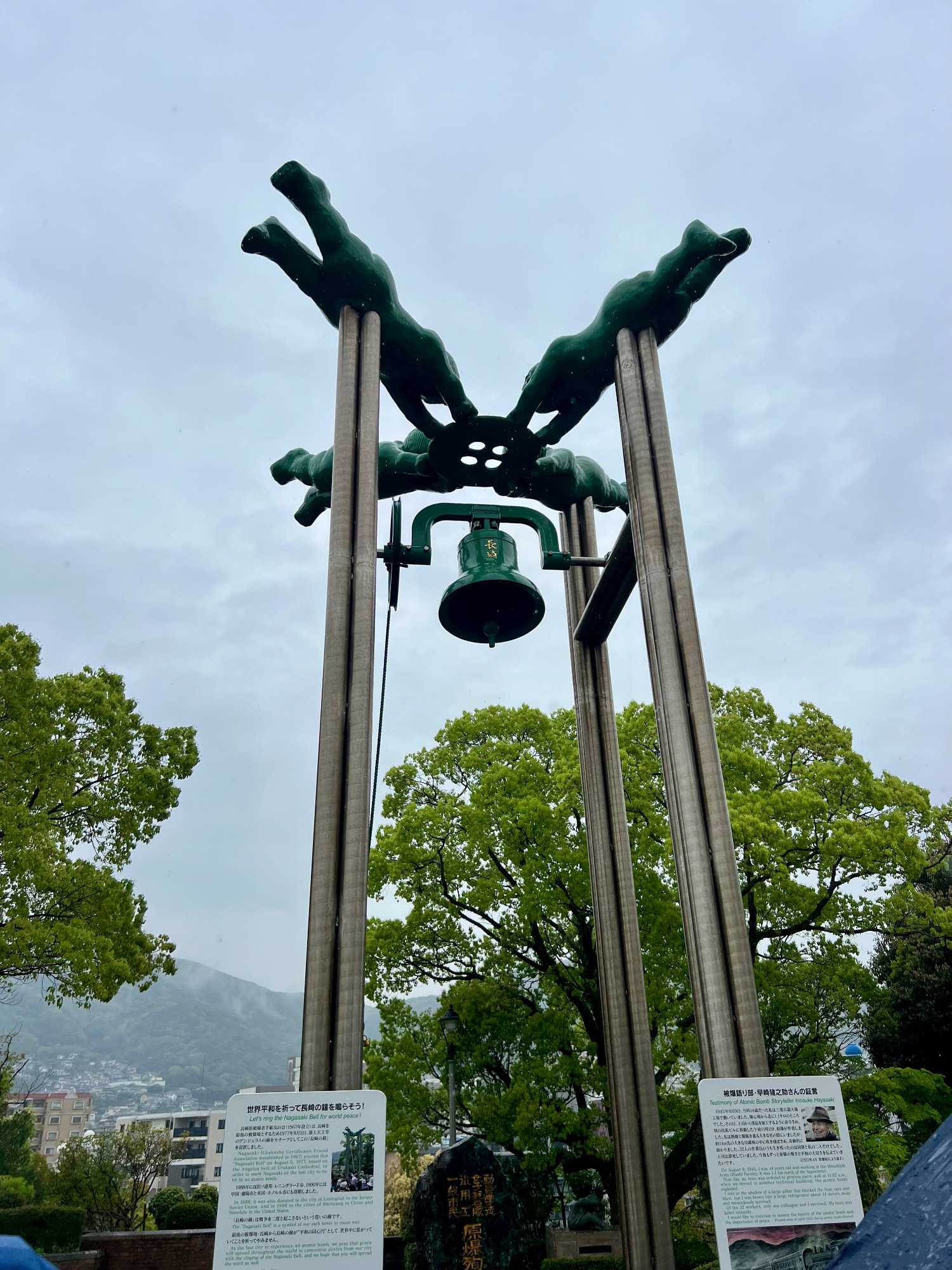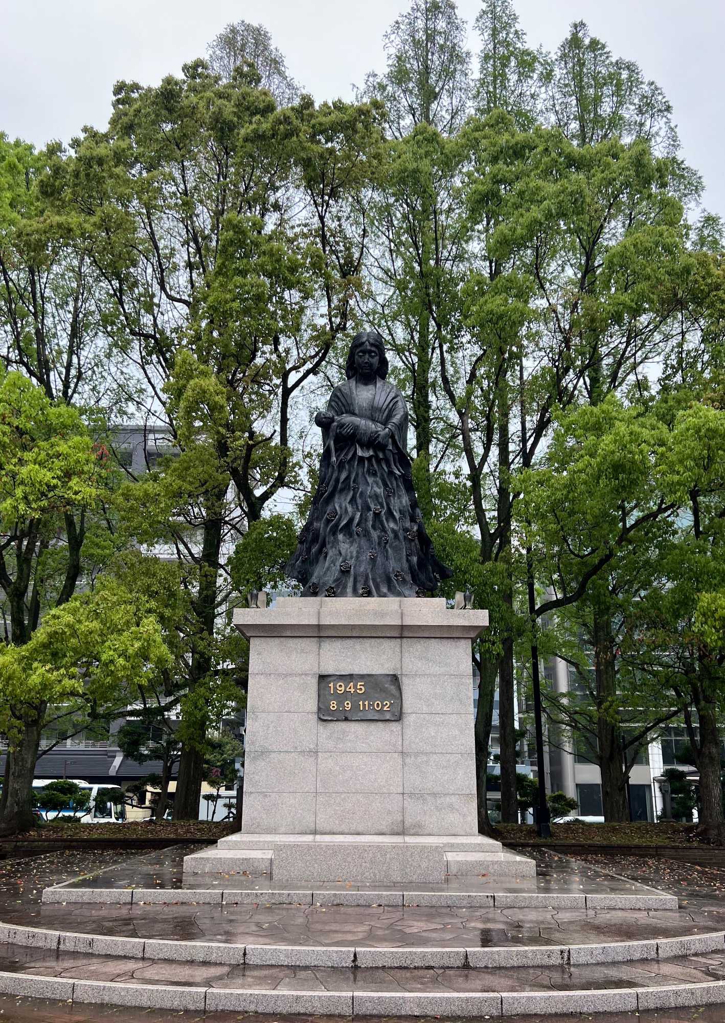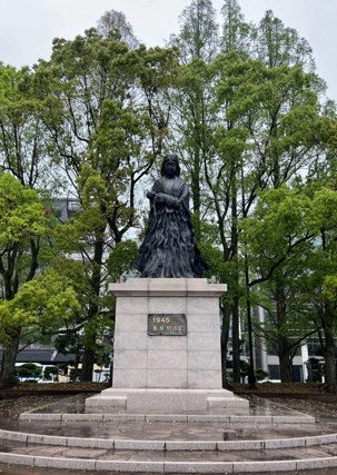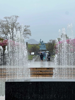 Ce matin, nous visitons le musée de la Bombe atomique, un lieu de mémoire profondément touchant où l’histoire du 9 août 1945 est racontée avec dignité et humanité. L’exposition, à la fois sobre et puissante, rend hommage aux victimes tout en transmettant un message de paix universelle. Nous avons beaucoup plus apprécié ce musée que celui d’Hiroshima: beaucoup moins de monde, plus de place pour présenter les différents artéfacts et moins de photos déchirantes. Chacun y est allé à son rythme et nous avons poursuivi, juste à côté, par une promenade dans le Parc de la Paix. Sculptures symboliques, fontaines tranquilles et végétation apaisante entourent le mémorial qui marque l’hypocentre exact de l’explosion, rappelant avec solennité la force du souvenir et l’espoir d’un avenir pacifique.
