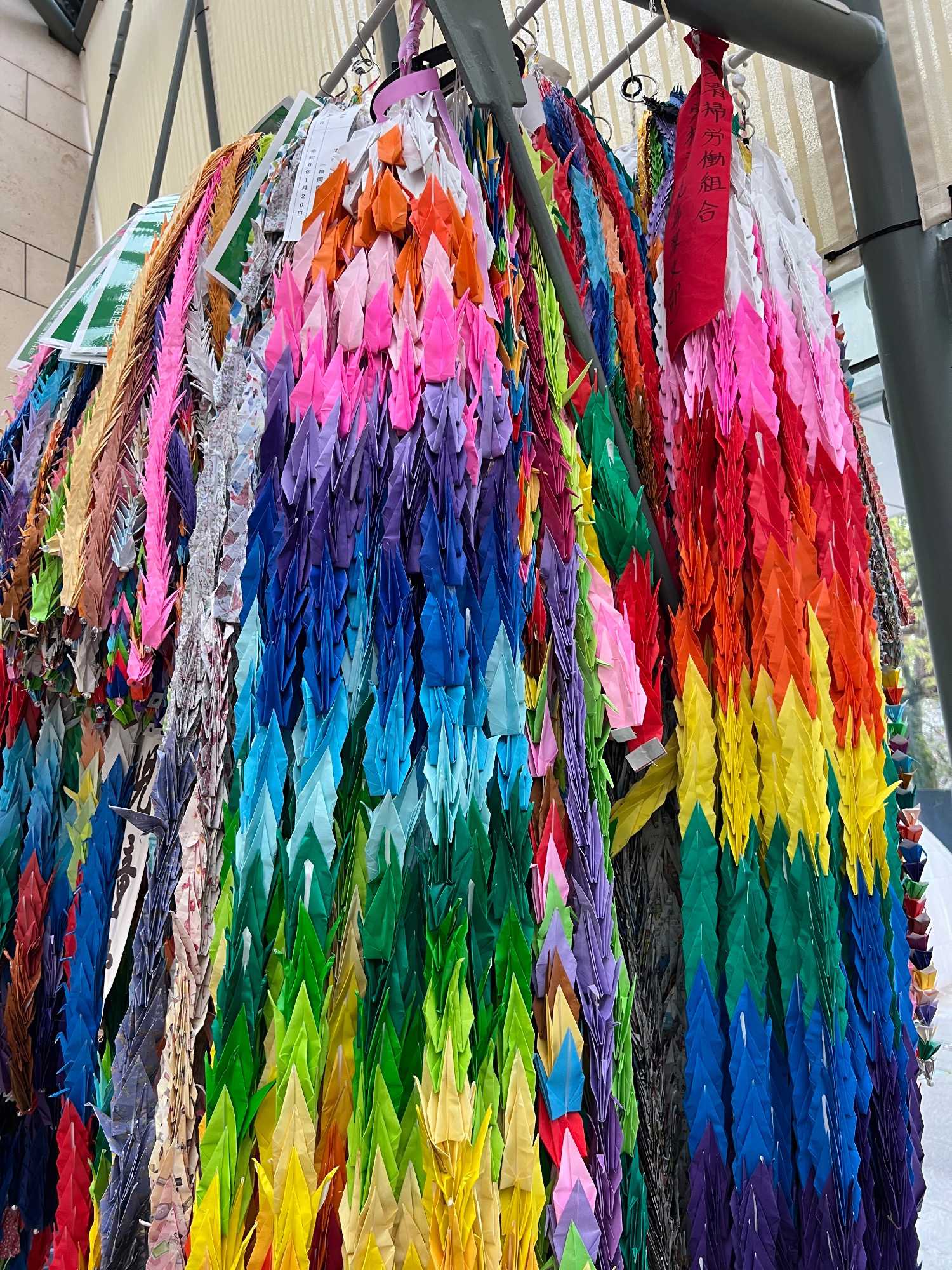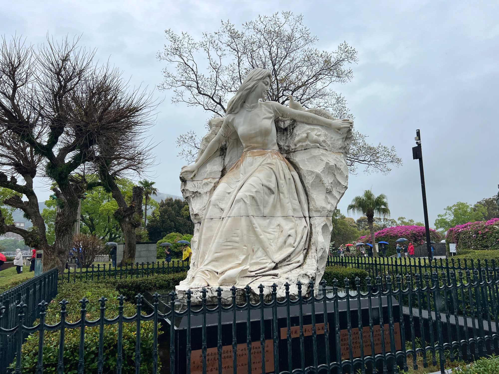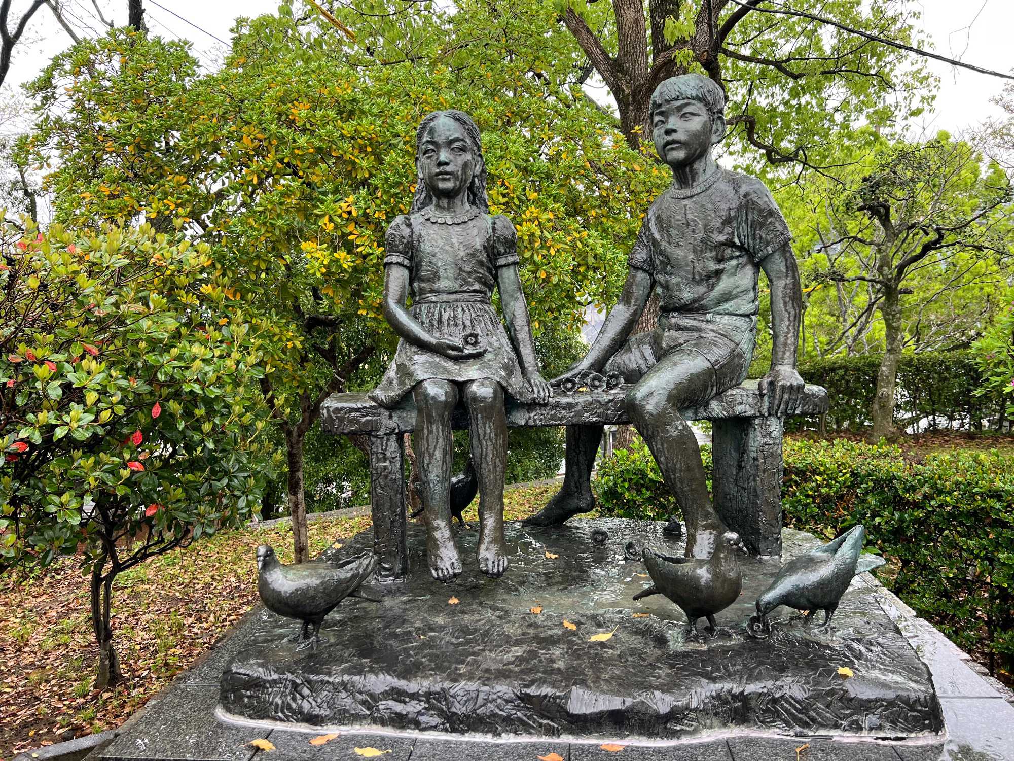 Ce matin, nous visitons le musée de la Bombe atomique, un lieu de mémoire profondément touchant où l’histoire du 9 août 1945 est racontée avec dignité et humanité. L’exposition, à la fois sobre et puissante, rend hommage aux victimes tout en transmettant un message de paix universelle. Nous avons beaucoup plus apprécié ce musée que celui d’Hiroshima: beaucoup moins de monde, plus de place pour présenter les différents artéfacts et moins de photos déchirantes. Chacun y est allé à son rythme et nous avons poursuivi, juste à côté, par une promenade dans le Parc de la Paix. Sculptures symboliques, fontaines tranquilles et végétation apaisante entourent le mémorial qui marque l’hypocentre exact de l’explosion, rappelant avec solennité la force du souvenir et l’espoir d’un avenir pacifique.