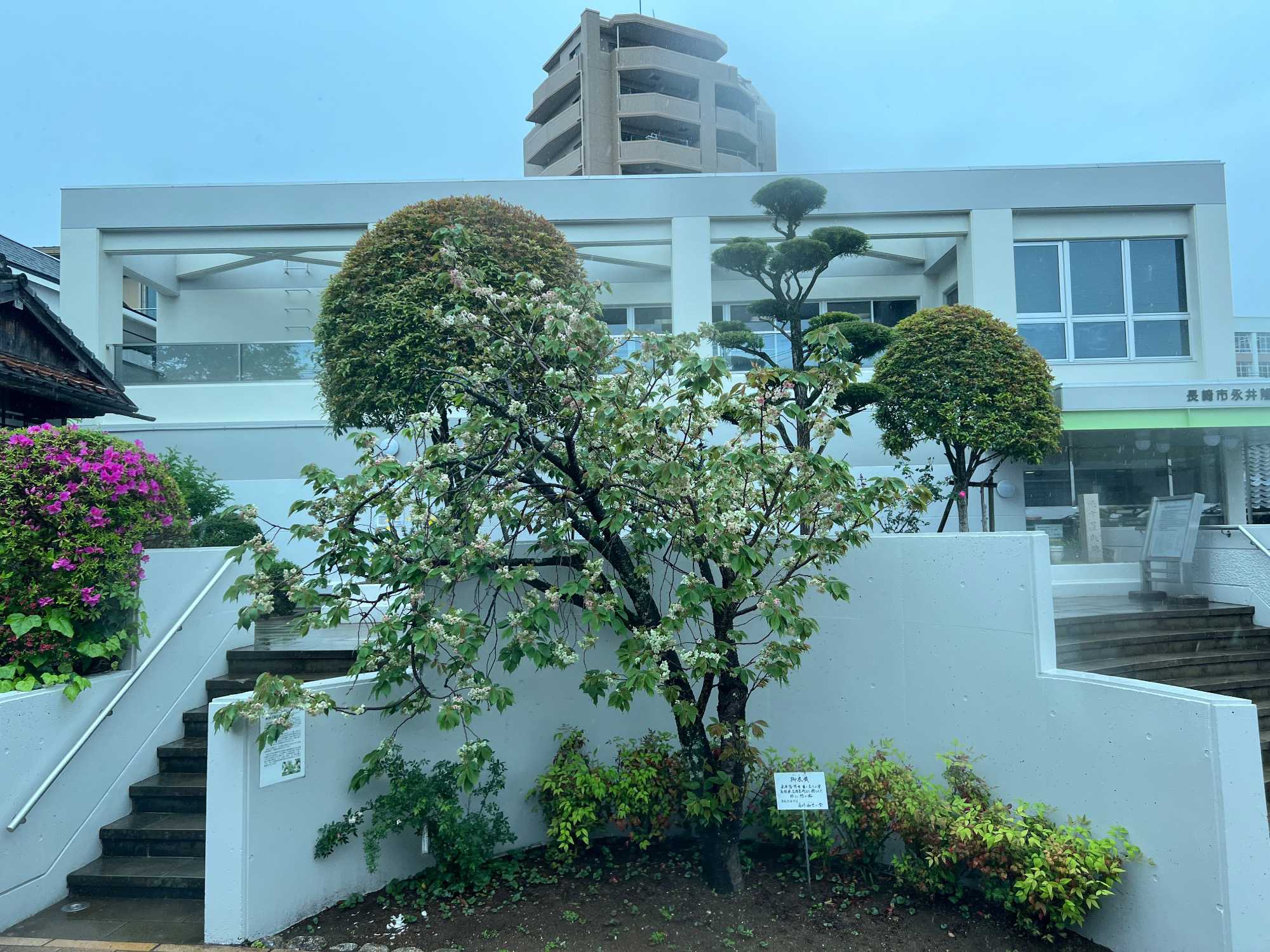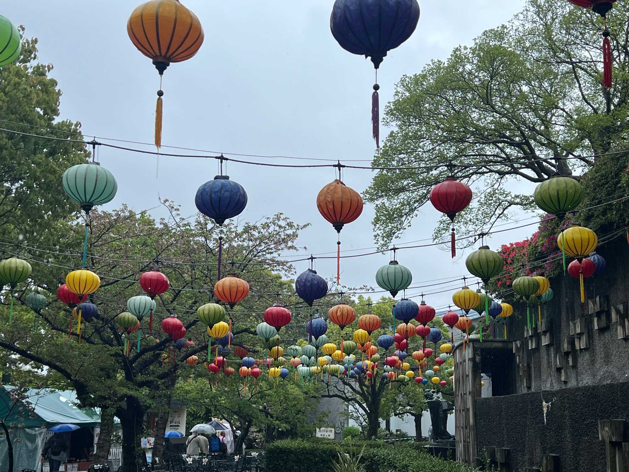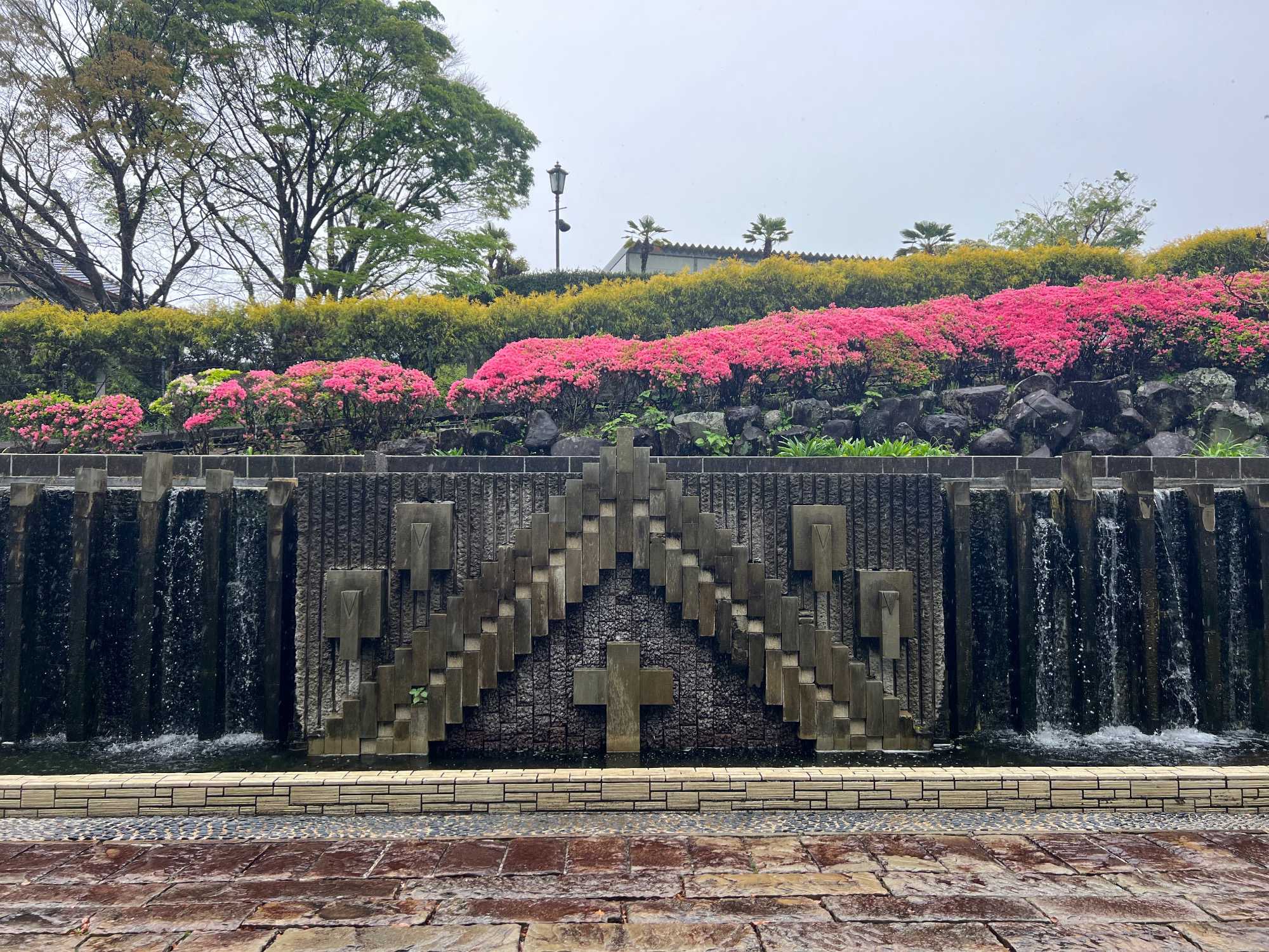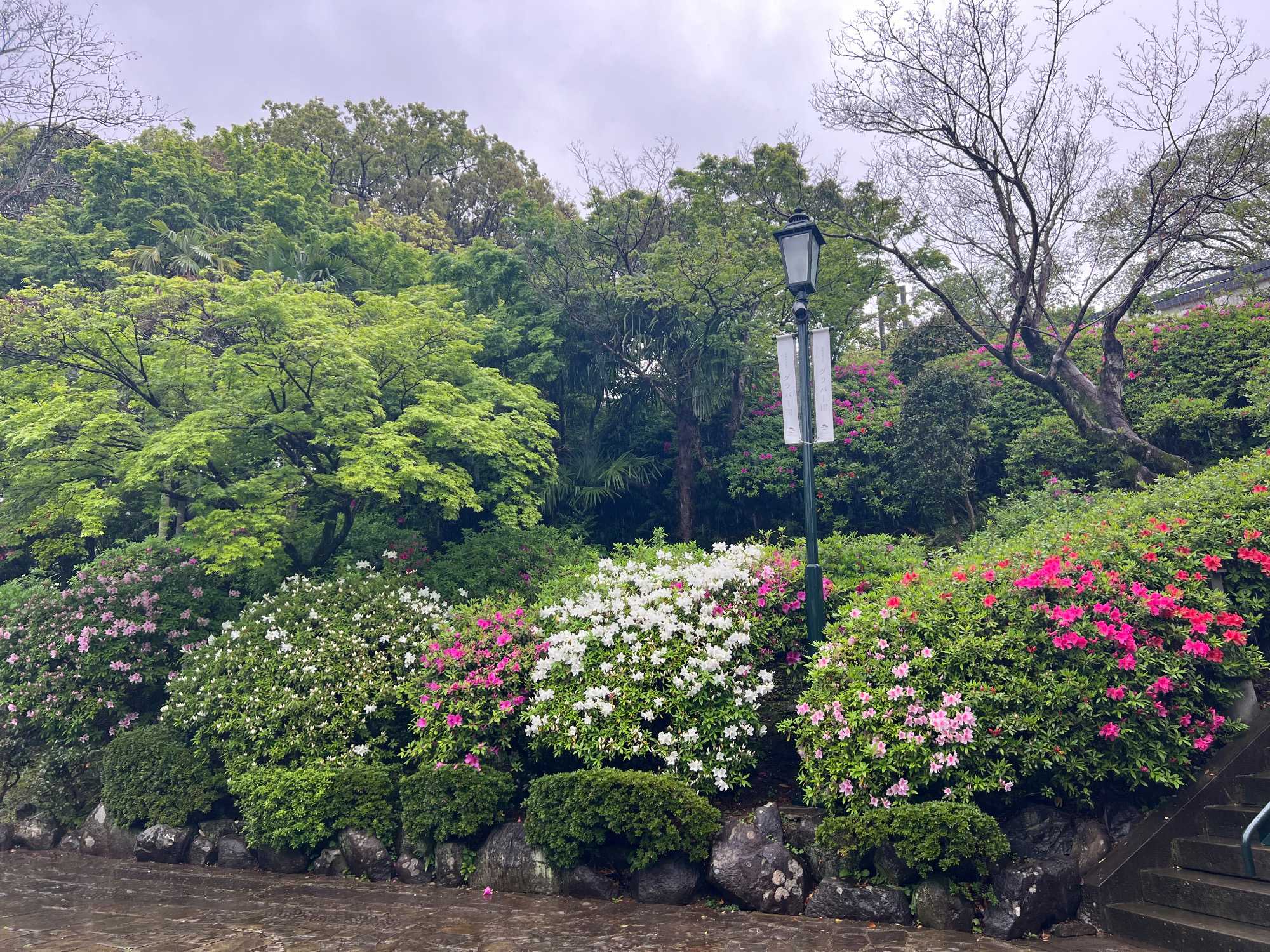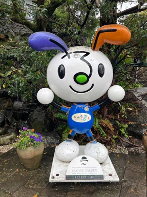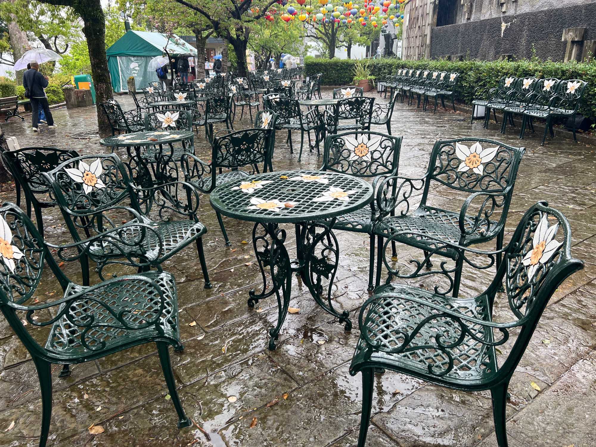 La découverte se poursuit pour les autres au jardin Glover, véritable havre de paix et d’histoire. Ce parc enchanteur abrite neuf maisons coloniales européennes du XIXè siècle, témoins du passé international de Nagasaki, dont la Résidence Glover, une maison de style occidental, la plus ancienne au Japon et importante attraction touristique. Devenu un musée d'architecture à ciel ouvert, ces résidences, admirablement conservées, évoquent l’époque où la ville était l’un des rares ports japonais ouverts au commerce étranger. Le jardin est vraiment magnifique mais nous passons assez rapidement, la pluie étant de plus en plus forte. Après la visite, nous perdons encore d’autres joueurs qui retournent manger sur le navire.