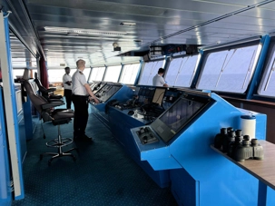 Ce matin, nous avons une invitation toute spéciale: le capitaine a invité notre groupe à visiter le pont où manoeuvre le pilote. Nous avons passé passé près de 45 minutes à poser toutes les questions qui nous intéressaient. Ce fut très apprécié de tous.