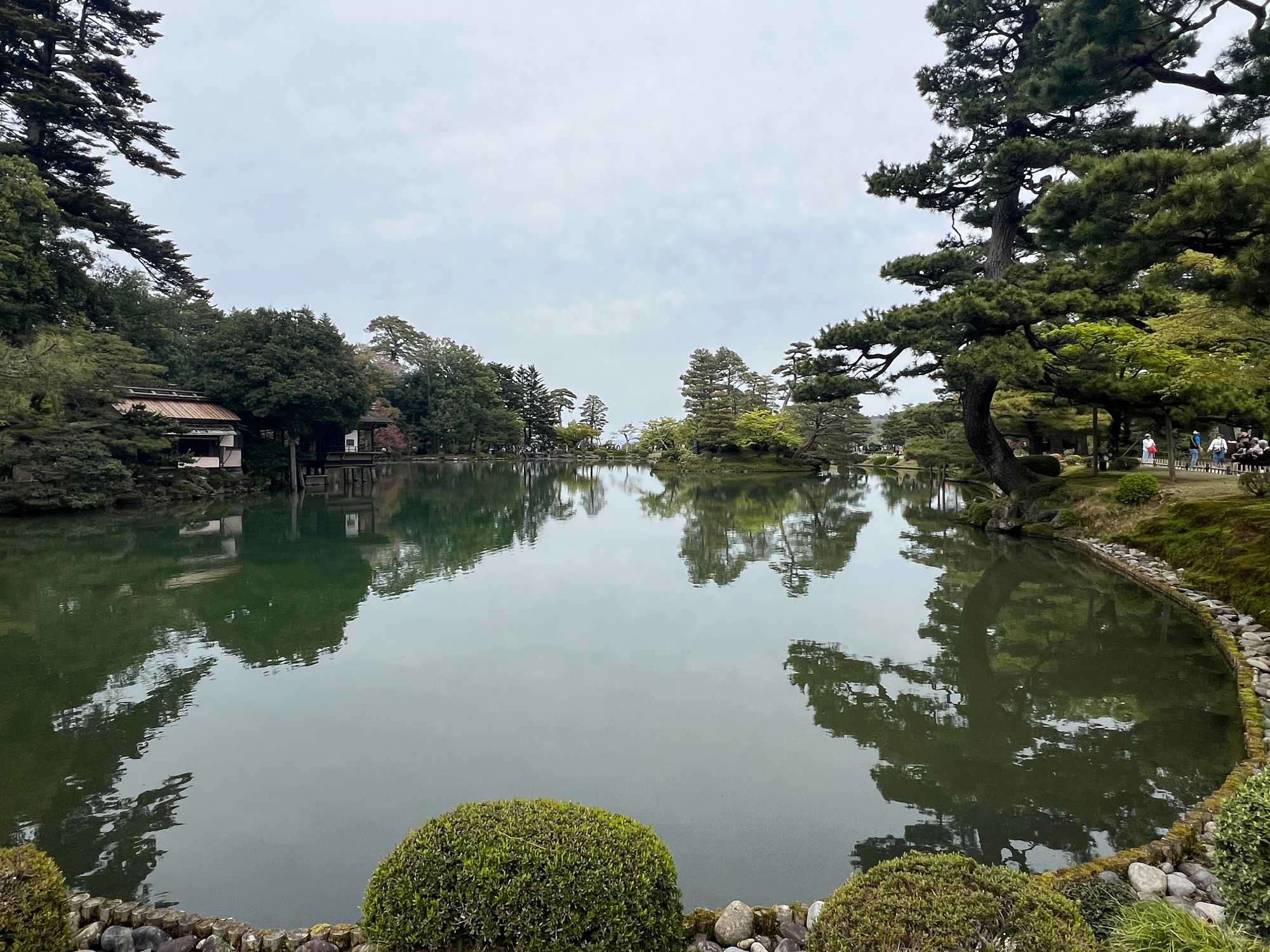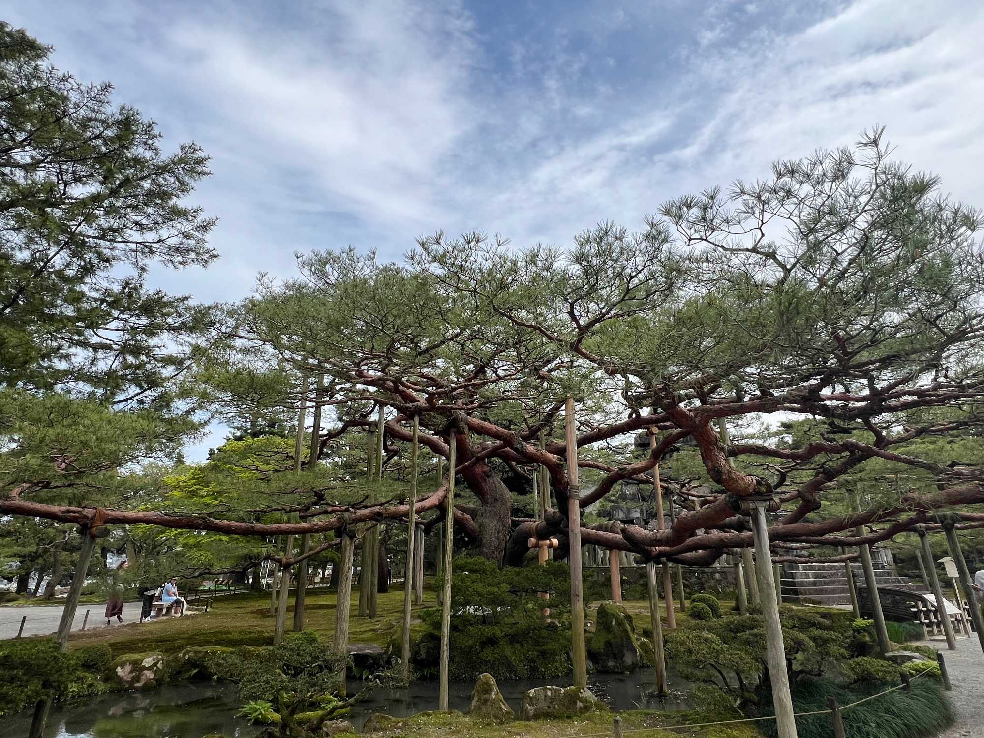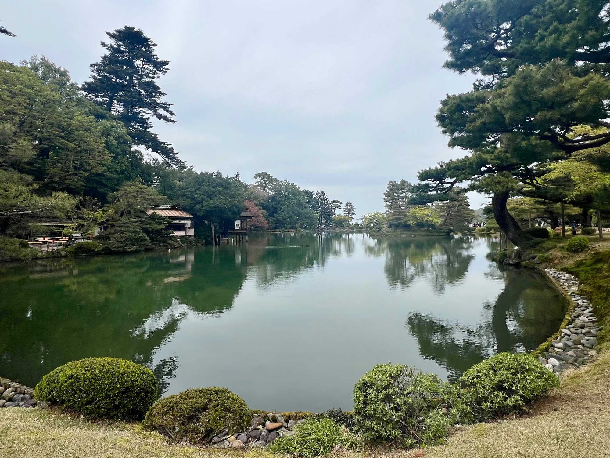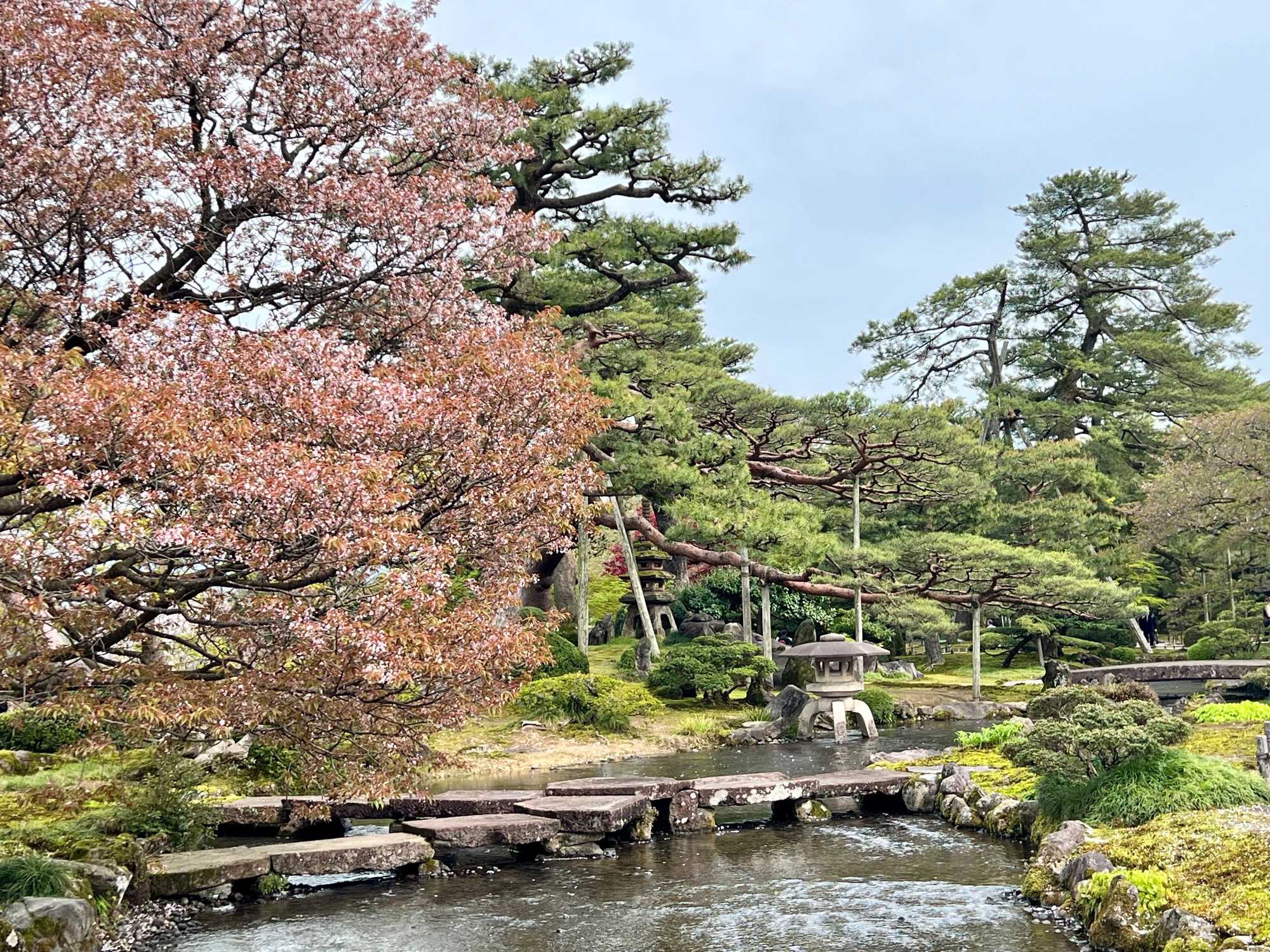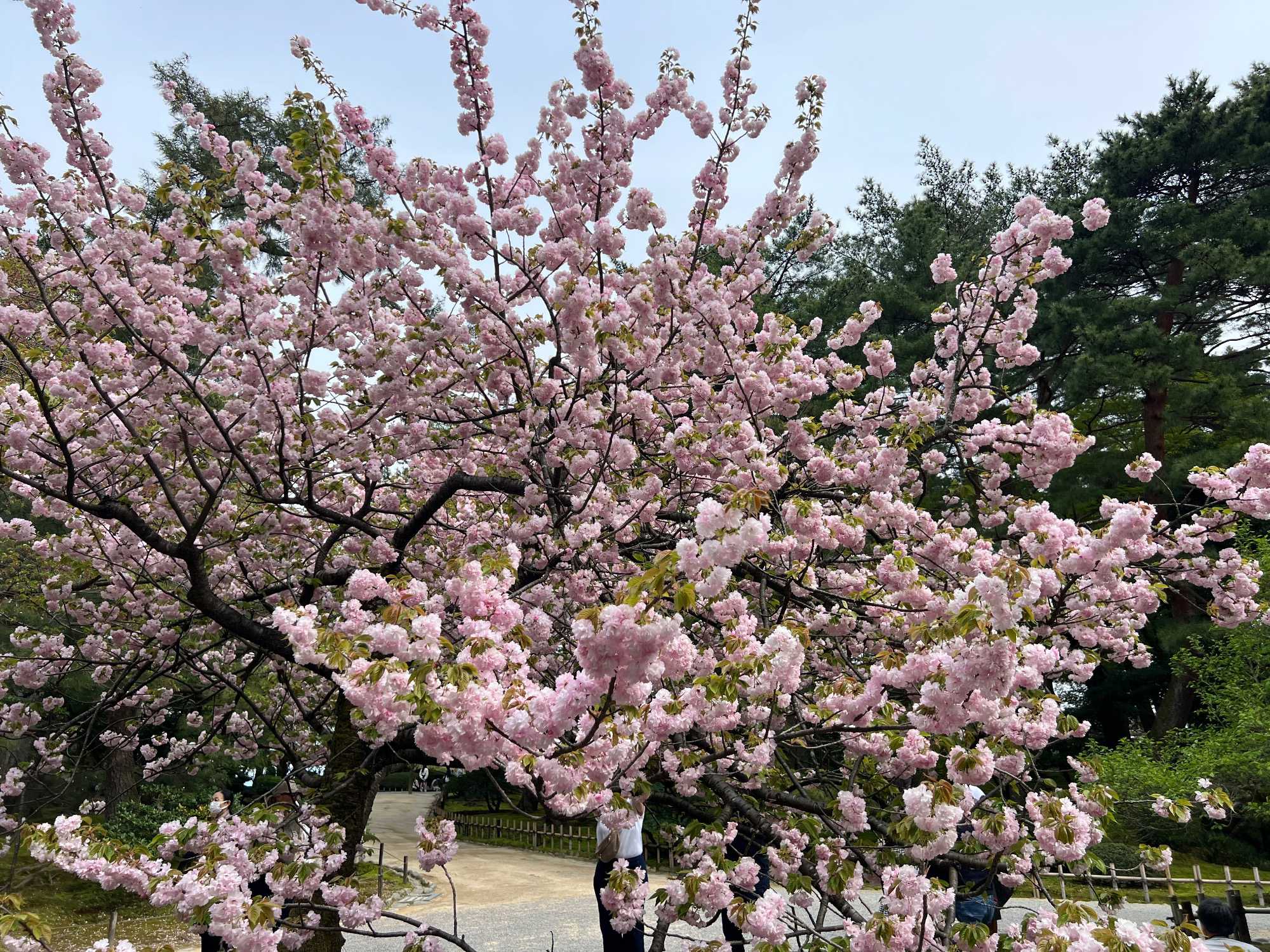 Il ne fallait surtout pas manquer la visite de l’un des 3 plus beaux jardins du Japon, celui de Kenrokuen. Niché au coeur de Kanazawa, il jouit d’une histoire prestigieuse façonnée sur plusieurs siècles par la famille Maeda. Le parc, situé sur une colline, est un vrai havre de paix malgré la présence de plusieurs touristes. Sous le nom évocateur de « jardin combinant six caractéristiques », Kenrokuen incarne l’espace, la quiétude, l’artifice, l’ancienneté, les points d’eau et les panoramas. Rares sont les jardins à rassembler ces six éléments, mais Kenrokuen en fait la démonstration. Parmi les points d’intérêt incontournables, on distingue le symbole du jardin, la lanterne Kotojitoro, aux deux pieds caractéristiques. L’ensemble des éléments d’un jardin japonais traditionnel y sont présents : étangs, lanternes, chemins en pierre, cascades, ponts, ruisseaux, salons de thé et collines artificielles. Chaque saison révèle un visage nouveau à Kenrokuen. Nous avons la chance de voir encore de magnifiques cerisiers en fleurs. Nous passons un excellent moment dans ce jardin avec du temps libre pour se promener à notre guise.