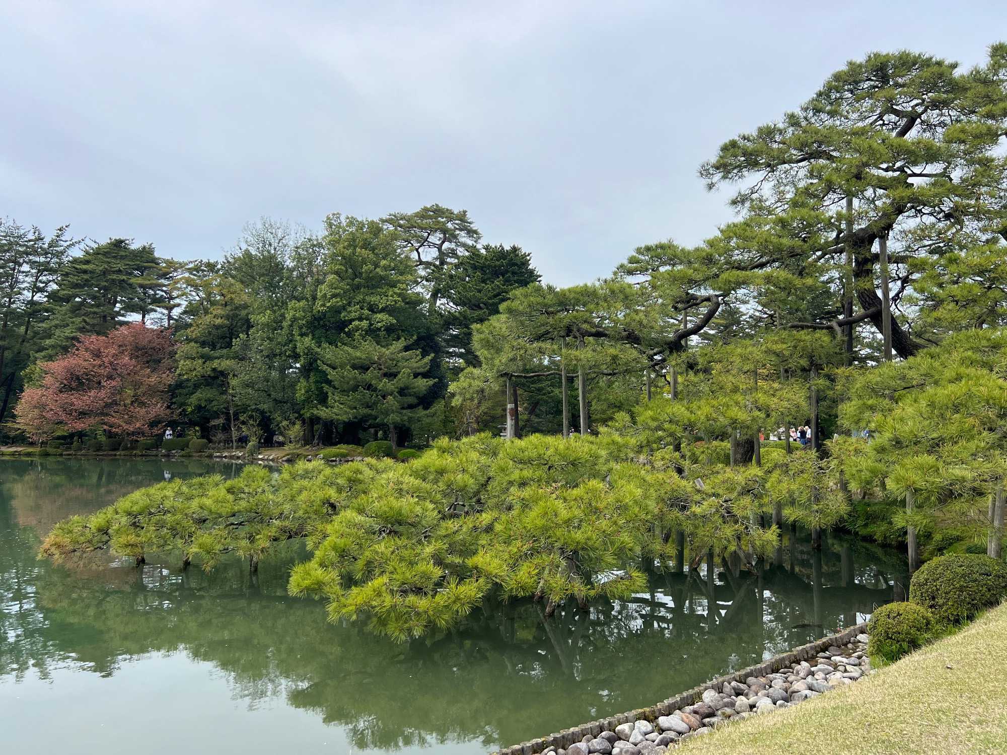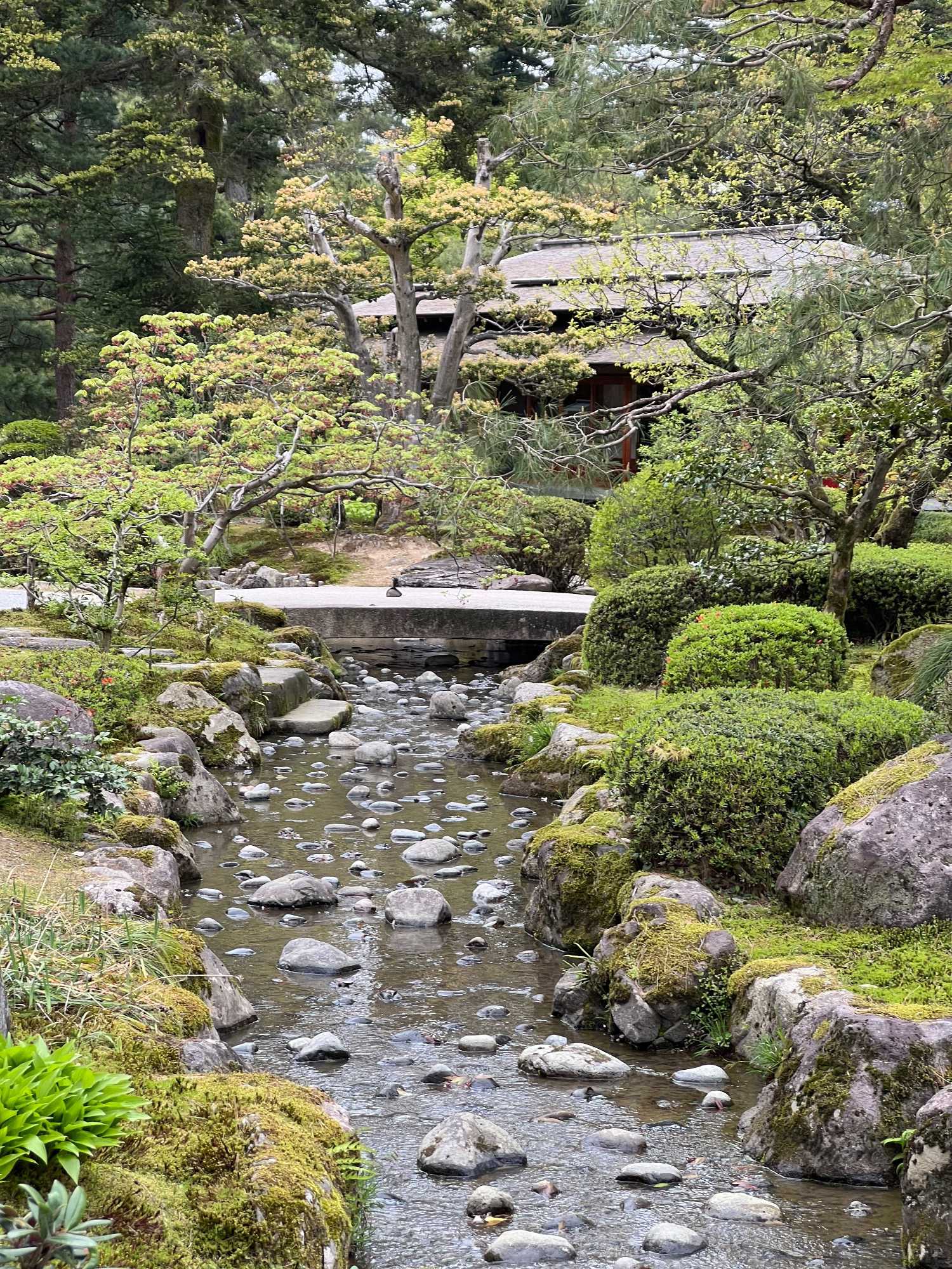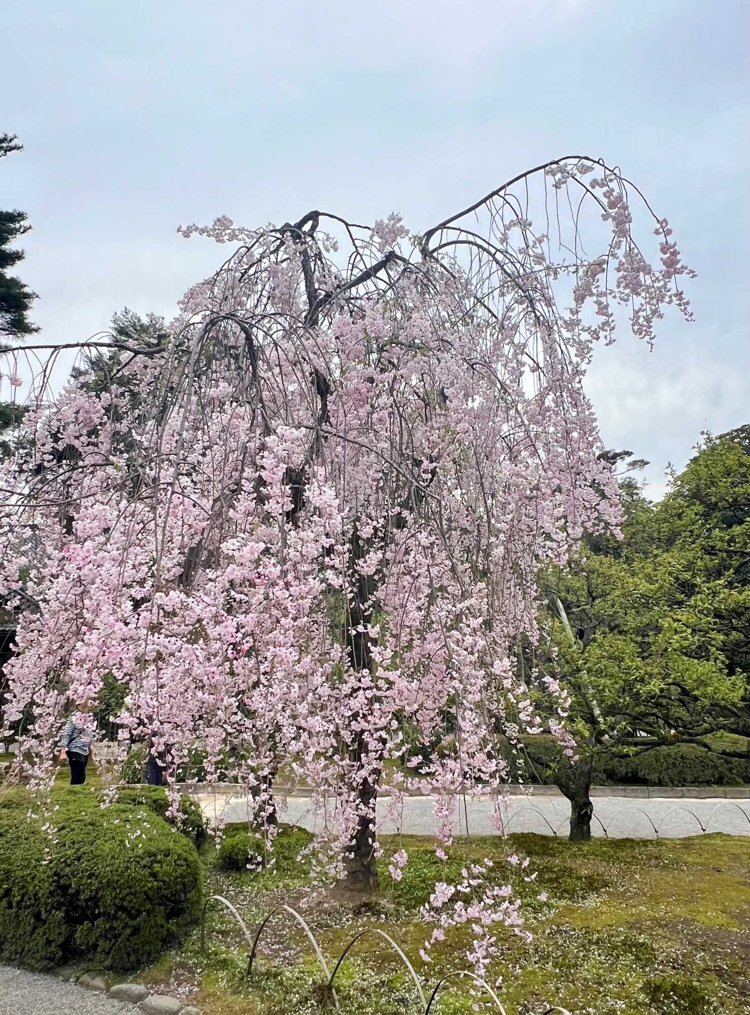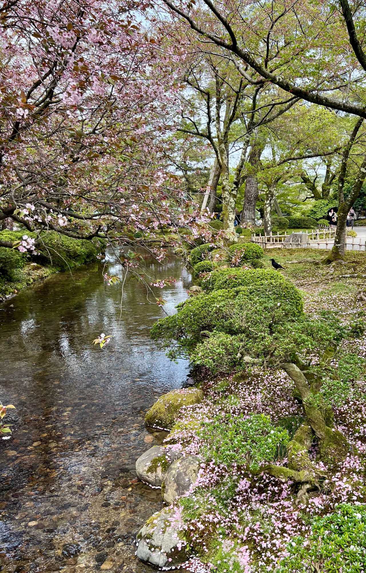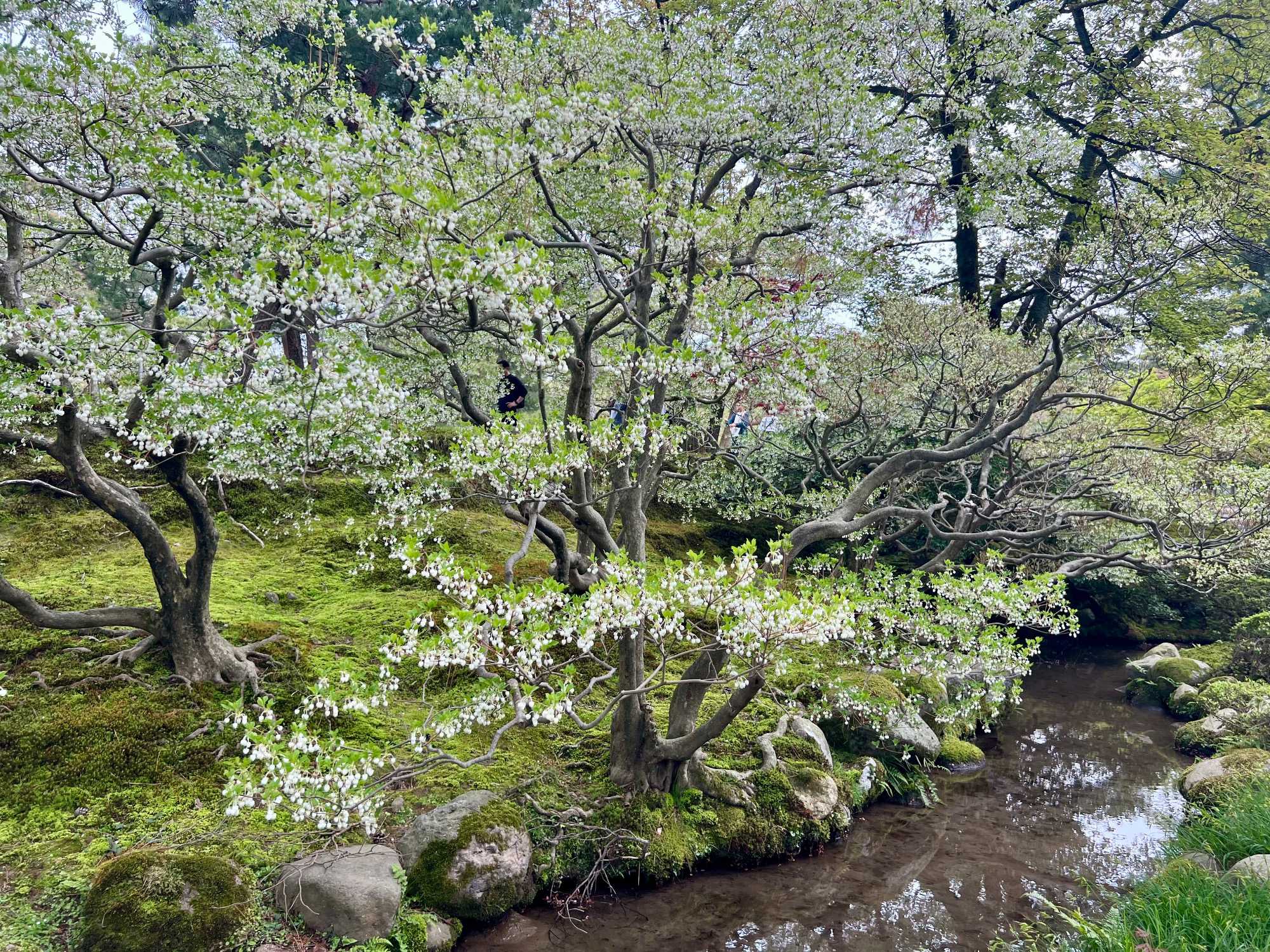 Il ne fallait surtout pas manquer la visite de l’un des 3 plus beaux jardins du Japon, celui de Kenrokuen. Niché au coeur de Kanazawa, il jouit d’une histoire prestigieuse façonnée sur plusieurs siècles par la famille Maeda. Le parc, situé sur une colline, est un vrai havre de paix malgré la présence de plusieurs touristes. Sous le nom évocateur de « jardin combinant six caractéristiques », Kenrokuen incarne l’espace, la quiétude, l’artifice, l’ancienneté, les points d’eau et les panoramas. Rares sont les jardins à rassembler ces six éléments, mais Kenrokuen en fait la démonstration. Parmi les points d’intérêt incontournables, on distingue le symbole du jardin, la lanterne Kotojitoro, aux deux pieds caractéristiques. L’ensemble des éléments d’un jardin japonais traditionnel y sont présents : étangs, lanternes, chemins en pierre, cascades, ponts, ruisseaux, salons de thé et collines artificielles. Chaque saison révèle un visage nouveau à Kenrokuen. Nous avons la chance de voir encore de magnifiques cerisiers en fleurs. Nous passons un excellent moment dans ce jardin avec du temps libre pour se promener à notre guise.