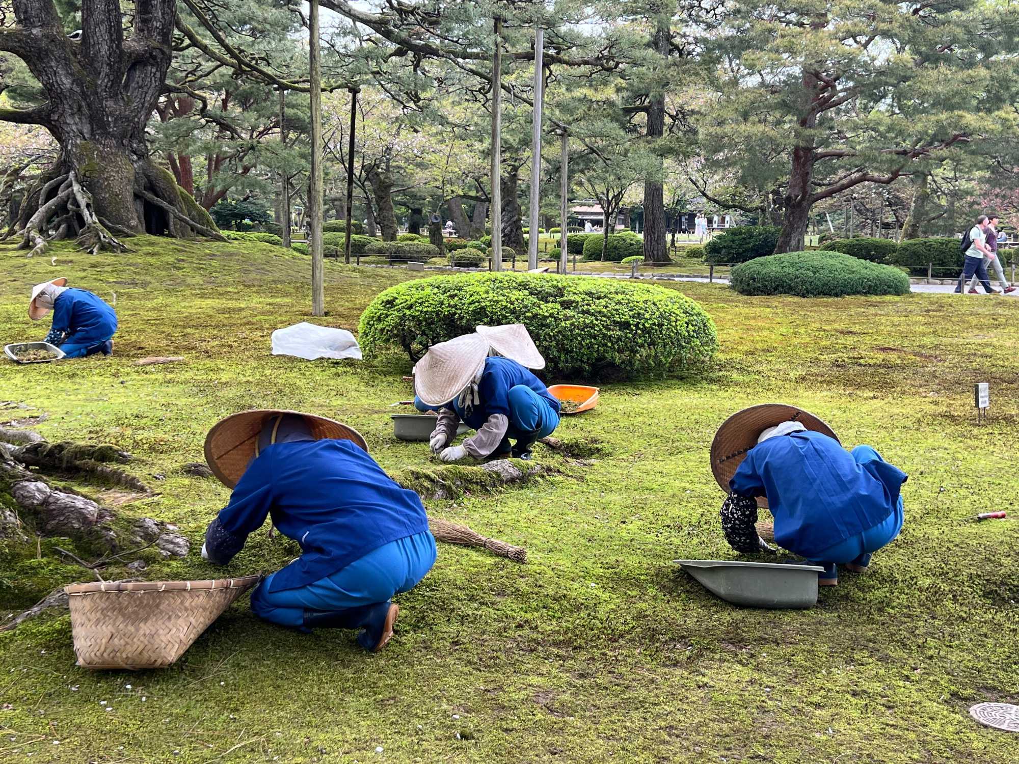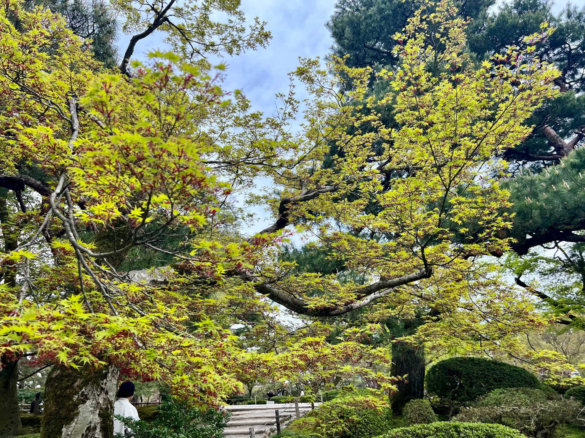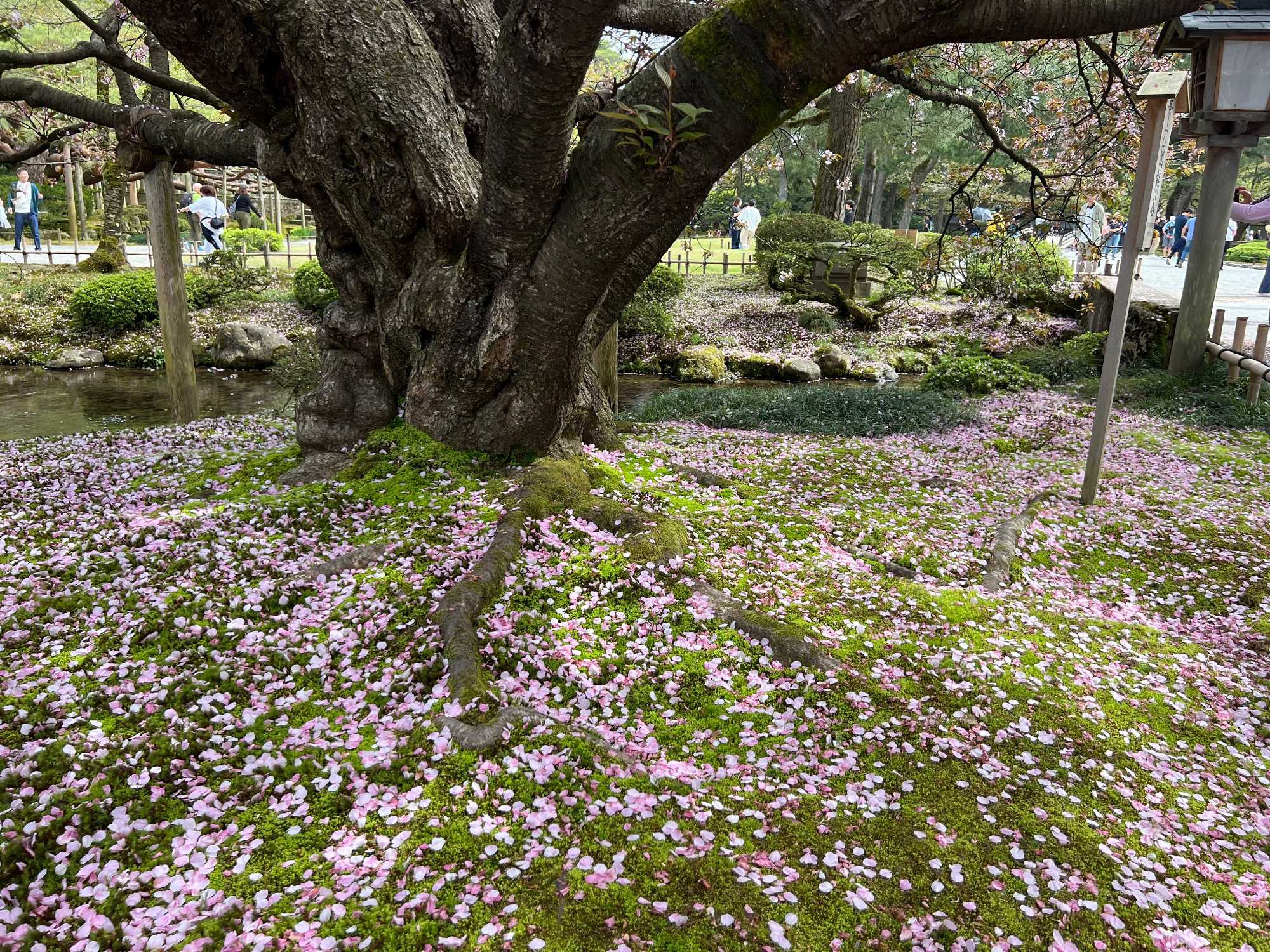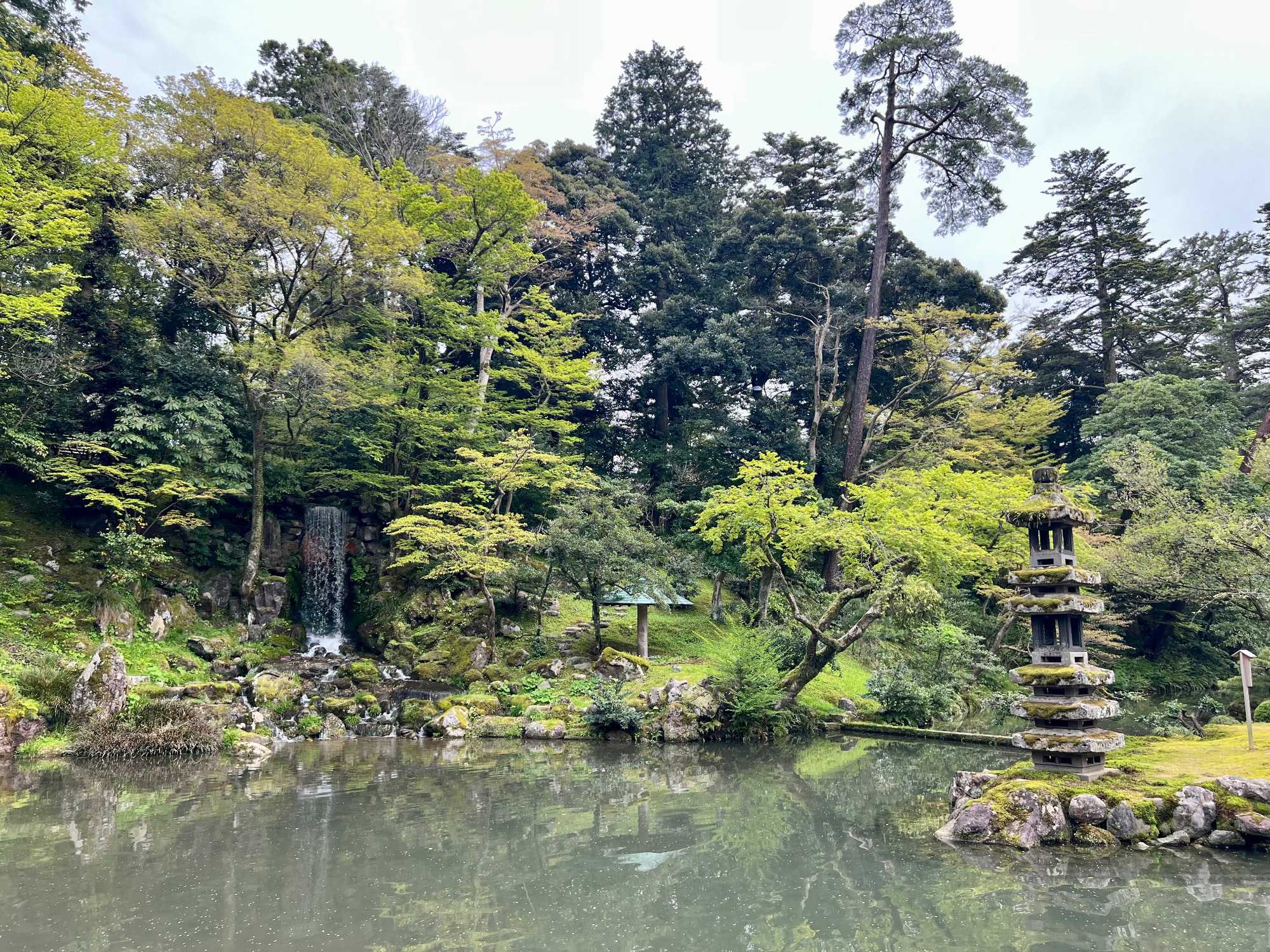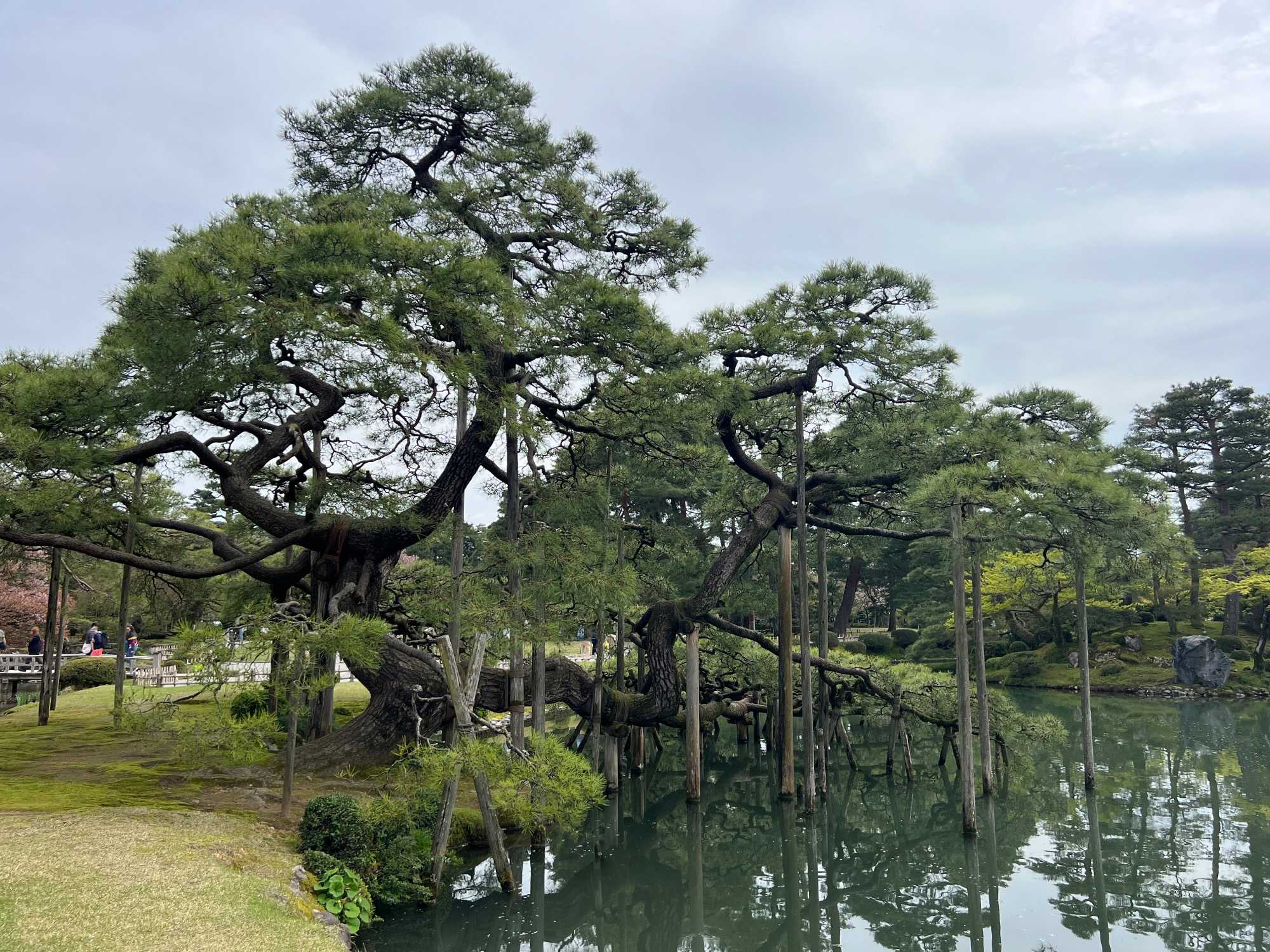 Il ne fallait surtout pas manquer la visite de l’un des 3 plus beaux jardins du Japon, celui de Kenrokuen. Niché au coeur de Kanazawa, il jouit d’une histoire prestigieuse façonnée sur plusieurs siècles par la famille Maeda. Le parc, situé sur une colline, est un vrai havre de paix malgré la présence de plusieurs touristes. Sous le nom évocateur de « jardin combinant six caractéristiques », Kenrokuen incarne l’espace, la quiétude, l’artifice, l’ancienneté, les points d’eau et les panoramas. Rares sont les jardins à rassembler ces six éléments, mais Kenrokuen en fait la démonstration. Parmi les points d’intérêt incontournables, on distingue le symbole du jardin, la lanterne Kotojitoro, aux deux pieds caractéristiques. L’ensemble des éléments d’un jardin japonais traditionnel y sont présents : étangs, lanternes, chemins en pierre, cascades, ponts, ruisseaux, salons de thé et collines artificielles. Chaque saison révèle un visage nouveau à Kenrokuen. Nous avons la chance de voir encore de magnifiques cerisiers en fleurs. Nous passons un excellent moment dans ce jardin avec du temps libre pour se promener à notre guise.