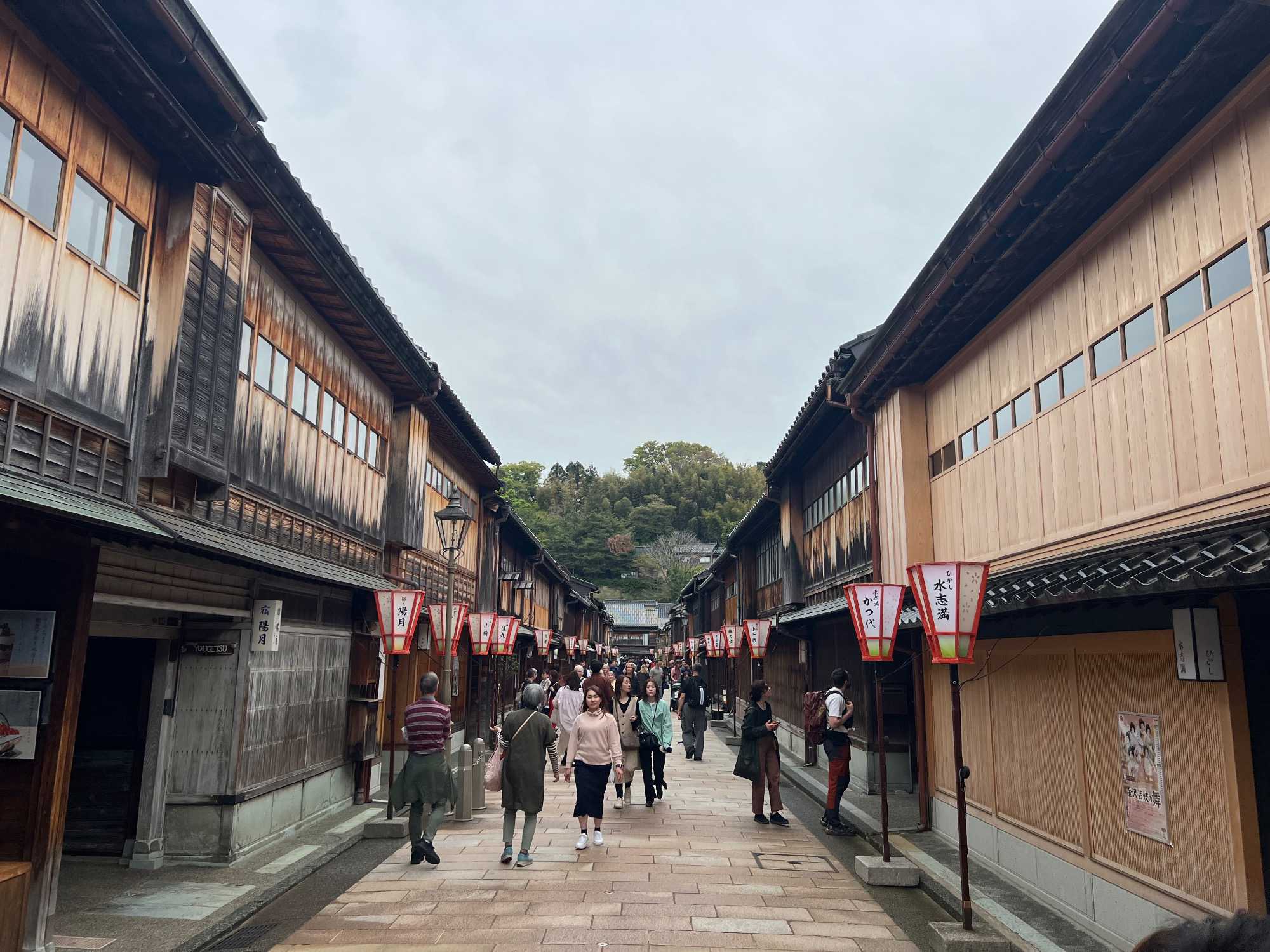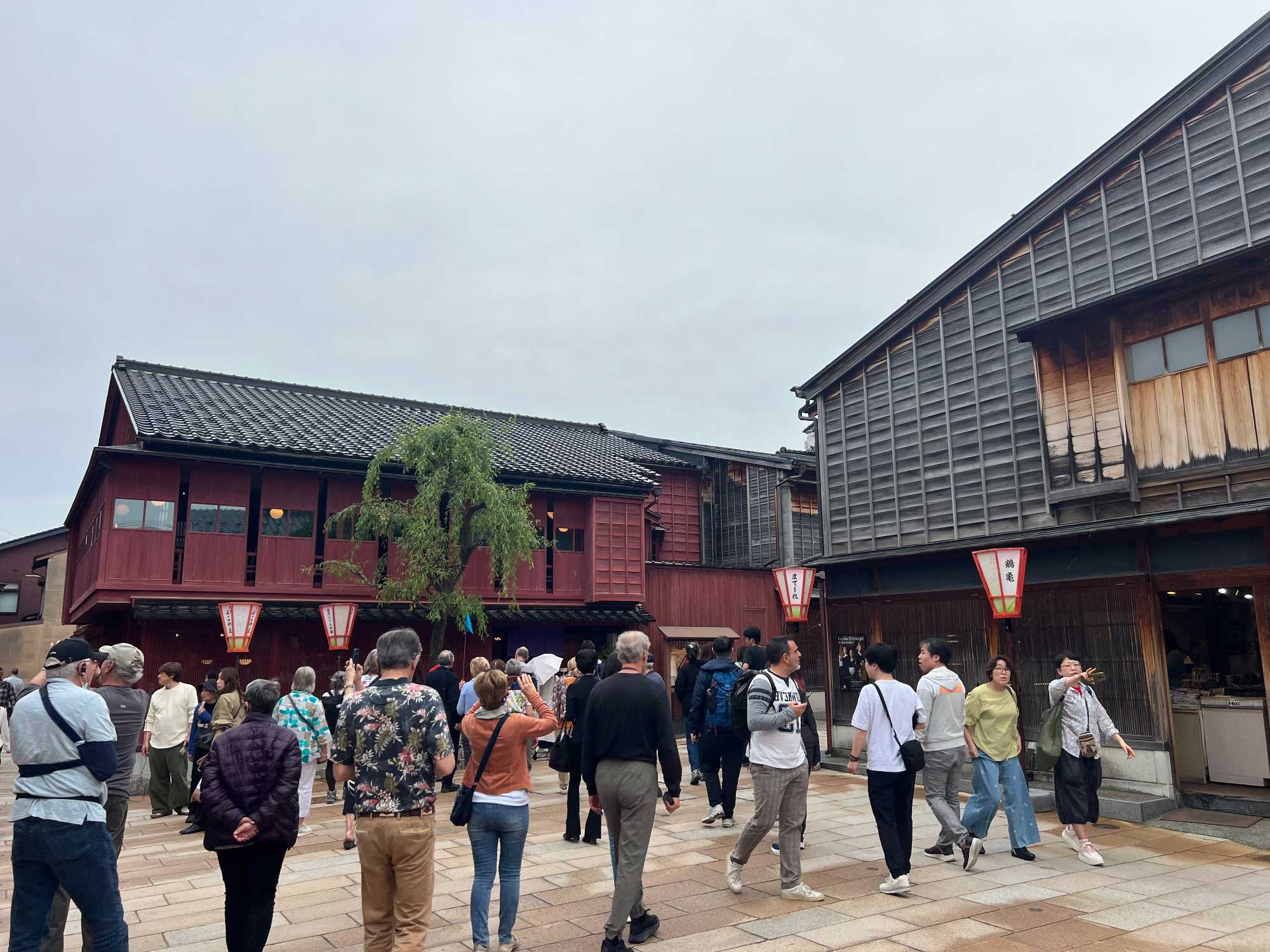 Nos découvertes se poursuivent avec le quartier Higashi Chaya, un des quartiers où les Geishas habitaient et qui est classé au patrimoine culturel du Japon. C’est une enclave de petites rues pavées. Il y a longtemps, ce quartier hébergeait les Geishas qui distrayaient des clients aisés. Il est ponctué de bâtiments traditionnels, parfois vieux de plus de 200 ans.