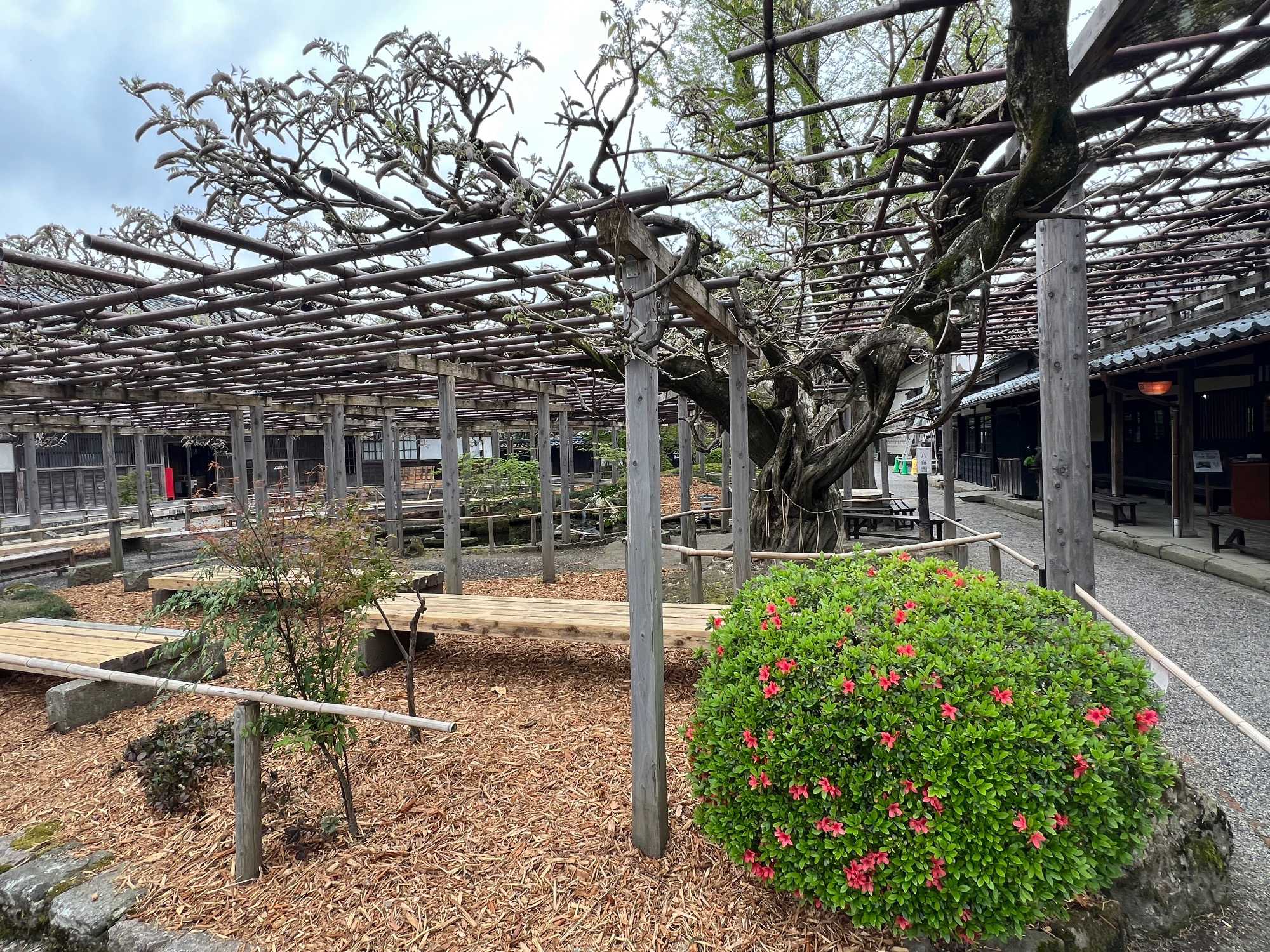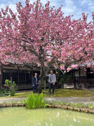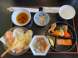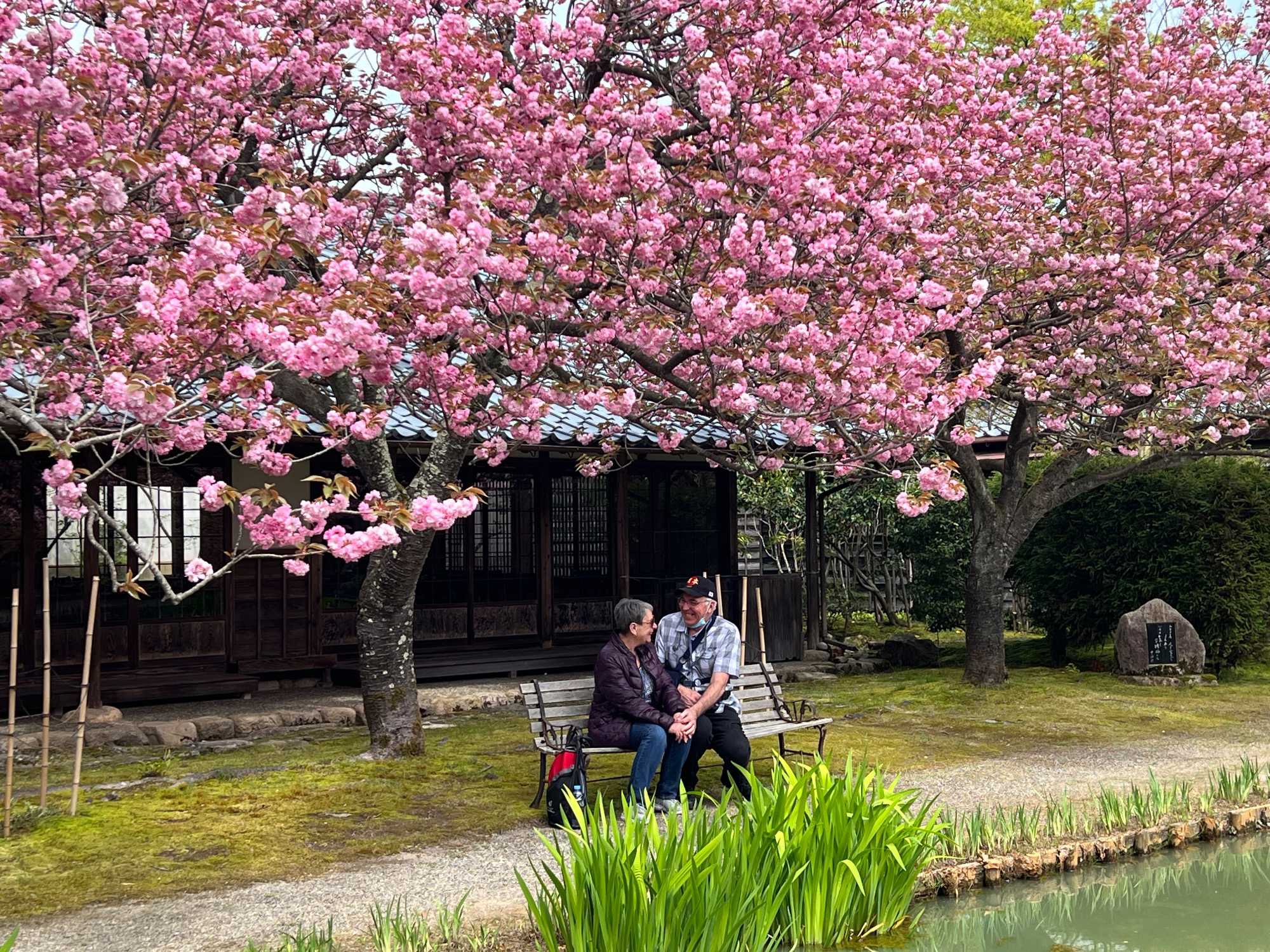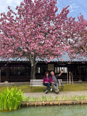 Après avoir pris nos photos avec les magnifiques cerisiers en fleurs, place à la pause dîner où nous savourons les spécialités de la région, réputée pour la qualité de son riz et la finesse de sa cuisine.