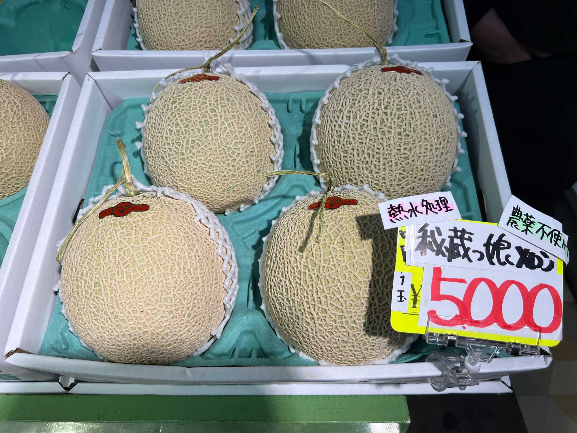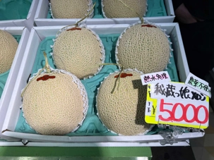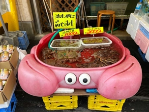Nous découvrons toute sorte de choses intéressantes au marché. Les prix nous surprennent aussi. Pour vous orienter, nous avons environ 100 yens pour 1$ canadien. Et si vous voyez 5000 yens pour un melon, c’est bien 50$ pour UN melon! Et oui, les fruits sont très chers. Les crabes, calmars, et même pieuvres sont partout et nous les avons photographiés. Trois pattes des plus gros crabes se vendent plus de $125.