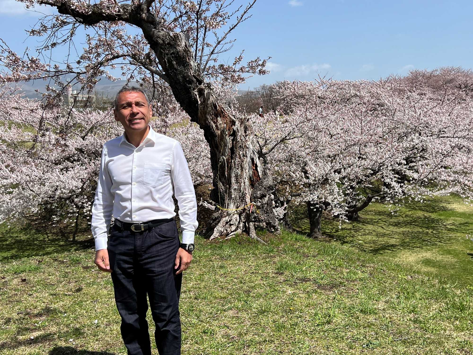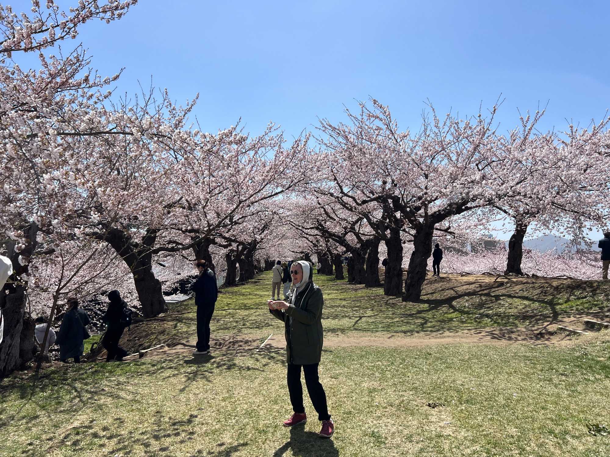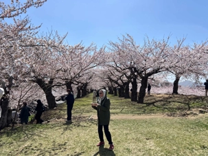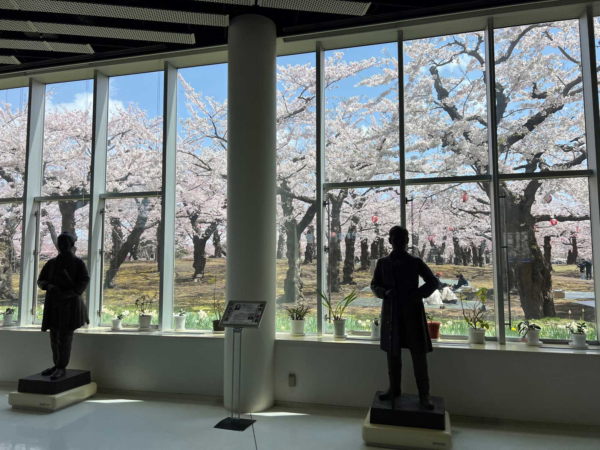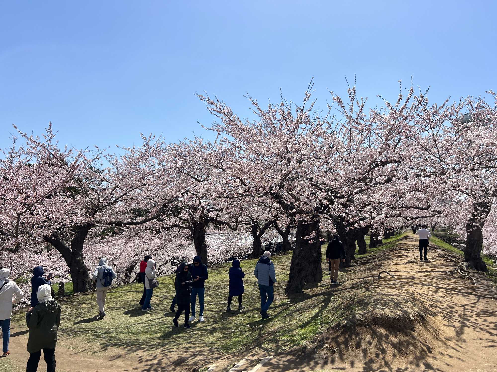 Nous poursuivons notre visite en nous rendant au parc Goryokaku. Nous débutons par monter tout en haut de la tour de Goryokaku, qui permet d’observer de haut la belle forme en étoile de la forteresse. Depuis les hauteurs, une vue panoramique s’ouvre sur l’ensemble de la forteresse, révélant toute la beauté géométrique de son étoile au sol. Et là, nous avons toute une surprise, car les cerisiers tout en bas sont tous en fleurs!!! Nous réalisons le travail fait en 1914, où des jardiniers ont planté des milliers de cerisiers dans l’enceinte de la forteresse. Il reste aujourd’hui 1600 de ces arbres, qui fleurissent chaque printemps. Quelle immense chance nous avons d’arriver alors que les fleurs viennent juste d’éclore! Même notre guide Jean n’en revient pas de notre chance car lui-même n’a jamais pu voir ces cerisiers en fleurs avant aujourd’hui. Ce spectacle naturel étonnant transforme littéralement les lieux pour un ravissement des yeux. Probablement la nouvelle de la floraison ne s’est pas propagée car il y a relativement peu de monde. Le superlatif choisi par mes voyageurs aujourd’hui est « enleVENT » car il vente tellement! Mais « hallucinant » a aussi été nommé.