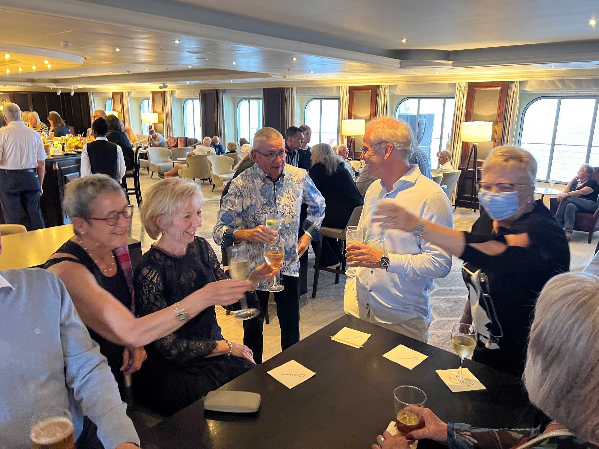 En fin d’après-midi, nous nous rendons au Discoveries Bar pour y prendre l’apéro et se retrouver tous ensemble, comme une grande famille soudée. C’est suivi par le souper à la salle à manger pour la majorité. Et il y a comme tout les soirs, de la musique un peu partout sur le navire.