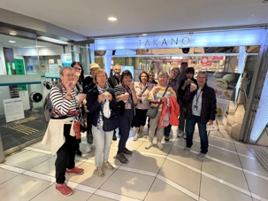 On se dirige tout d’abord vers le quartier de Shinjuku, où Jean nous fait faire un tour à pied dans les rues environnantes. Et à 9h55, nous sommes devant le grand magasin Mitsukoshi-Isetan, afin d’assister à leur ouverture. Après un petit discours de bienvenue fait à l’extérieur du magasin pour accueillir les clients, on nous fait entrer par la grande porte. Nous sommes alors accueillis par tous les employés qui nous saluent au passage. Les ouvertures de magasins sont toujours un spectacle à voir, car elles montrent une grande partie de l’esprit et du service japonais. Un personnel accueillant et respectueux nous définit en un instant ce qu'est la reconnaissance de l'être humain. La perfection des étalages nous montre des produits connus chez nous mais présentés comme des oeuvres d’art ici. C’est très émouvant et nous somme sous le charme de cette coutume exceptionnelle. Vraiment à ne pas manquer si vous venez à Tokyo. Pour la petite histoire du magasin, comme beaucoup de grands magasins au Japon, en 1886 Isetan a commencé en vendant uniquement l’habit traditionnel japonais, le kimono. La légende dit que le fondateur triait lui-même les produits qu’ils proposaient à la vente pour retirer ceux devenus trop populaires et conserver des pièces plus rares, et donc susciter plus de désir auprès des consommateurs. Une stratégie marketing basée sur la rareté mise en place dès le XIXè siècle et qui continue aujourd’hui de faire les beaux jours de cet immense magasin, considéré comme le plus avant-gardiste des grands magasins nippons. Cet établissement présenté comme le plus grand de la chaîne dans le monde accueillerait, semble-t-il, jusqu’à 200 000 clients par jour en période de solde ! Nous faisons la visite de l’étage B1, où se trouvent toutes les spécialités culinaires. Les amoureux de saké ou de thé vert peuvent en acheter, c’est l’endroit tout indiqué pour trouver des produits de qualité.