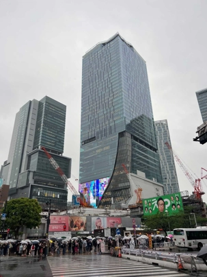 Comme il y a du monde à Tokyo! C’est ce qu’on constate visuellement lorsqu’on arrive au Shibuya Crossing. Vous savez, le croisement de rues le plus populaire du Japon, où des centaines de gens traversent en diagonale. On parle d’environ 4000 personnes (à l’heure de pointe) qui ont 45 secondes pour passer de l’autre côté de la rue en croisant tout les gens qui passent en sens inverse! Tout un défi! Cela lui a valu le nom du carrefour le plus occupé au monde. En raison de ses immenses écrans publicitaires et de sa circulation piétonnière dense, le Shibuya Crossing est souvent comparé au carrefour de Times Square à New York et de Piccadilly Circus à Londres. Il est couramment considéré comme un élément représentant l’image ultramoderne de Tokyo dans le monde. Nous nous sommes bien amusés à traverser la rue à quelques reprises tout en étant bien impressionné par le flot humain qui s’y faufile. Avec la pluie, c’était la valse des parapluies!