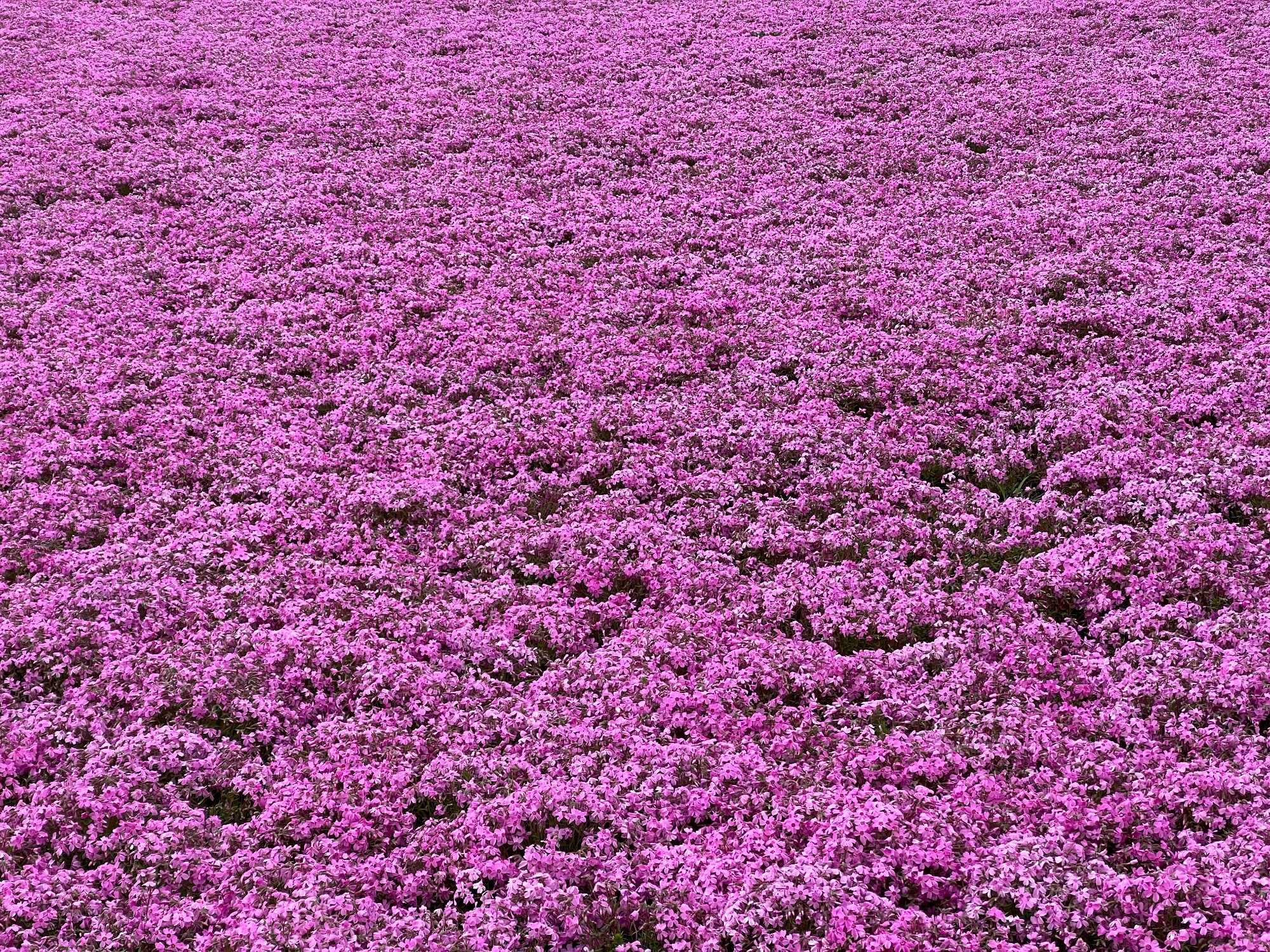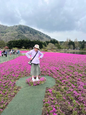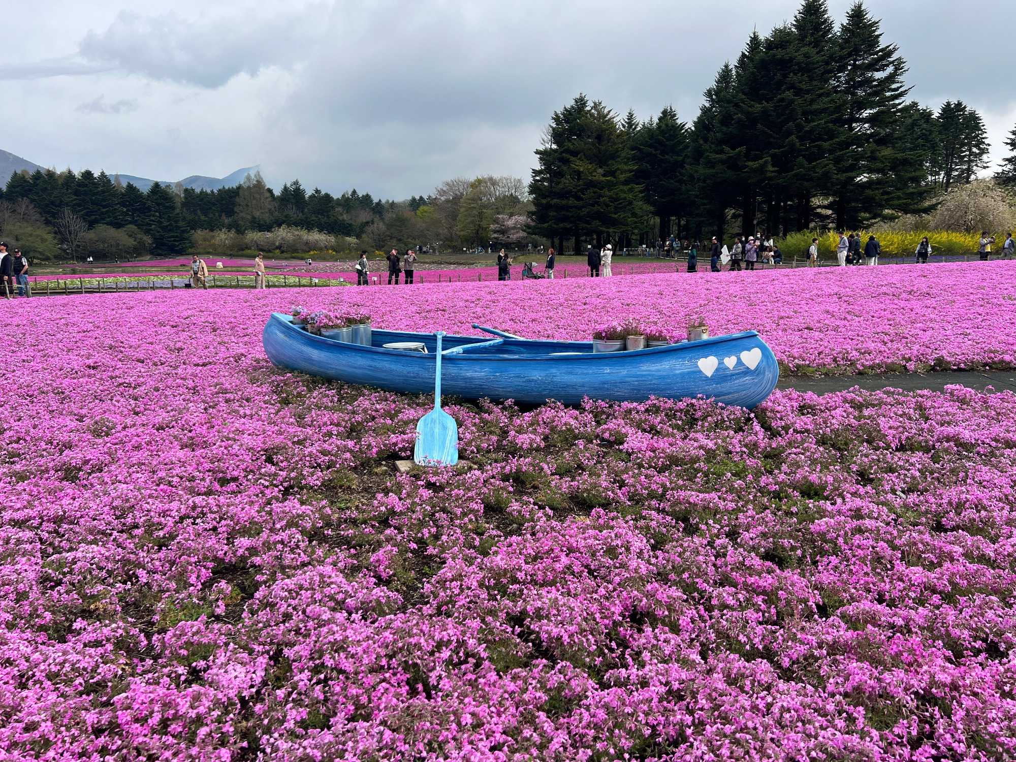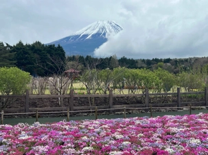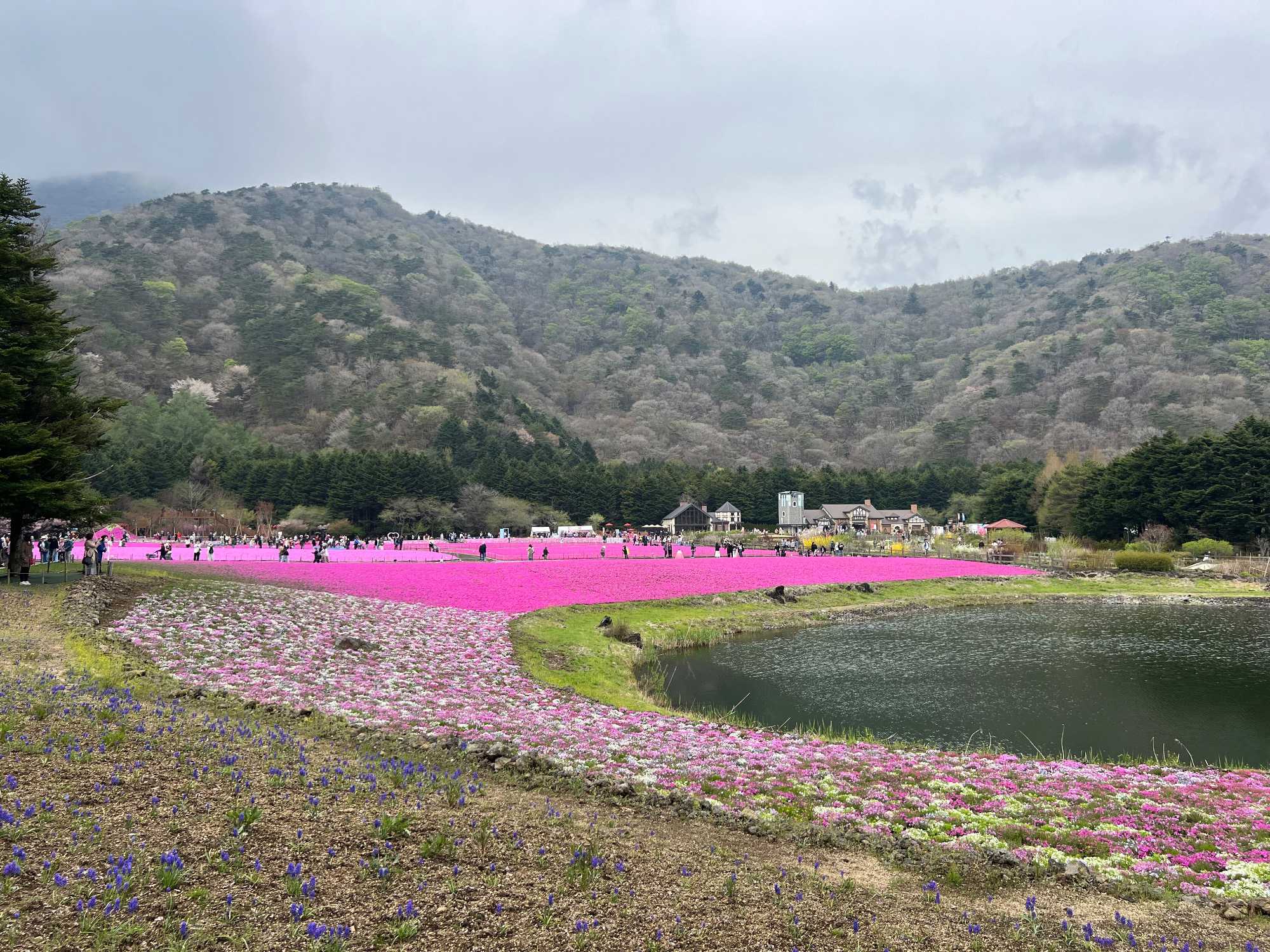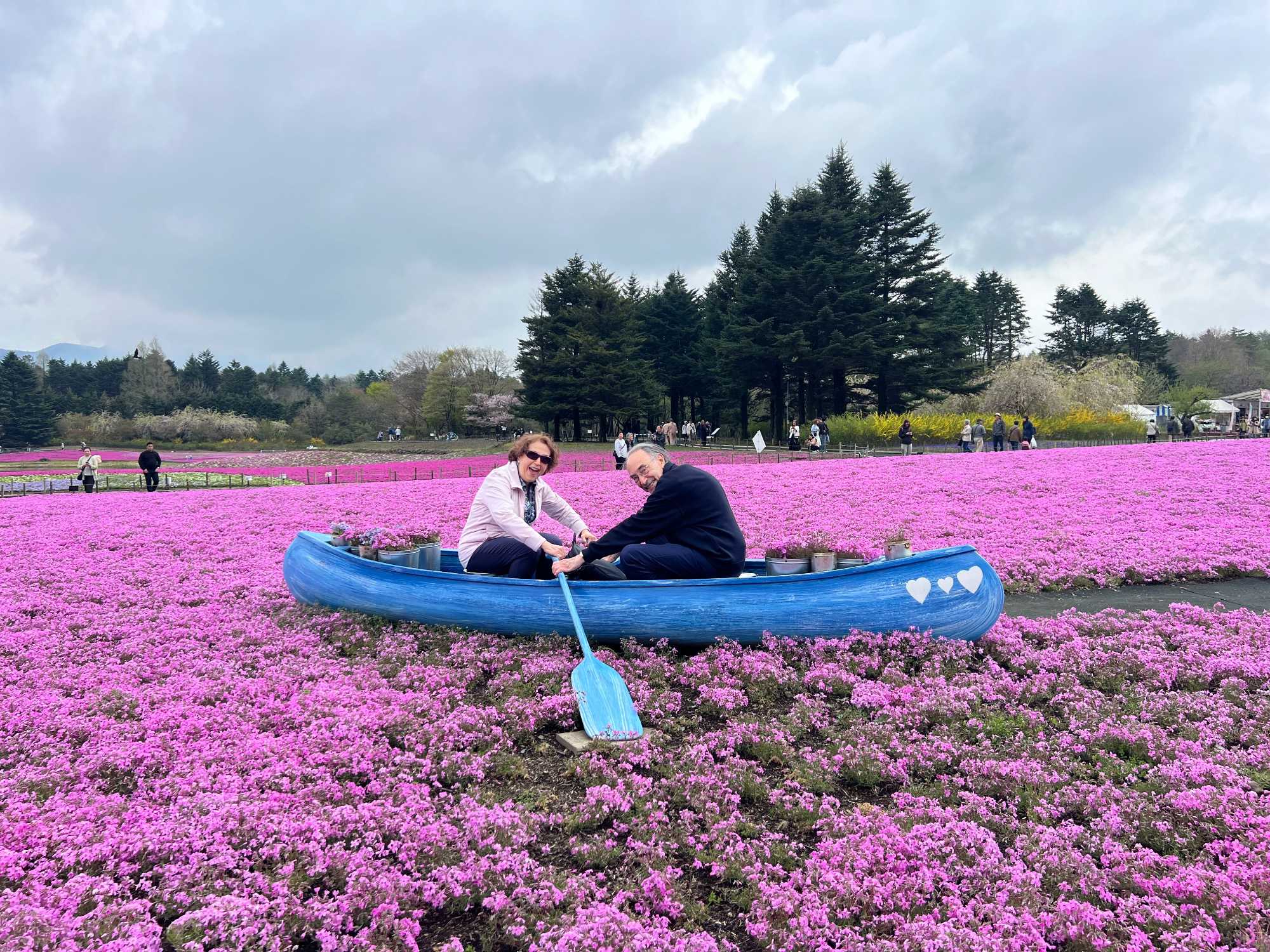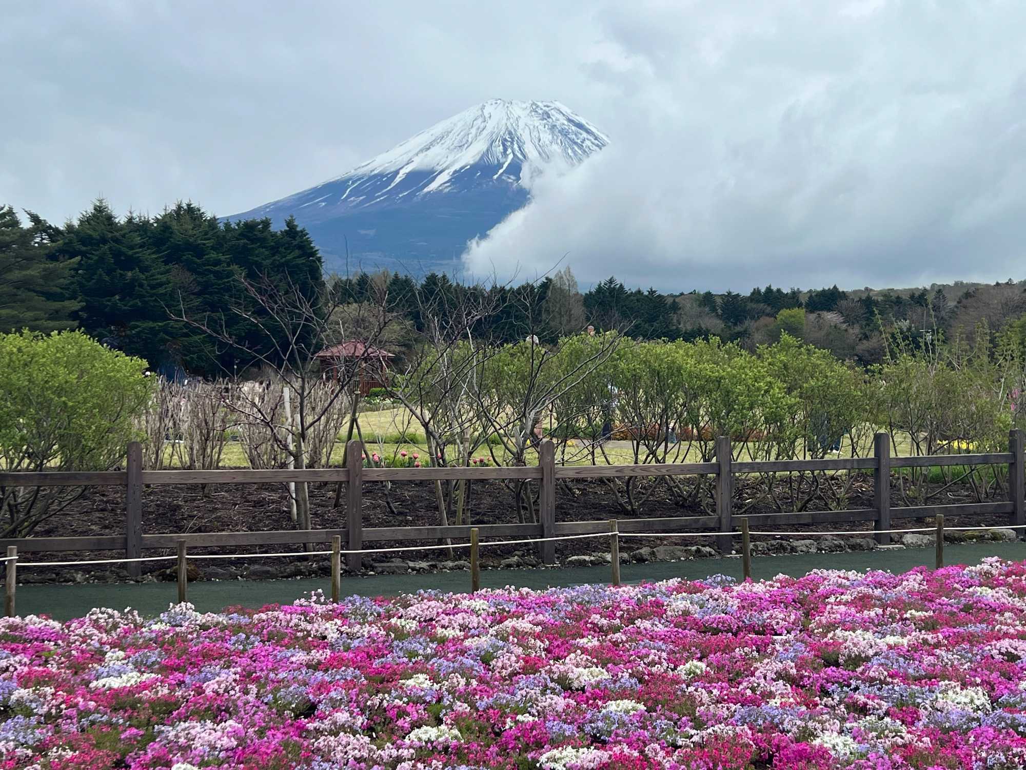 La route pour se rendre au parc où a lieu le "Fuji Shibazakura Festival" est superbe. Nous sommes entourés de montagnes et la végétation est dense. À notre arrivée au parc, on admire plus de 800 000 shiba-sakura (phlox) de plusieurs couleurs. Et le summum de tout ça, c’est que pendant quelques minutes, le mont Fuji se fait voir et nous avons l’occasion de prendre quelques photos avec ce mont en toile de fond. WOW! Quel magnifique spectacle! Nous sommes vraiment chanceux. On se dit alors que l’heure et demie passée à patienter dans le bus à été un bienfait finalement. Pour les fleurs, encore une fois notre programme est bien planifié et nous permet d’être au bon endroit au bon moment. Fuji Shibazakura Matsuri est un festival de fleurs situé à proximité du lac Motosu qui entoure le mont Fuji. Au coeur d’un parc de 2,4 hectares, ces milliers de fleurs s’épanouissent à partir de la mi-avril, sous les yeux émerveillés des promeneurs. Tandis que le lac Kawaguchiko est réputé en automne pour ses vues du mont Fuji avec les fameux érables japonais rougissants, le plus secret lac Motosu habille chaque printemps ses alentours d’un immense parterre de fleurs, allant du rose au violet en passant par le blanc.