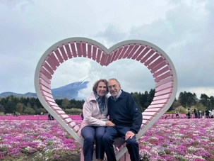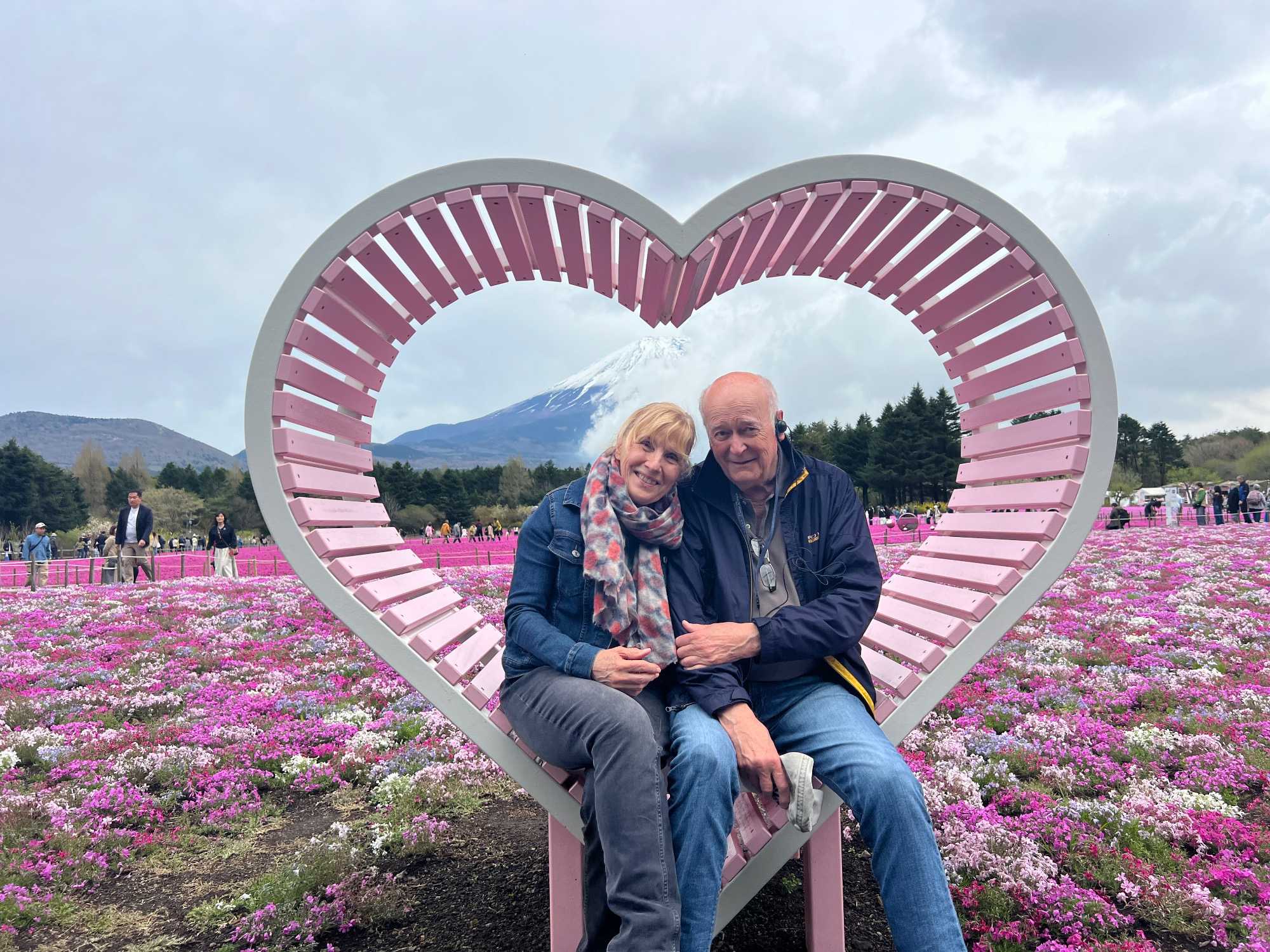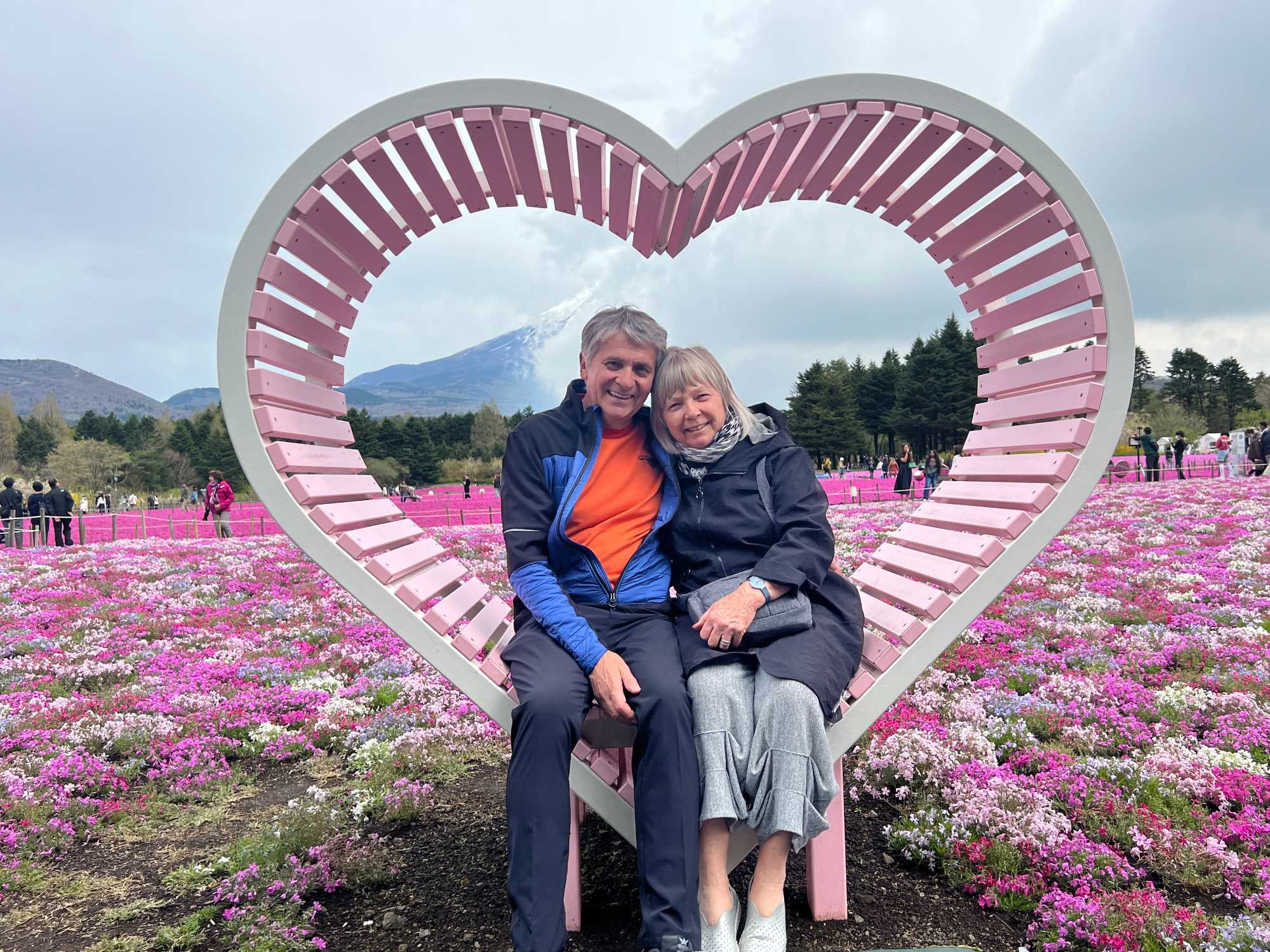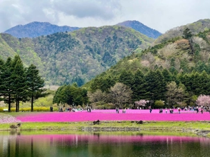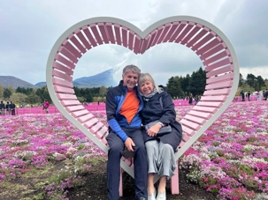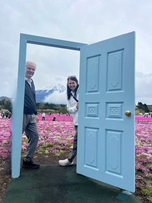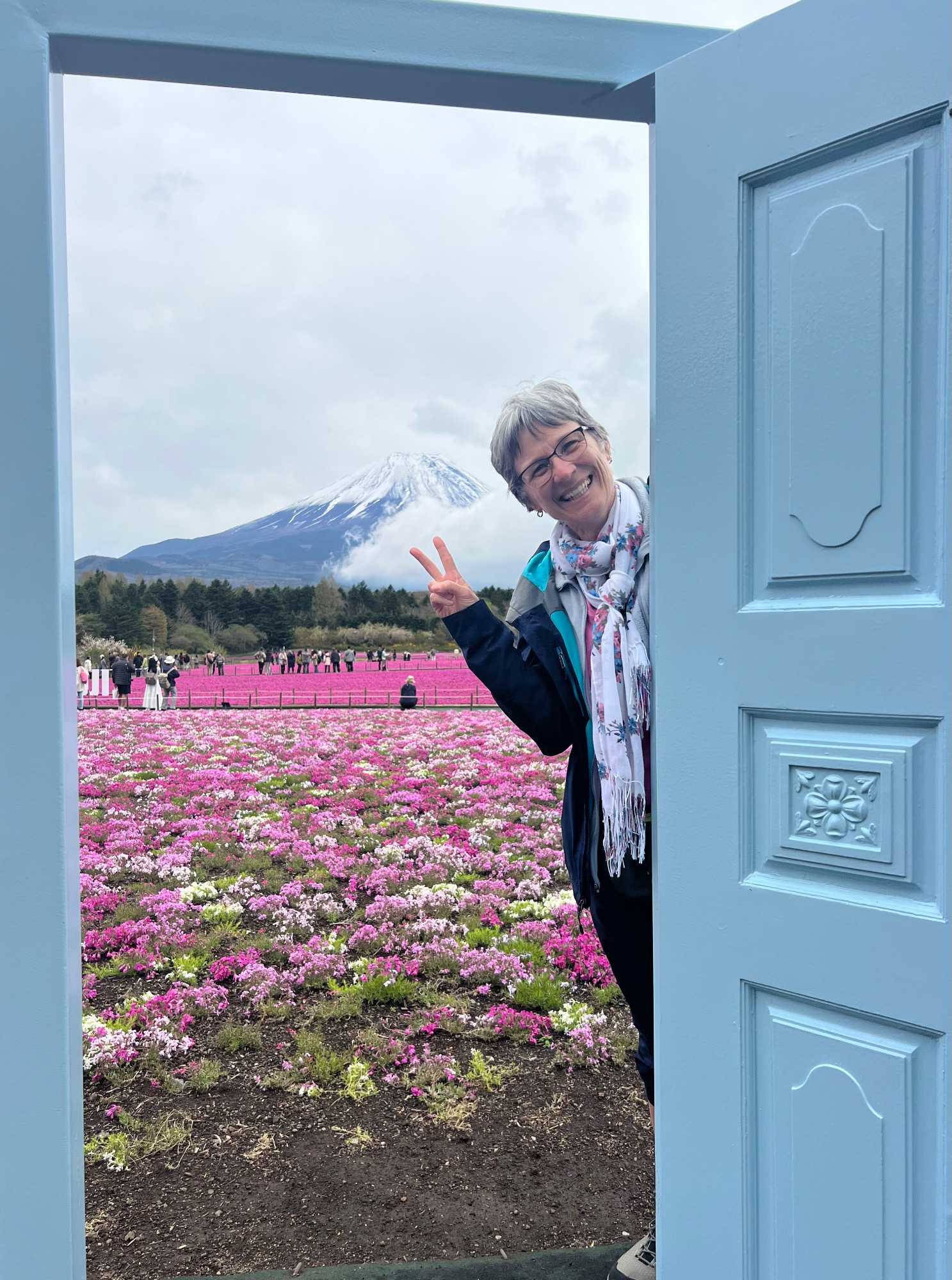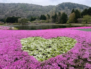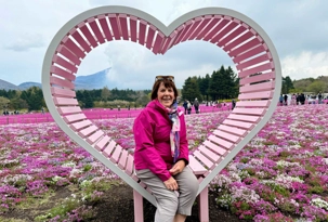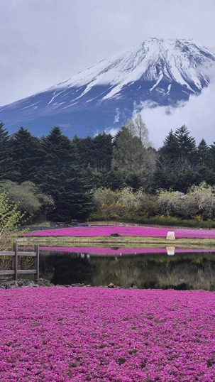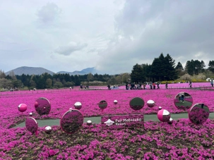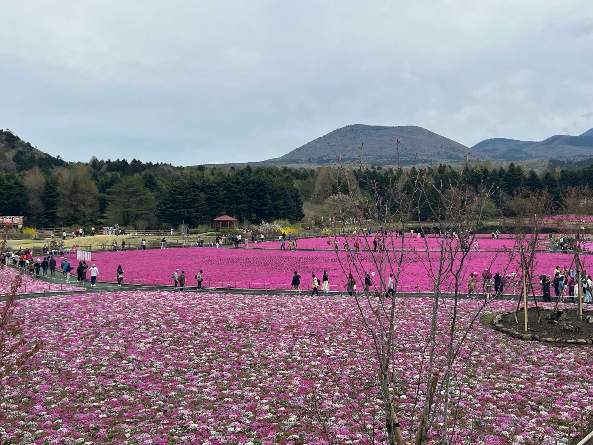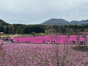 La route pour se rendre au parc où a lieu le "Fuji Shibazakura Festival" est superbe. Nous sommes entourés de montagnes et la végétation est dense. À notre arrivée au parc, on admire plus de 800 000 shiba-sakura (phlox) de plusieurs couleurs. Et le summum de tout ça, c’est que pendant quelques minutes, le mont Fuji se fait voir et nous avons l’occasion de prendre quelques photos avec ce mont en toile de fond. WOW! Quel magnifique spectacle! Nous sommes vraiment chanceux. On se dit alors que l’heure et demie passée à patienter dans le bus à été un bienfait finalement. Pour les fleurs, encore une fois notre programme est bien planifié et nous permet d’être au bon endroit au bon moment. Fuji Shibazakura Matsuri est un festival de fleurs situé à proximité du lac Motosu qui entoure le mont Fuji. Au coeur d’un parc de 2,4 hectares, ces milliers de fleurs s’épanouissent à partir de la mi-avril, sous les yeux émerveillés des promeneurs. Tandis que le lac Kawaguchiko est réputé en automne pour ses vues du mont Fuji avec les fameux érables japonais rougissants, le plus secret lac Motosu habille chaque printemps ses alentours d’un immense parterre de fleurs, allant du rose au violet en passant par le blanc.