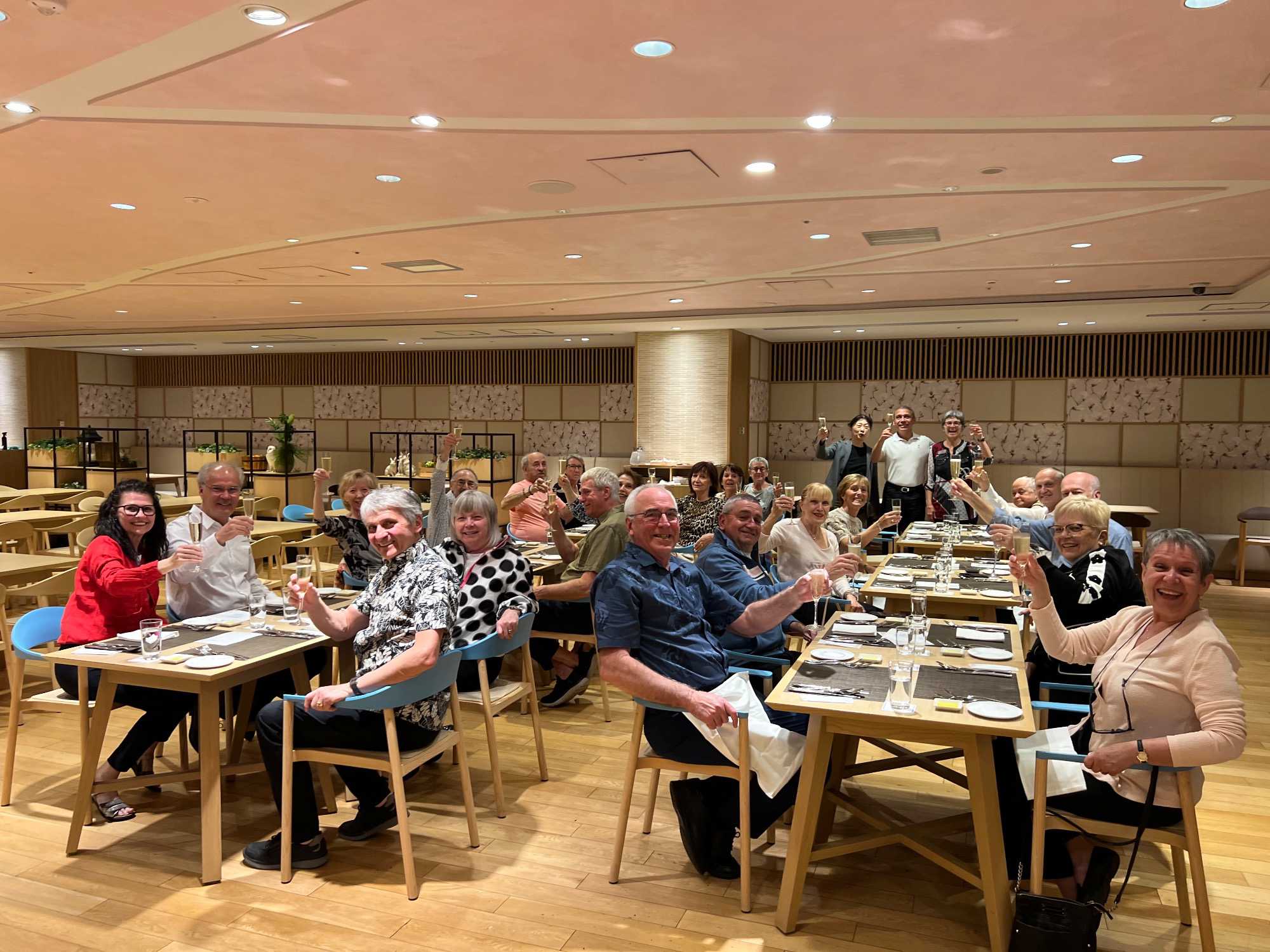 Ce matin, nous prenons notre petit-déjeuner tôt car nous quittons le navire et avons une bonne journée planifiée devant nous. Le débarquement se fait tout en douceur. Un autre des avantages de l’Azamara, c’est que nous n’avons pas d’heure spécifique de départ. Un dernier débarquement, un aurevoir à Jeannette qui « scan » pour une dernière fois notre carte du navire, une salutation de l’équipe des officiers, et nous voilà de nouveau sur terre. On passe encore une fois l’immigration japonaise, à un rythme très rapide. Dès 8h, nos valises sont à bord de l’autobus et nous quittons pour une escapade féerique dans la région des cinq lacs, à Yamanashi. Nous avons la chance d’avoir une belle journée pour nous: assez nuageuse avec quelques éclaircies et un bon 17 degrés. Pas de pluie!
