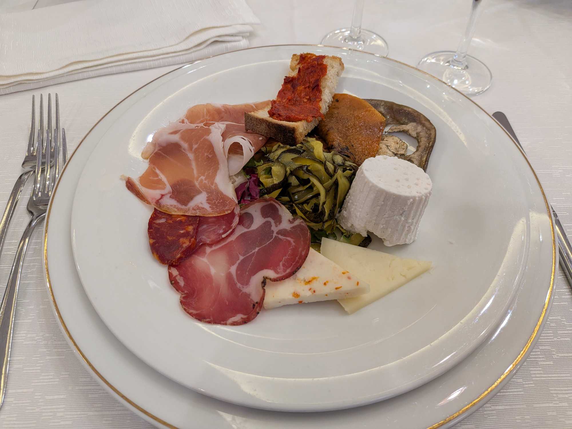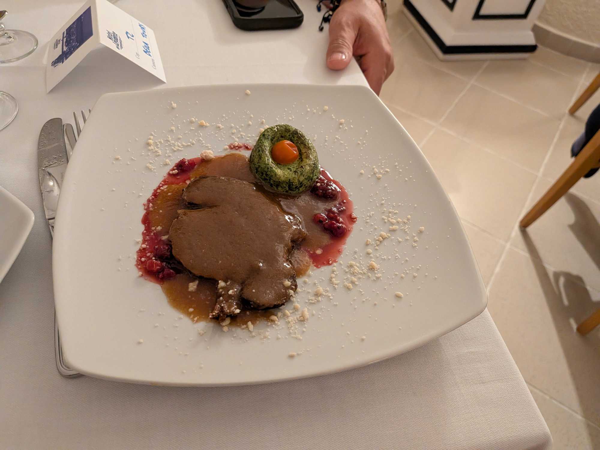 Nous dînons en route dans un belle endroit dans les montagnes qui se nomme Villa Santa Caterina. Un bel endroit où on a tellement bien mangé encore une fois.