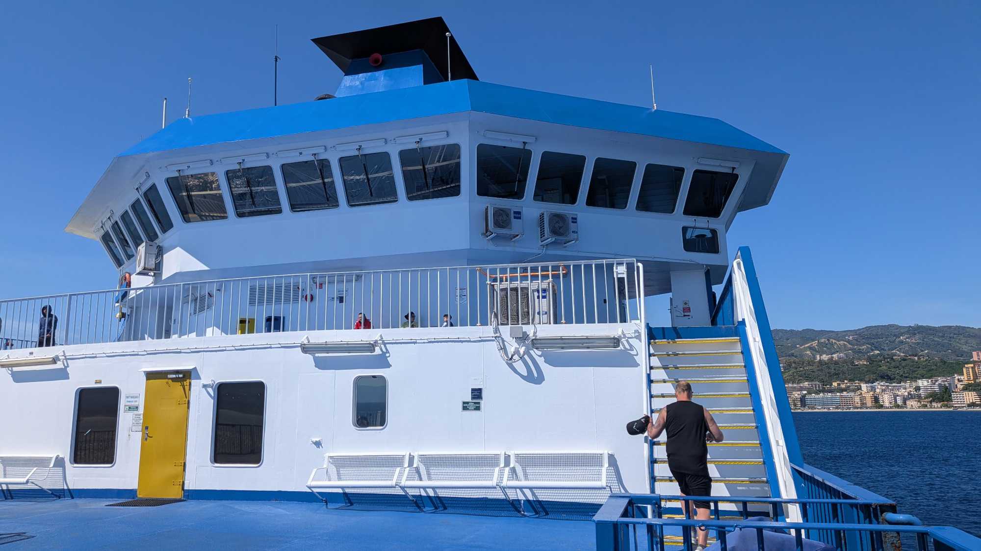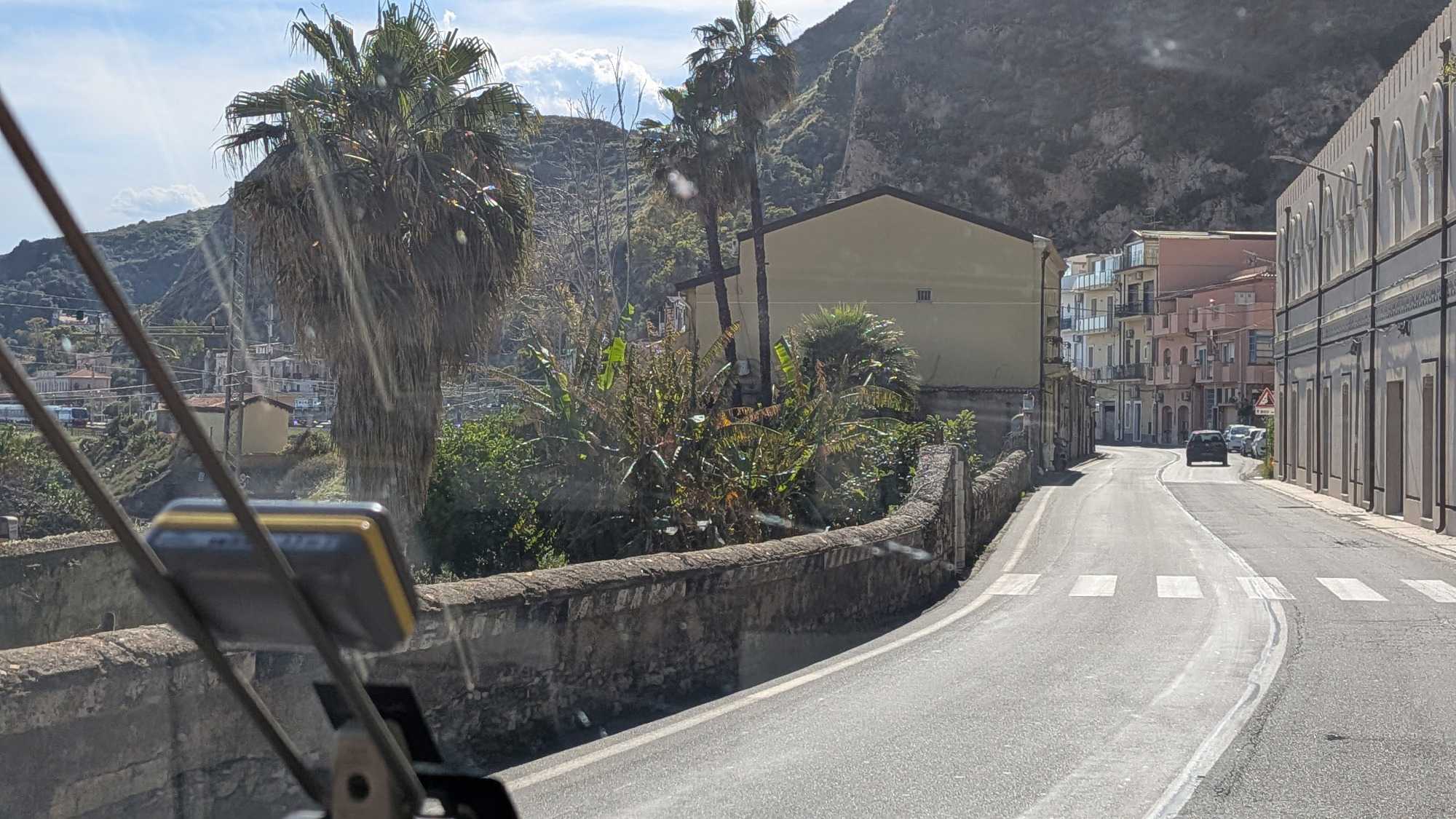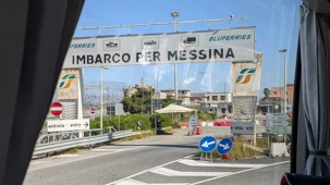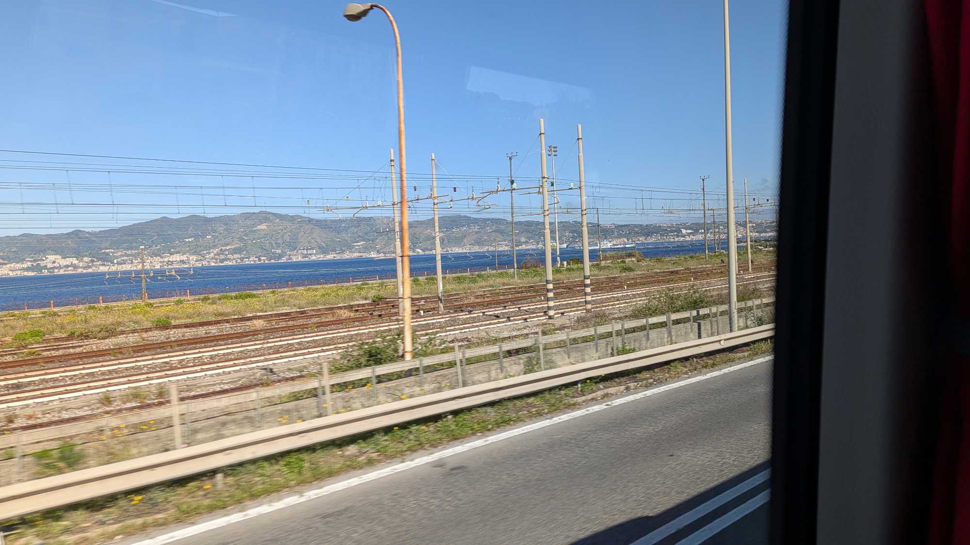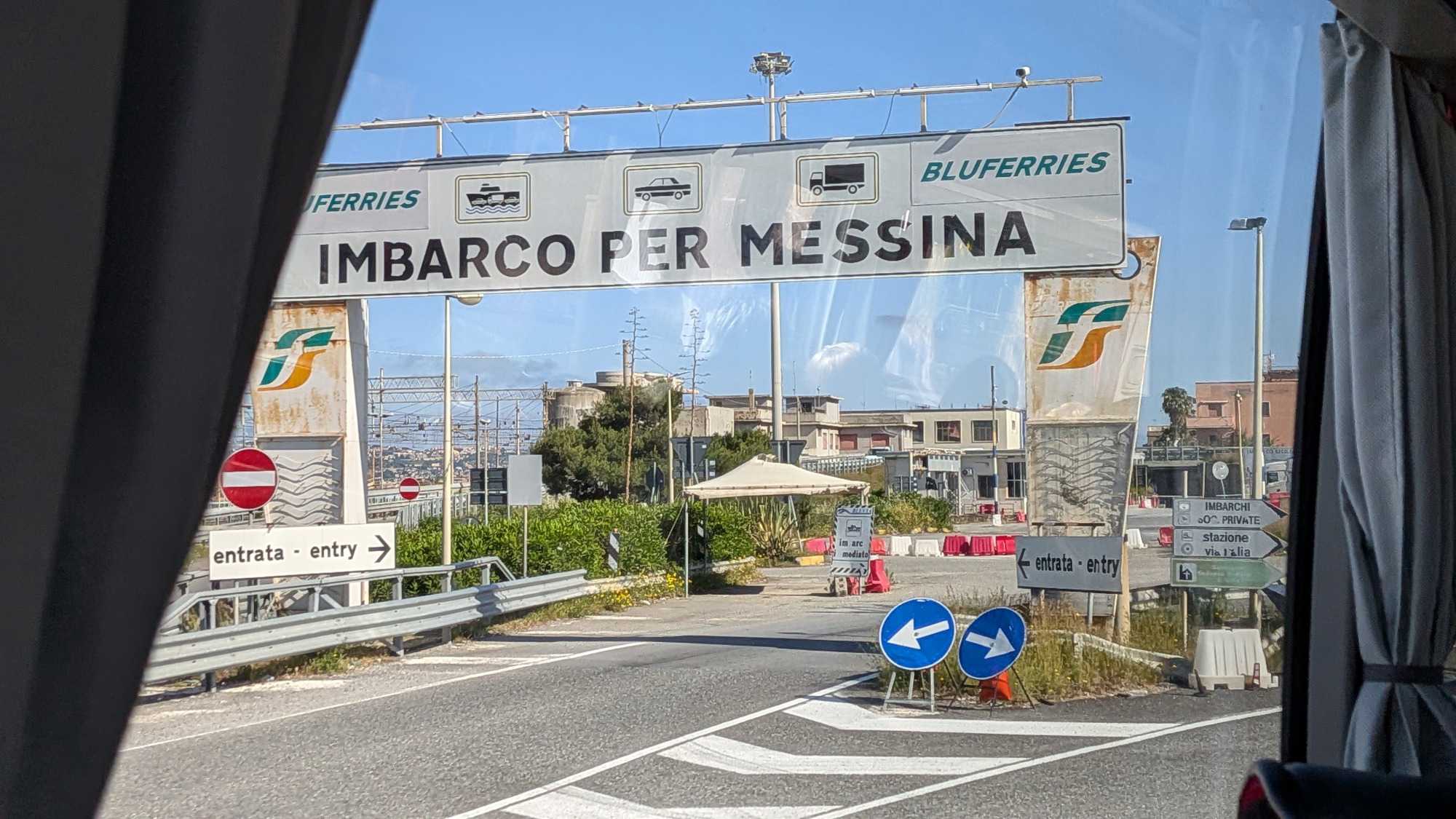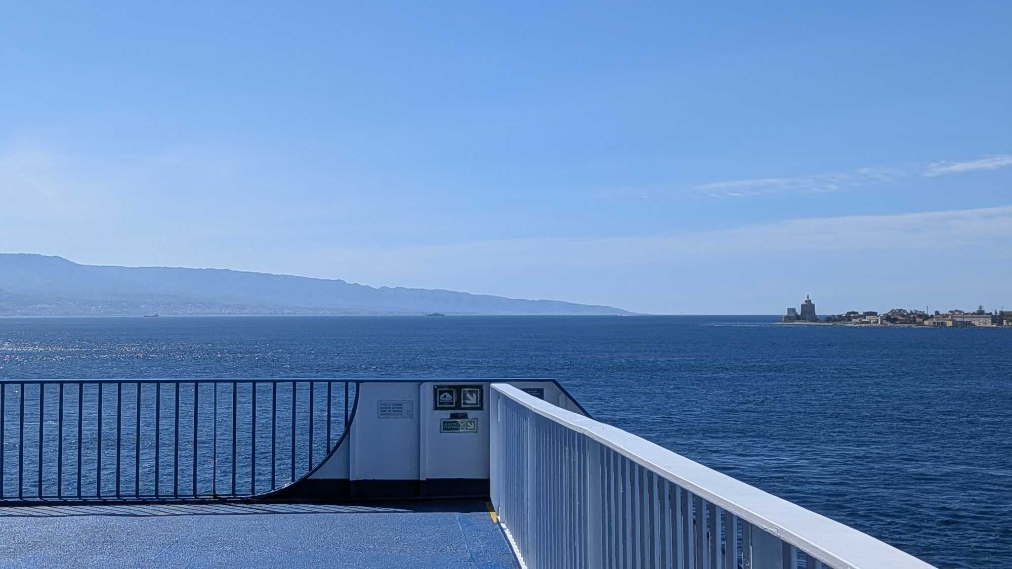 On continue sur la route qui longe la mer Tyrrhénienne est parsemée de plantations d'oliviers et d'orangers. Ainsi on arrive à Villa San Giovanni. On prend un bateau pour traverser le Détroit de Messine vers la Sicile.