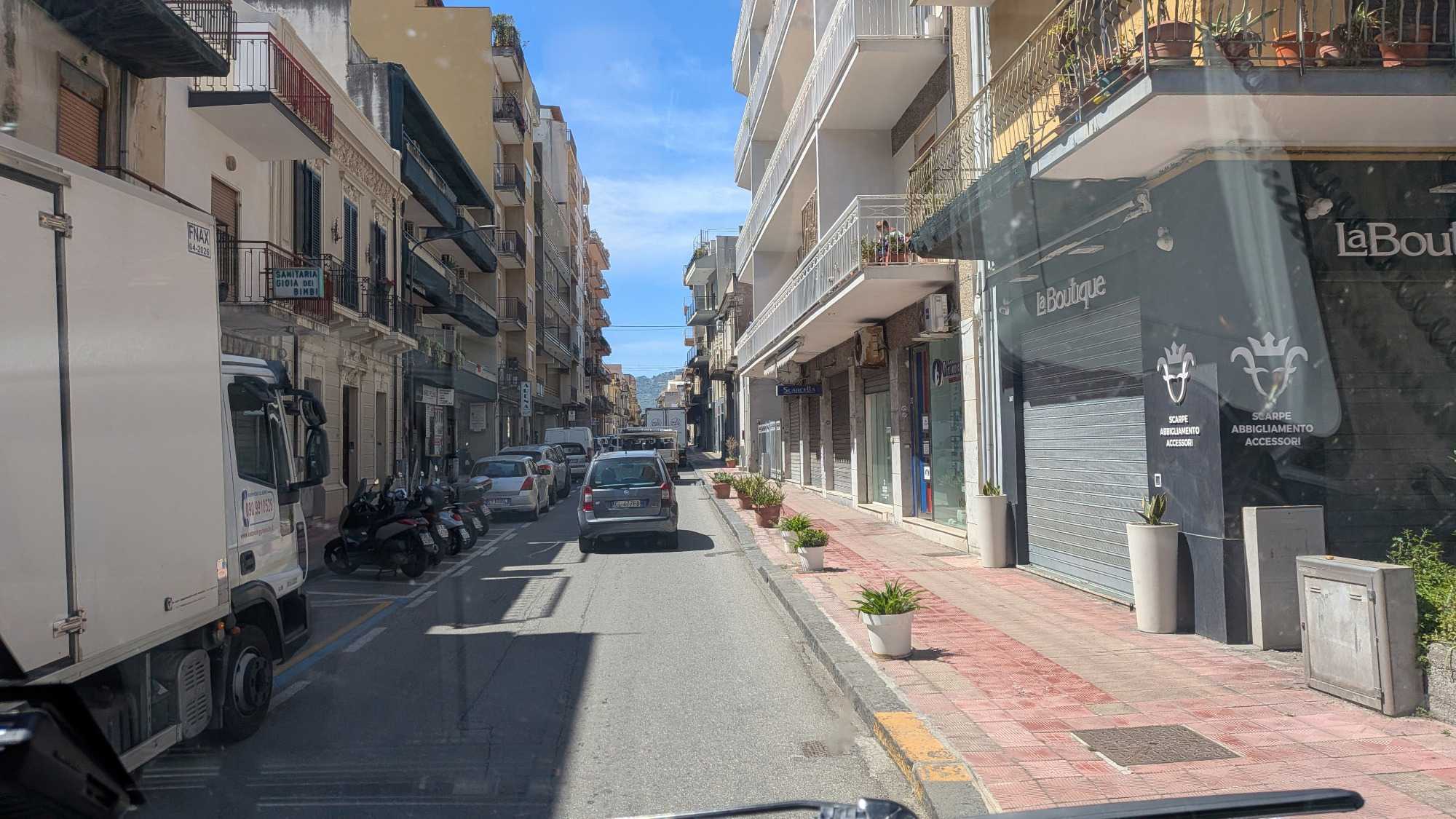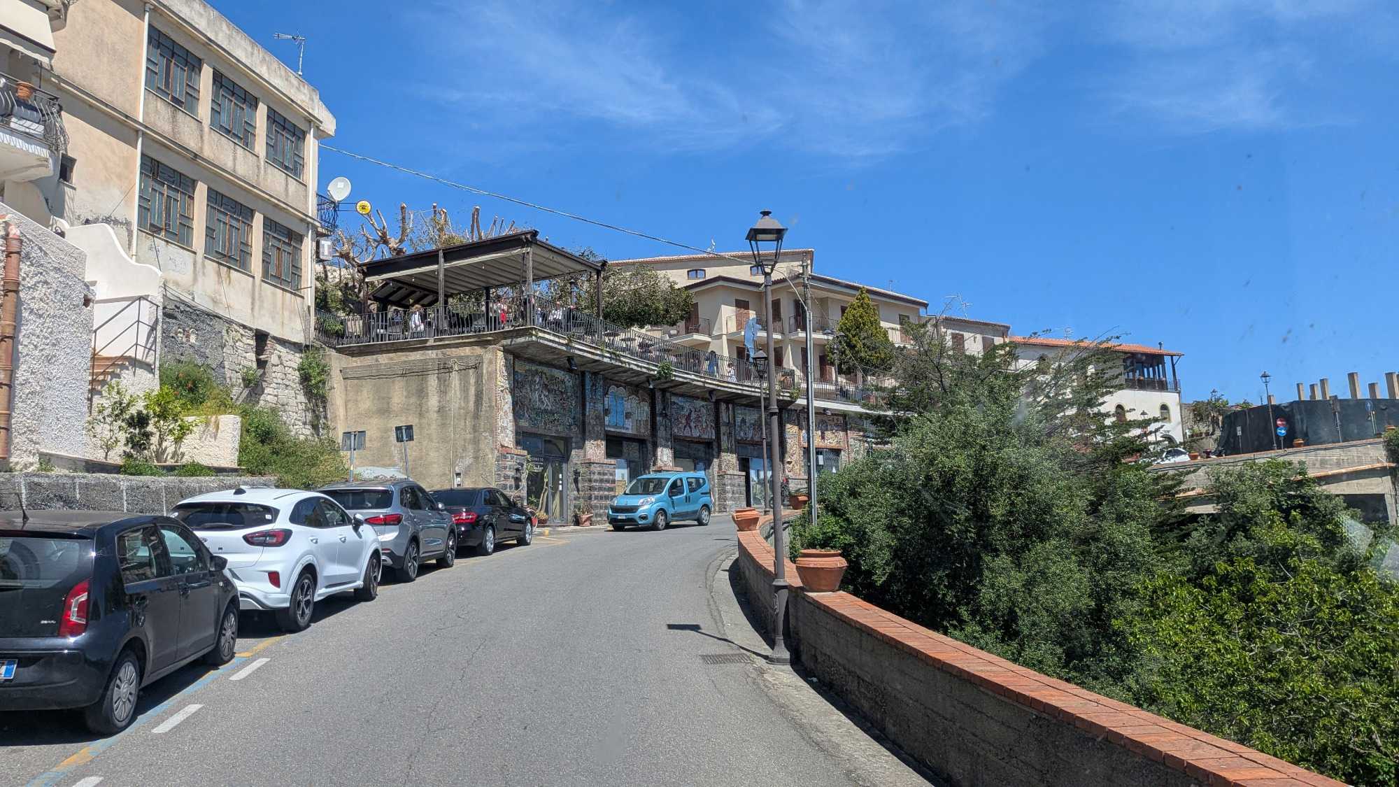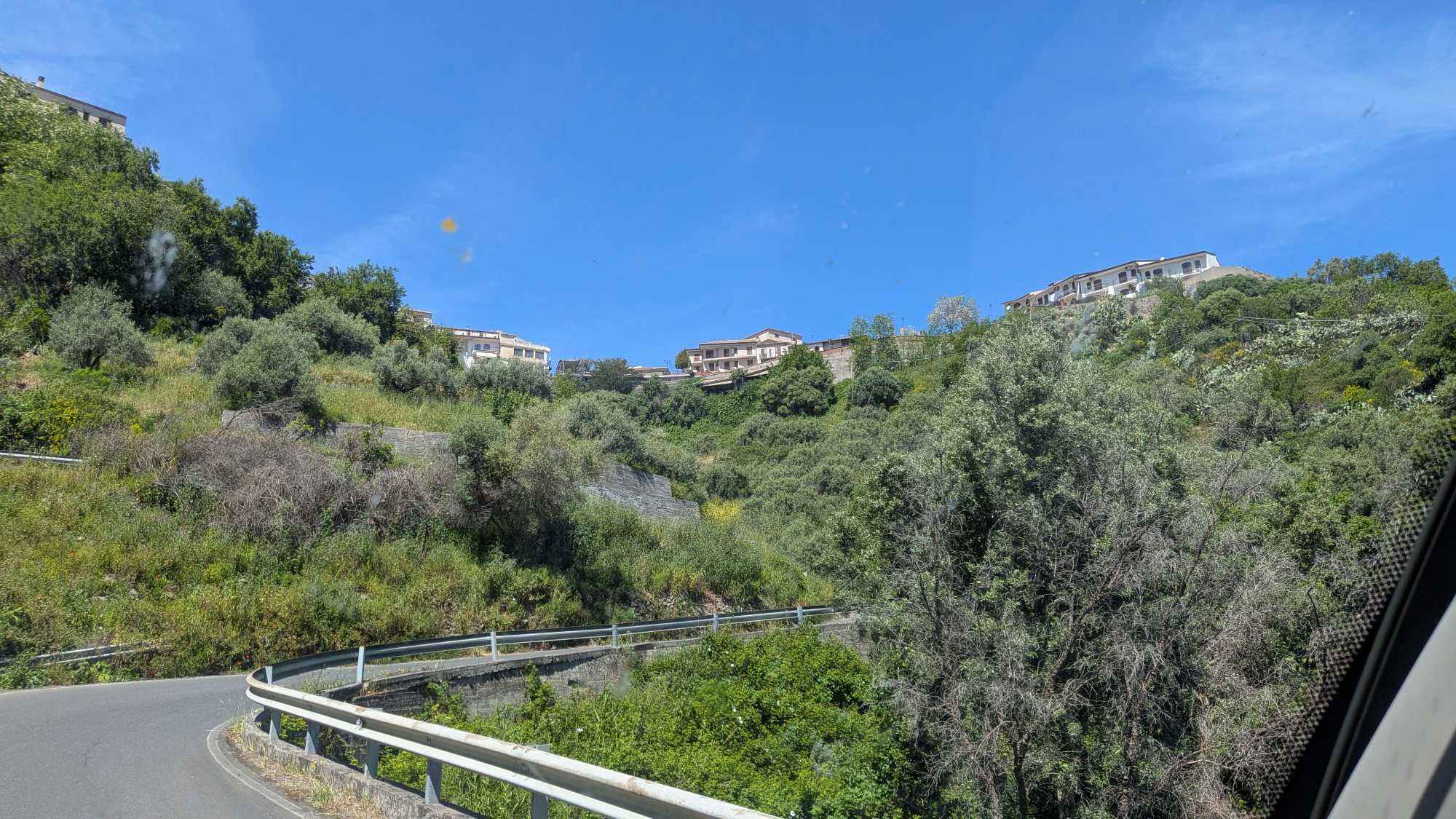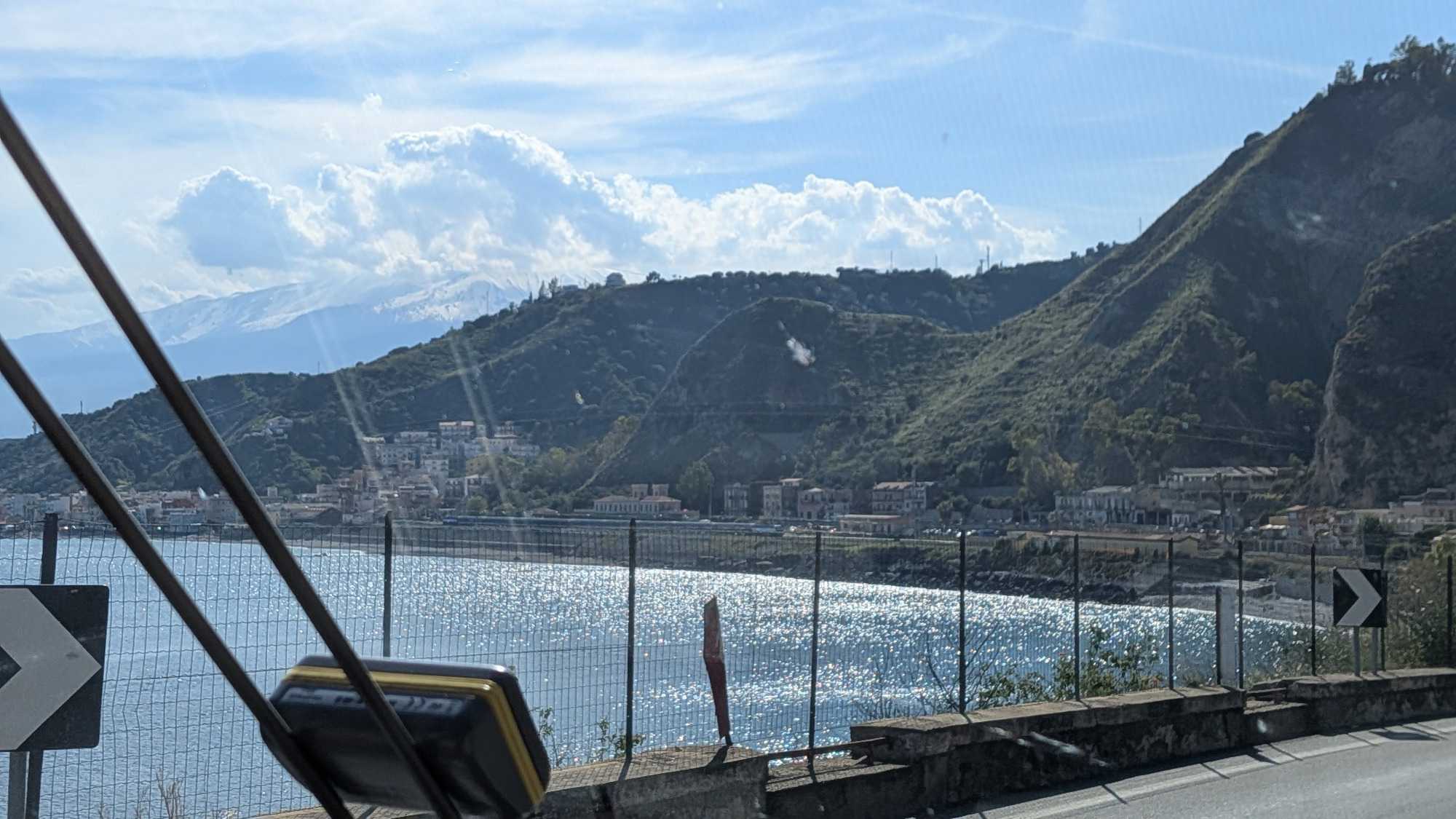 On continue sur la route qui longe la mer Tyrrhénienne est parsemée de plantations d'oliviers et d'orangers. Ainsi on arrive à Villa San Giovanni. On prend un bateau pour traverser le Détroit de Messine vers la Sicile.