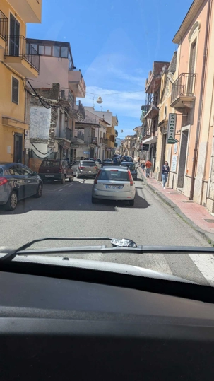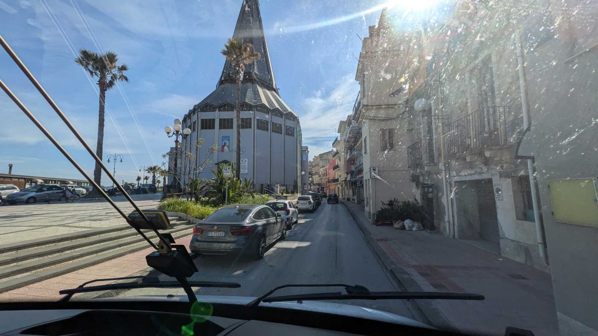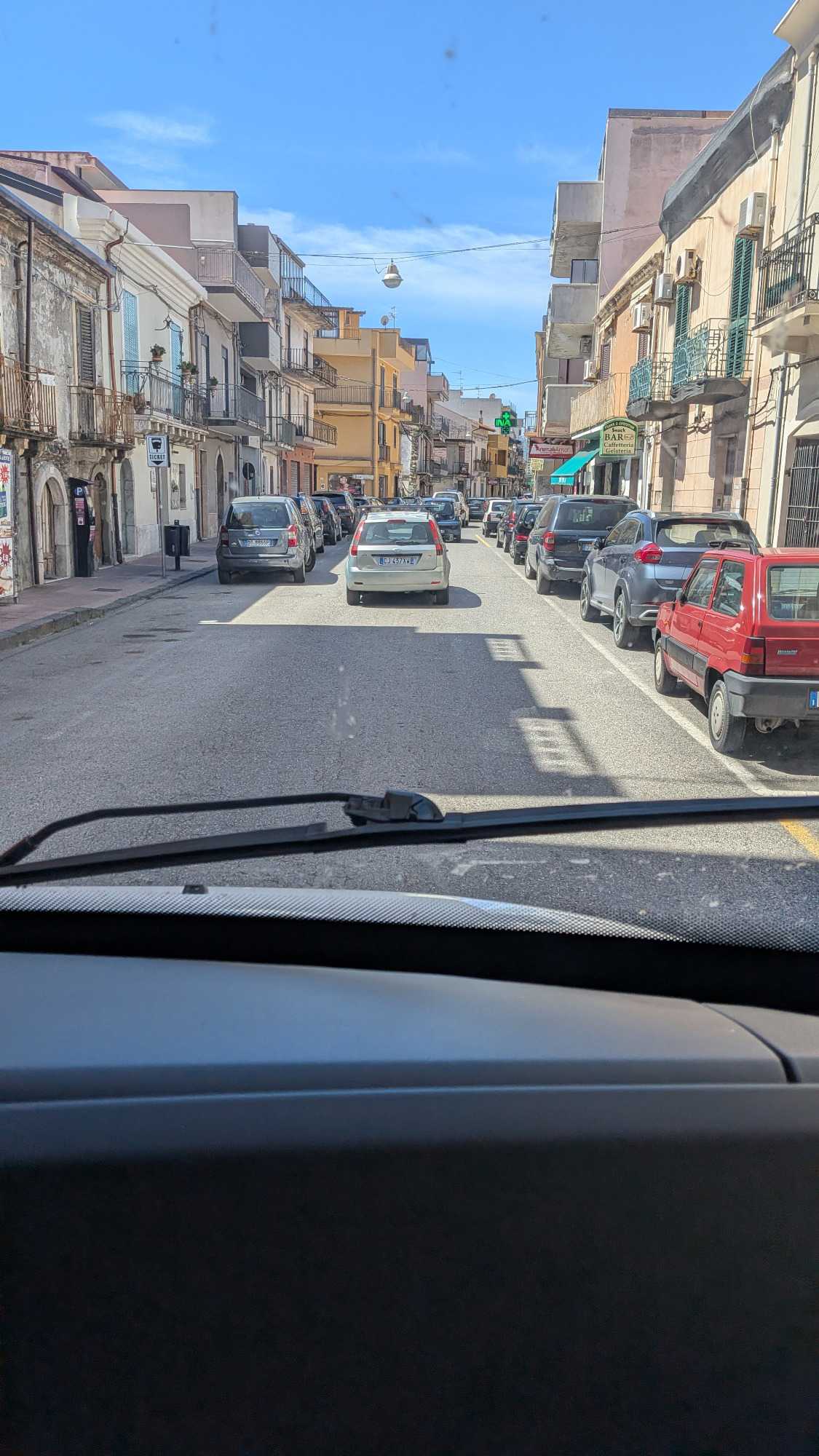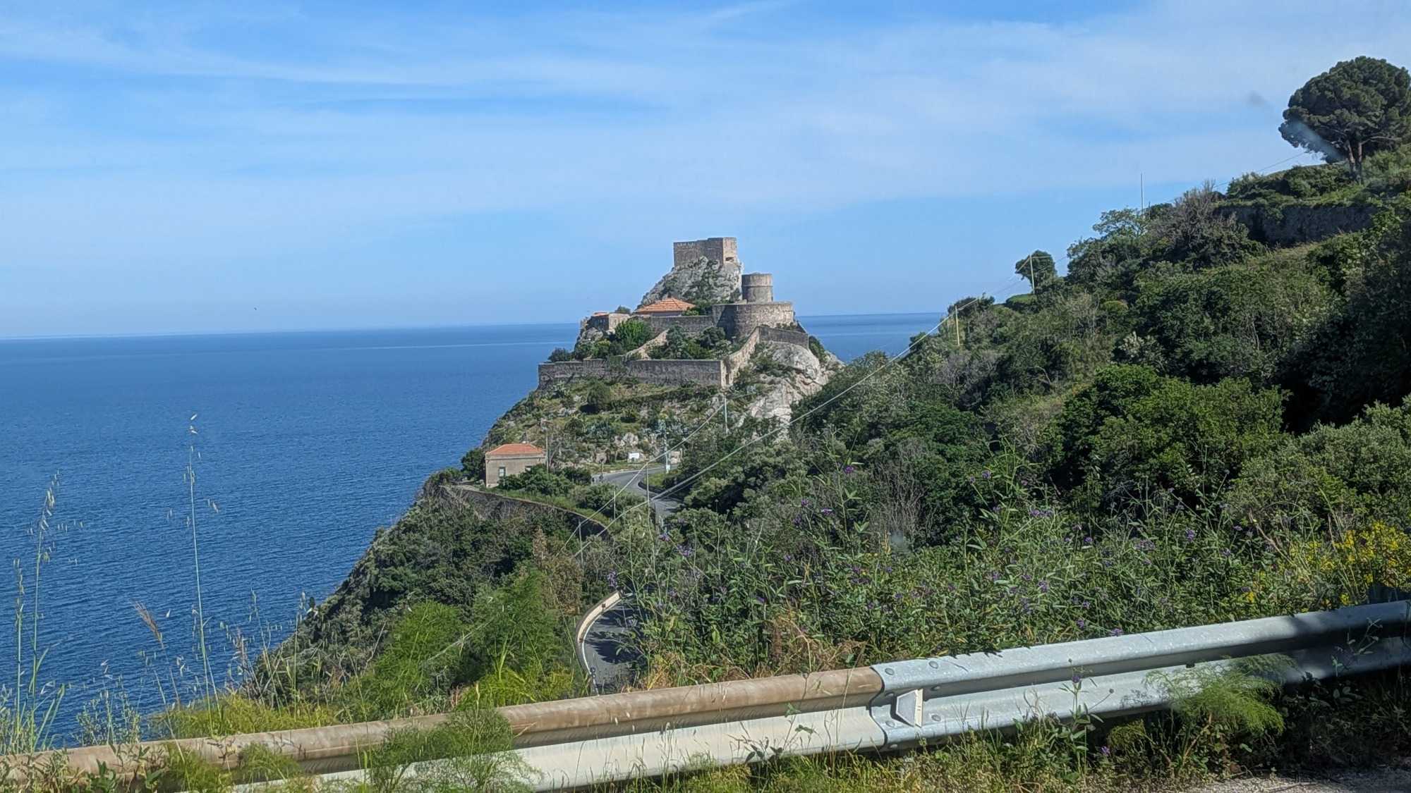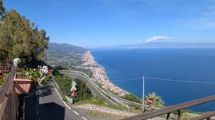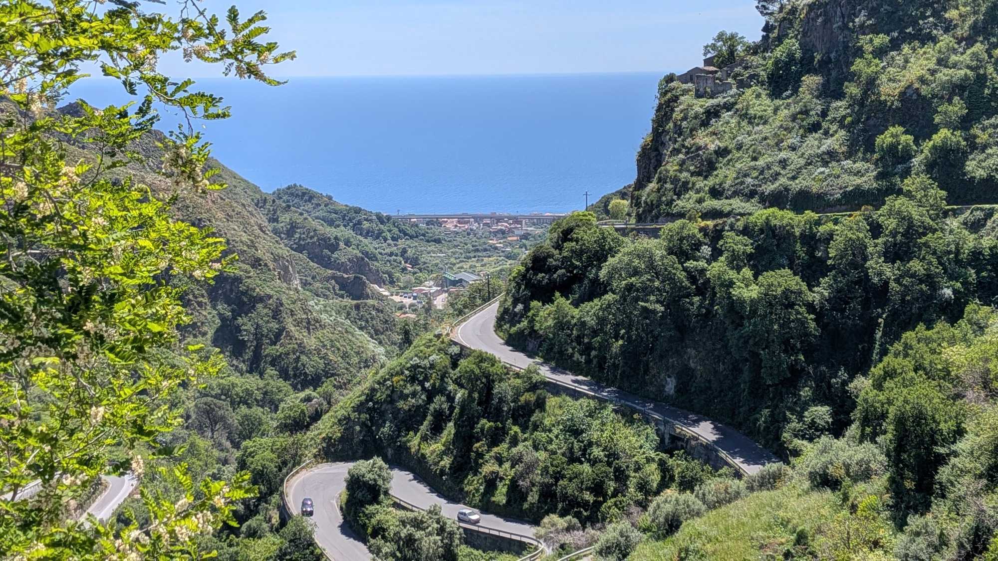 On continue sur la route qui longe la mer Tyrrhénienne est parsemée de plantations d'oliviers et d'orangers. Ainsi on arrive à Villa San Giovanni. On prend un bateau pour traverser le Détroit de Messine vers la Sicile.