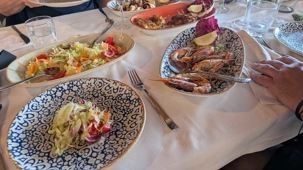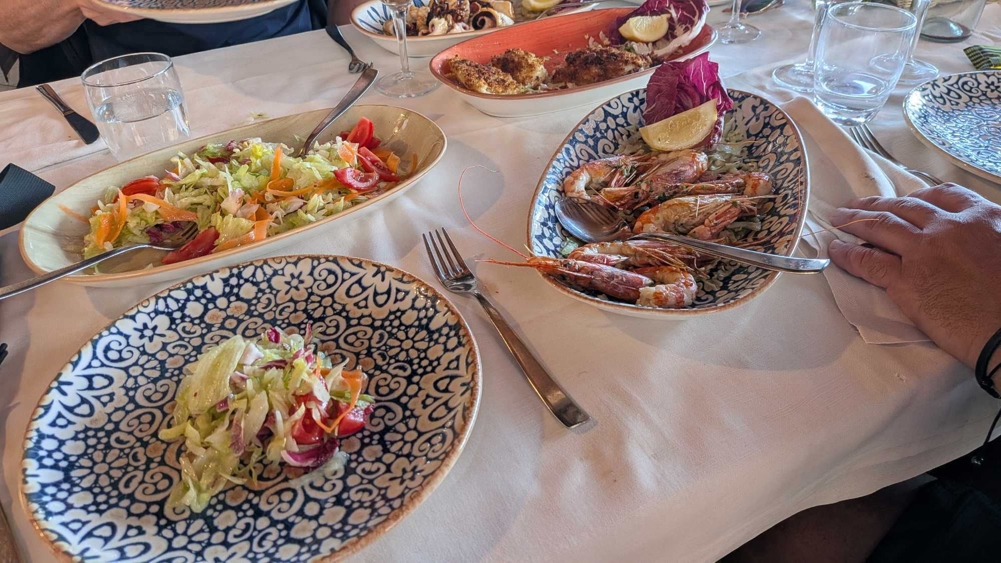 Nous avons été mangé en haut d'une colline où le restaurant qui se nomme Le Parrain. On a eu une vue superbe sur la mer les collines. On a tellement mangé mais c'était très bon. On a eu au moins 15 entrés différents à part du dessert, c'était un repas copieux.