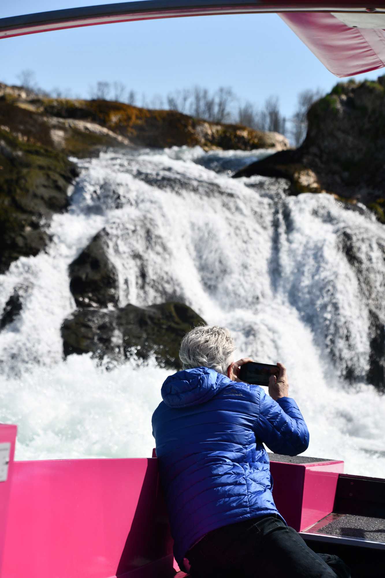 Après le repas, une petite pause digestive nous attend à bord d’un charmant bateau rose fluo! Pendant une croisière d’une trentaine de minutes, nous nous approchons des chutes de manière spectaculaire. Quel privilège de pouvoir observer ce phénomène naturel d’aussi près! Le grondement de l’eau, les éclaboussures rafraîchissantes et la beauté saisissante du décor marquent déjà nos premiers souvenirs de voyage.