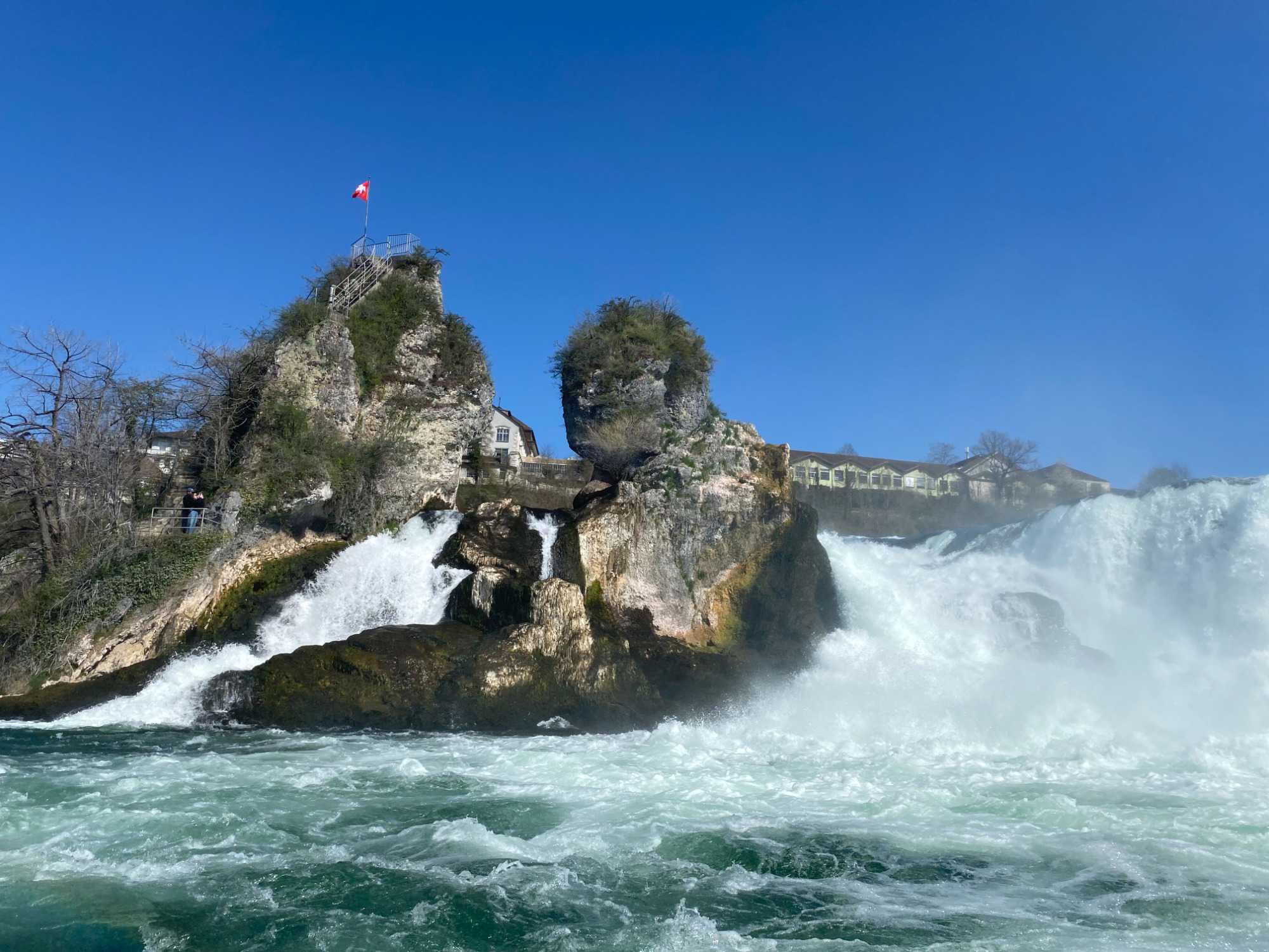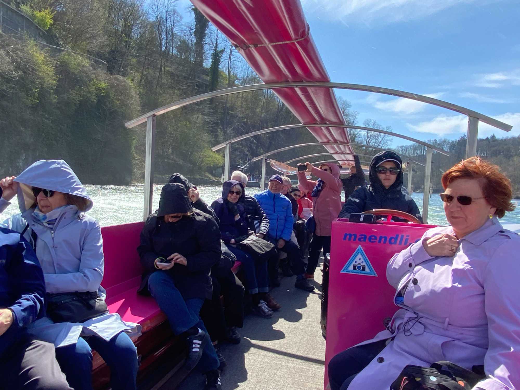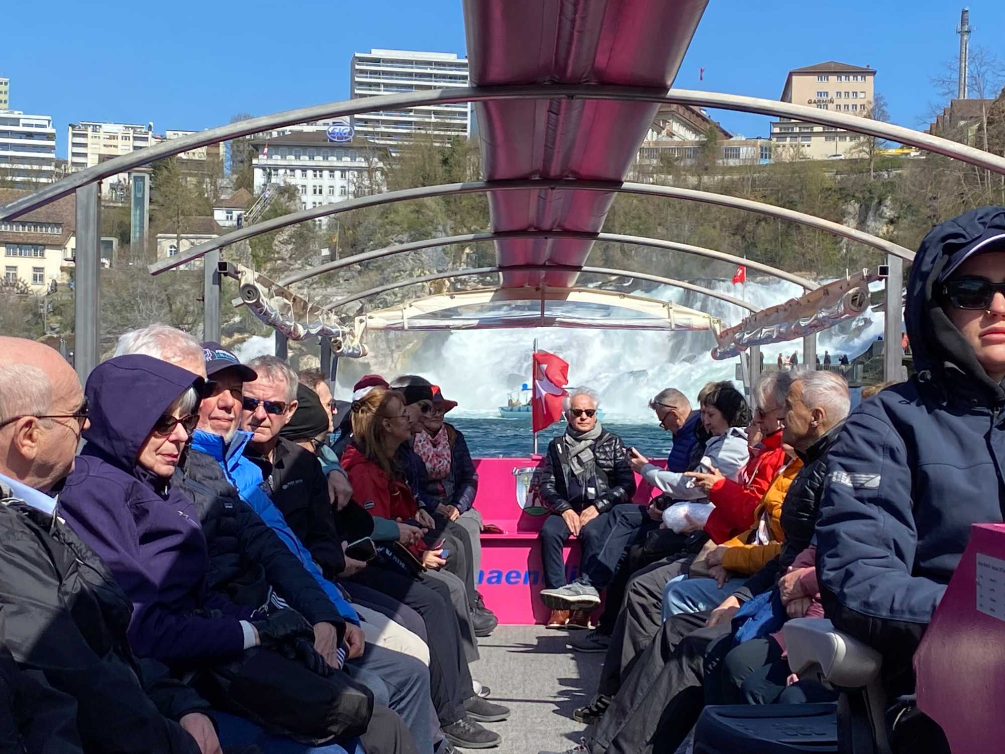 Nous montons à bord de notre confortable autocar en direction de Neuhausen, pour un premier arrêt aussi impressionnant que symbolique: les majestueuses Chutes du Rhin! C’est aussi ici que nous savourons notre tout premier repas sur sol européen.
