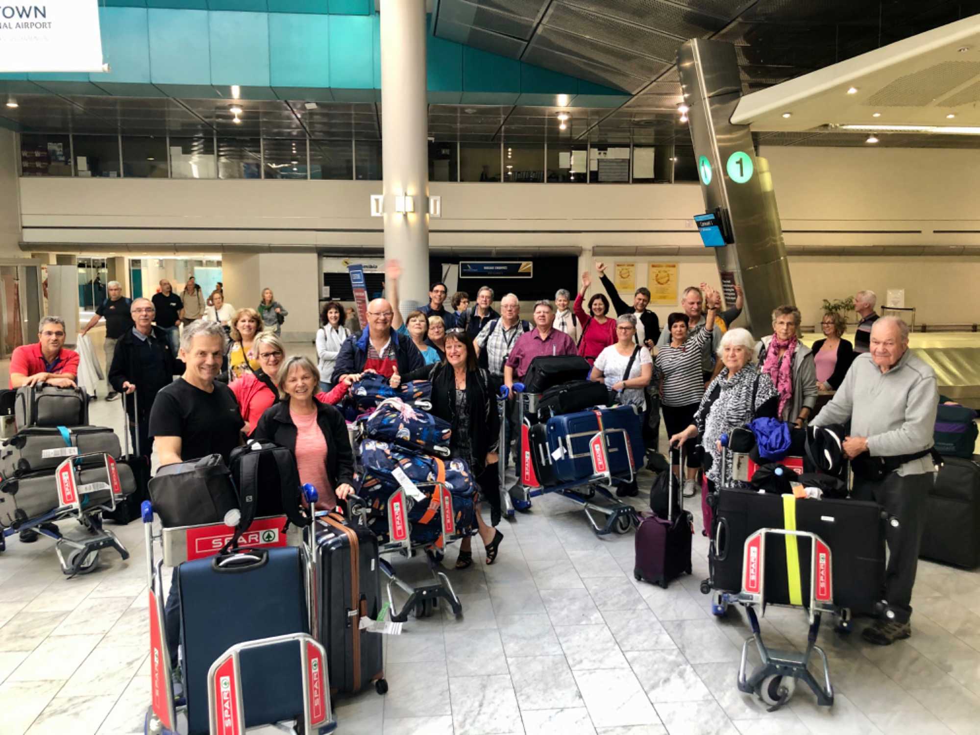 Nous arrivons à l’aéroport et tout le monde récupère sa valise. Toujours un soulagement que de d’apercevoir sa valise sur le carrousel à bagages. Nous récupérons notre valise et nous sortons de la zone pour faire connaissance avec notre guide pour le voyage, Sefiou, qui sera avec nous pour le début de notre voyage. Mon guide Léonce est retenu par le décès de son papa mais nous rejoindra dans une semaine pour le reste à faire en Afrique du sud et ensuite la Namibie. Je le connais depuis de nombreuses années et c’est toujours un immense plaisir que de voyager en sa compagnie. Mes voyageurs vont l’adorer j’en suis certaine mais déjà, notre charmant guide Sefiou nous plait beaucoup. Le temps est gris mais il ne pleut pas. C'est durant notre lunch que la pluie a débuté. En après-midi nous avions des passages de soleil et de la pluie fine. Anormal, oui, car nous sommes au printemps en Afrique et la saison des pluies s'est terminée en fin aoüt mais bon j'ai le meilleur groupe pour accepter la situation.