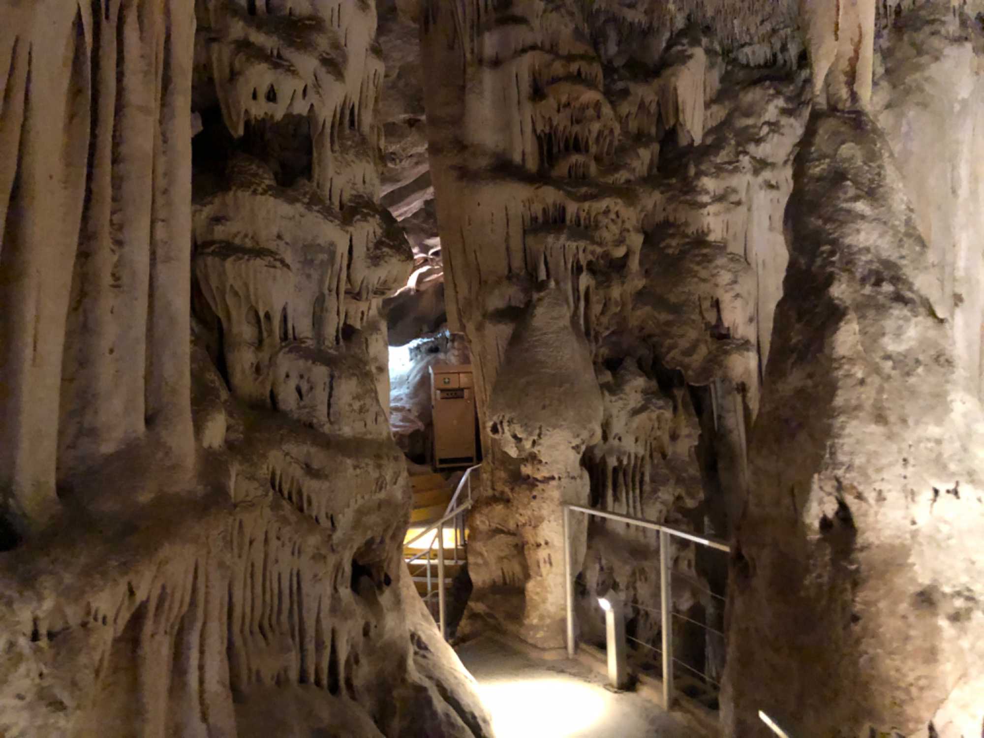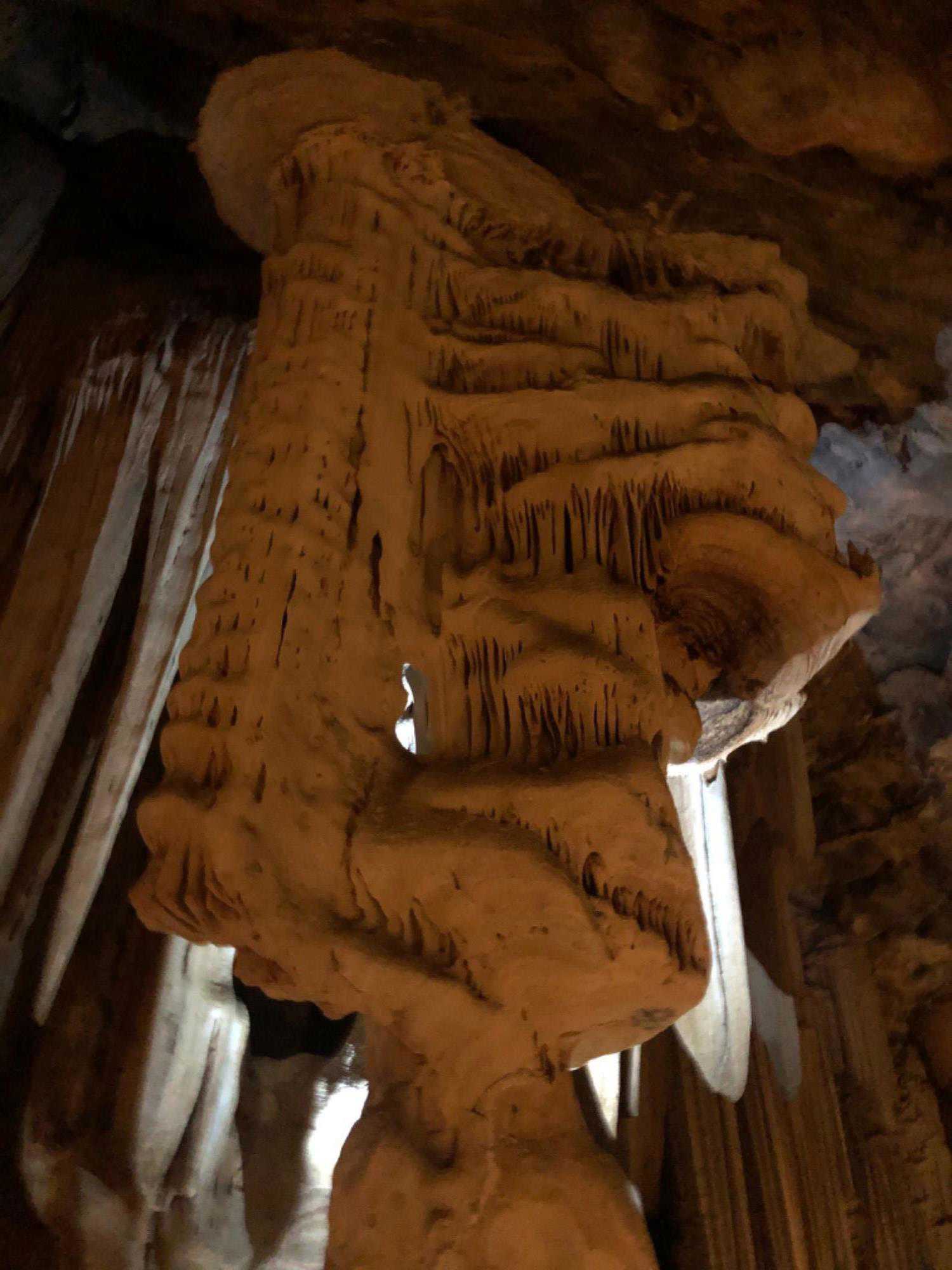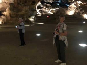 La route fût spectaculaire avec des paysages exceptionnels. Mais avec de la construction et le changement d’autobus ce matin nous avons pris pas mal de retard. La route panoramique ne nous permettait pas de rouler plus vite. Nous avons fait quelques arrêts photos et pause santé afin de faciliter le déplacement ce qui nous a aussi pris du temps. Comble de malheur, la grotte Cango nous avise d’un marathon qui passerait dans la grotte en fin d’après-midi et ils nous informent que nous devions faire la visite avant leur passage. Deux choix on mange ou bien on visite…. Heureusement que j’avais profité de notre dernier arrêt pour me faire couper des batônnets de fromage qui nous ont fait un petit fond. Avec nos amandes et des chips nous avons donc choisi la visite. Aucun regret car les grottes sont splendides et cela valait le coup. Il faut dire que depuis le début du voyage on mange beaucoup. Les grottes Cango abritent des formations calcaires impressionnantes sculptées par 20 millions d’années d’érosion. Une belle découverte dans des grottes bien aménagées. Les photos sont bien belles.
