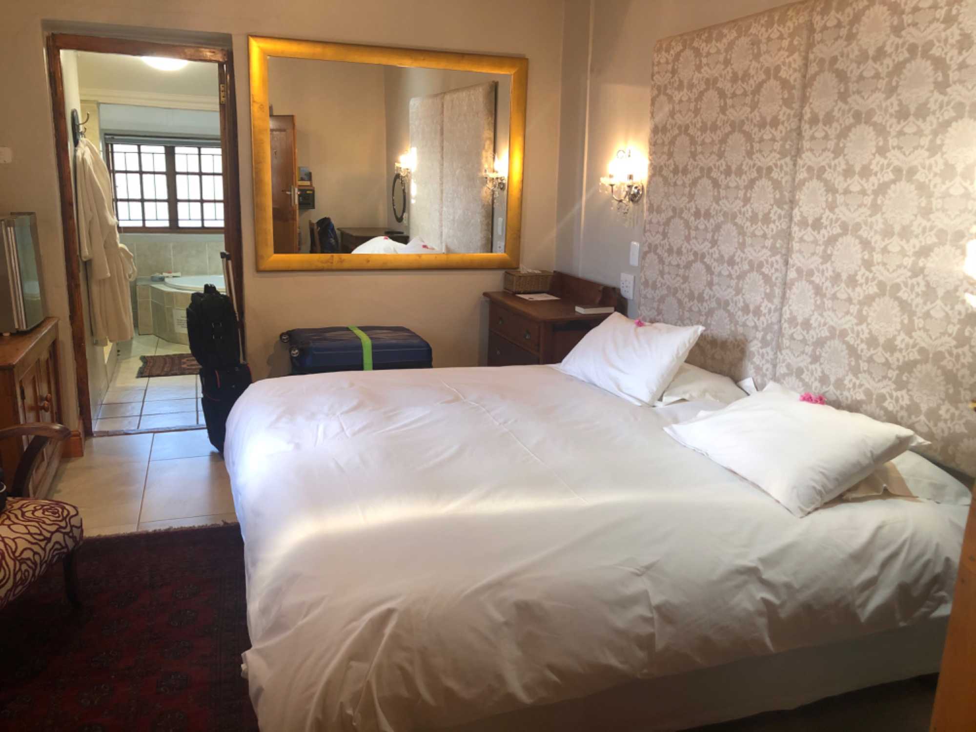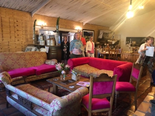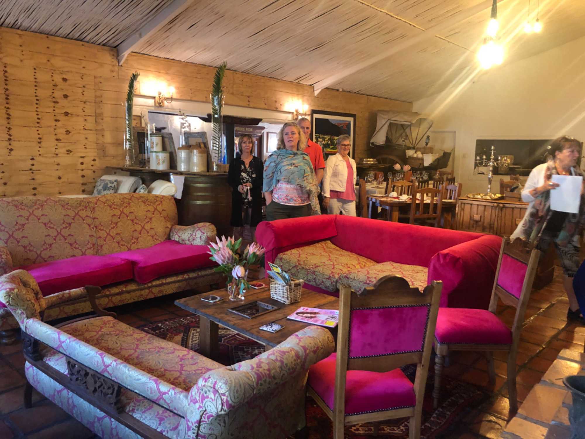 Après la visite et les achats nous prenons la route vers la ville d’Oudtshoorn situé à quelques 15 minutes. Arrivés à notre hôtel pour le temps d’une douche, ensuite retour à la salle à manger pour l’apéro. C’est à nouveau un hôtel de charme qui avait attiré mon attention et que j’avais apprécié lors de l’un de mes voyages. Ce sont de jolies maisonnettes situées dans des jardins magnifiques où l’on se sent un peu chez nous. La belle salle à manger est aussi chaleureuse avec tous ces objets anciens qui en font la décoration.