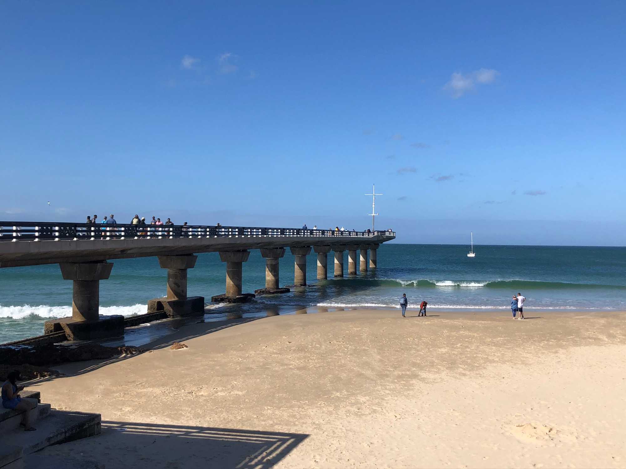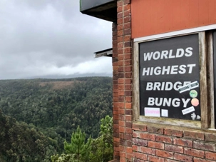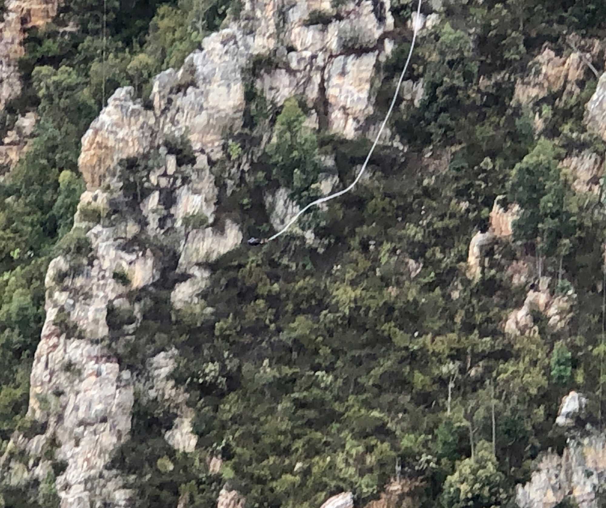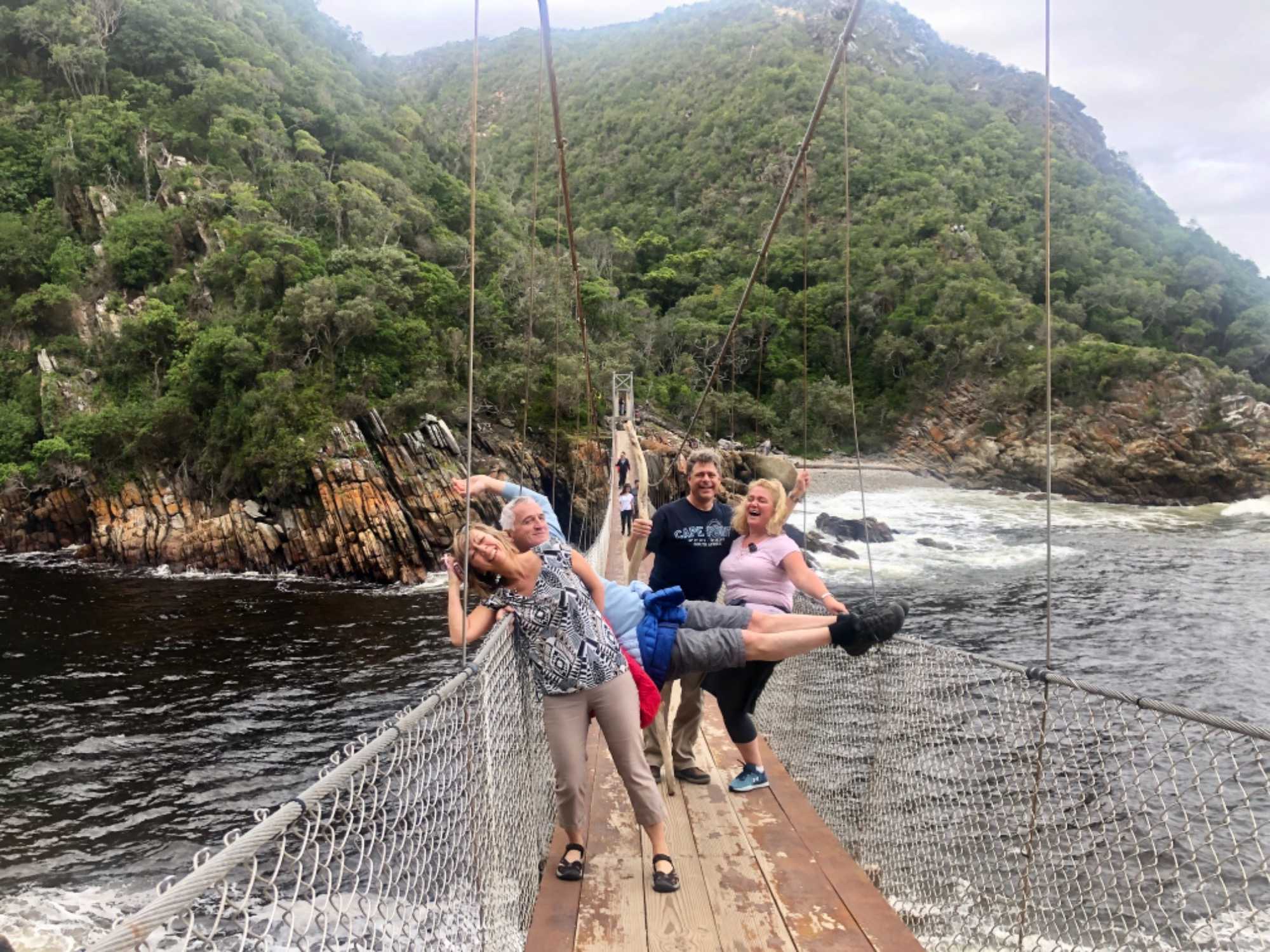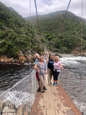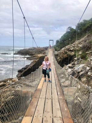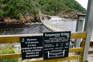 Il fait déjà, tôt, un bon 20 degrés mais en route sur le bord de l’Océan Indien le vent est un peu frais. Comme on nous avait prédit 30 degrés Celsius (à bord une bonne farce d’une voyageuse qui nous a dit "bien oui 15 degrés ce matin et 15 degrés en après-midi cela fait 30 degrés"!!!) cela nous surprend un peu à notre premier arrêt qui fût pour voir le plus haut pont pour le saut en Bungee au monde.
