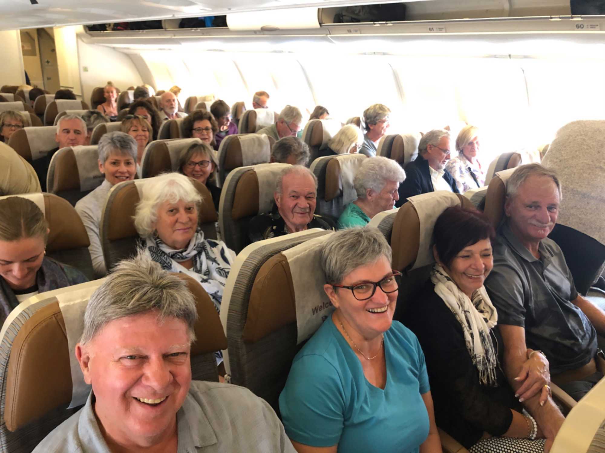 Il fait une température agréable au départ de notre superbe hôtel de charme où nous avons séjourné les deux dernières nuits. Mes voyageurs sont bien reposés car nous avons quitté à 10 heures ce matin, la grasse matinée quoi! Nous validons tous nos valises comme toujours et Waldo dit à Loulou qu’ils avaient embarqué quelques valises avant que nous arrivions. Ne voyant pas les deux nôtres, Loulou retourne vitement vers notre chambre et les valises ne sont plus là. Soulagée, elle embarque dans l’autobus et me dit tout est ok. Nous prenons la route et 7 minutes plus tard le téléphone sonne nous disant que l’hôtel a deux valises à nous…. Bien oui ce sont les deux nôtres, celle des deux Louises! Comme nous sommes dans deux minibus je retourne donc à l’hôtel pour les récupérer sous l’amusement et la taquinerie de mes passagers à bord. Heureusement que nous avions le temps et aussi que nous n’étions pas trop loin. L’hôtel a plein de chemins différents pour se rendre au lobby donc nos valises étaient en direction du lobby mais par une route différente de celle utilisée par Loulou qui allait valider leur ramassage. Nous quittons nos deux chauffeurs Dennis et Michael ainsi que notre guide Waldo après l'enregistrement pour notre vol.