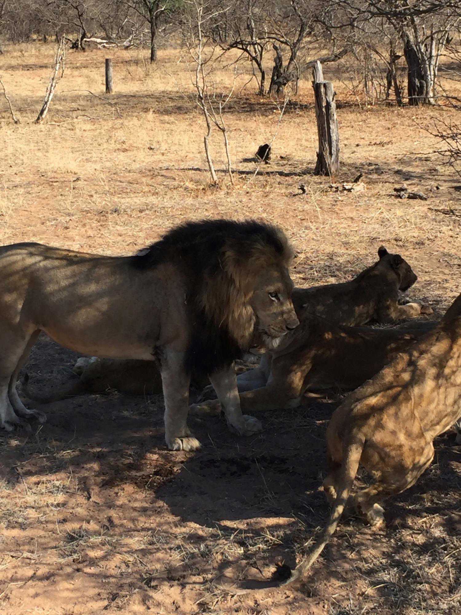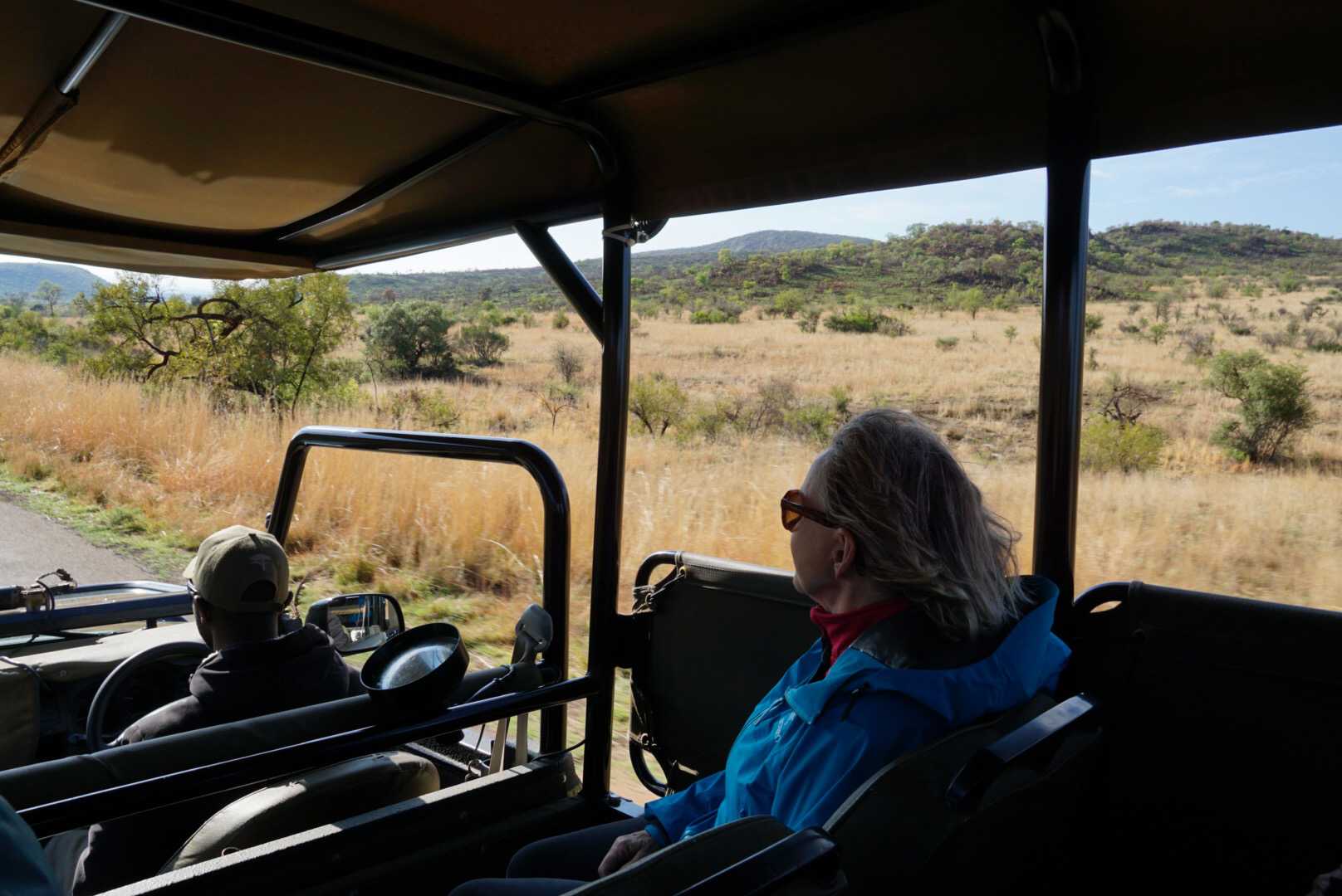 Réveil matinal malgré que ce matin nous sommes partis plus tard car on nous annonçait des orages tôt le matin qui ne sont pas arrivés finalement mais nous avions replanifié le départ à 7h et cela était bien pour récupérer un peu. C’est superbe le matin de faire des safaris nous permettant d’observer les animaux à l’aube, certains à leur retour de chasse… nous sommes toujours impressionnés par la beauté des paysages du Pilanesberg car cela ne ressemble en rien avec les autres endroits que nous avons eu pour nos safaris. Les montagnes, la savane et les routes sont magnifiques. Seule ombre au tableau c’est que le parc permet aux touristes de circuler dans le parc à entre 6h du matin et 19h le soir en utilisant leur propre voiture. Cela complique la vie de nos conducteurs de jeep. L’on ne changerait pas notre façon de visiter le parc qui est la meilleure façon avec nos jeeps pour 6 voyageurs.