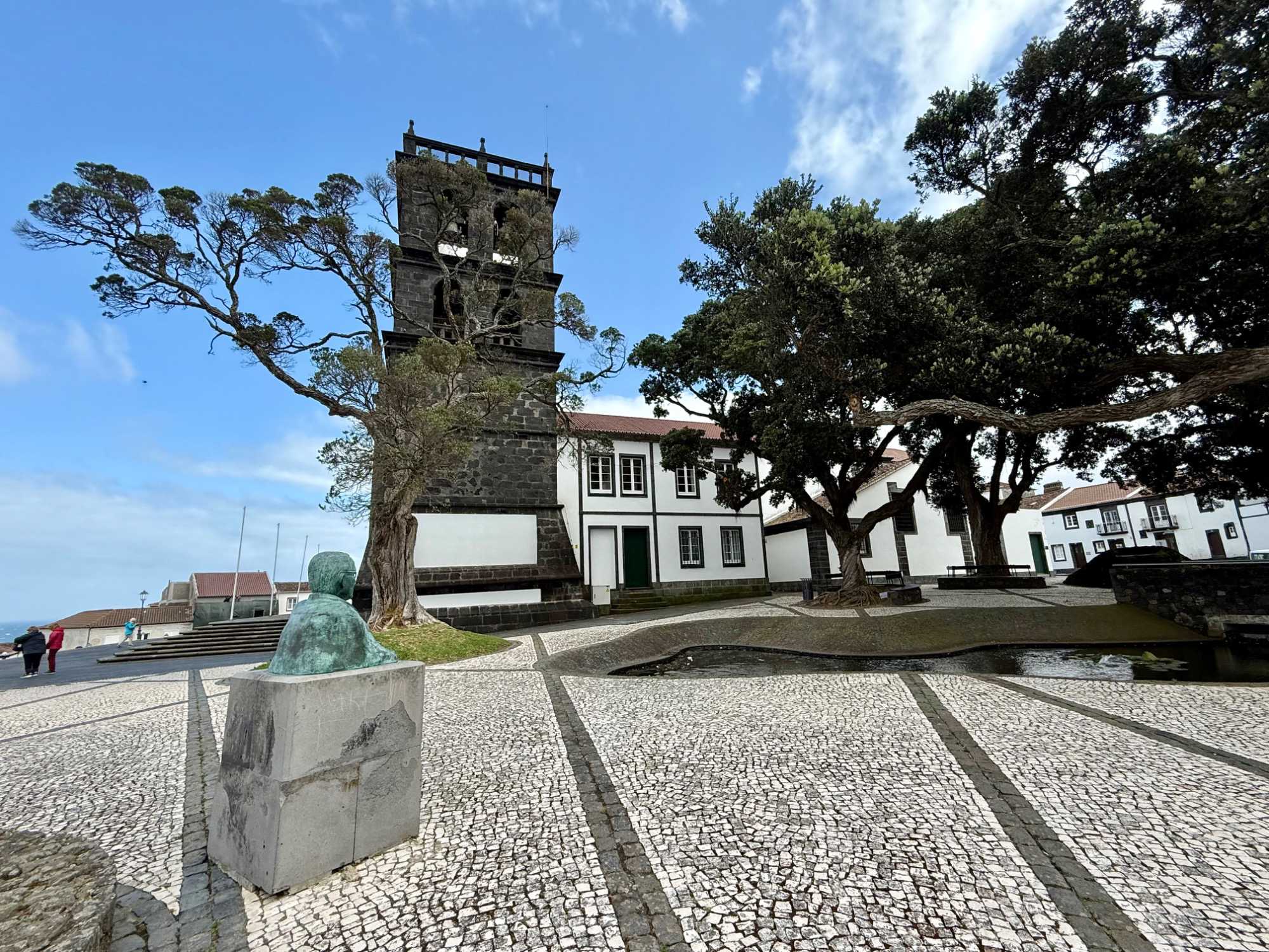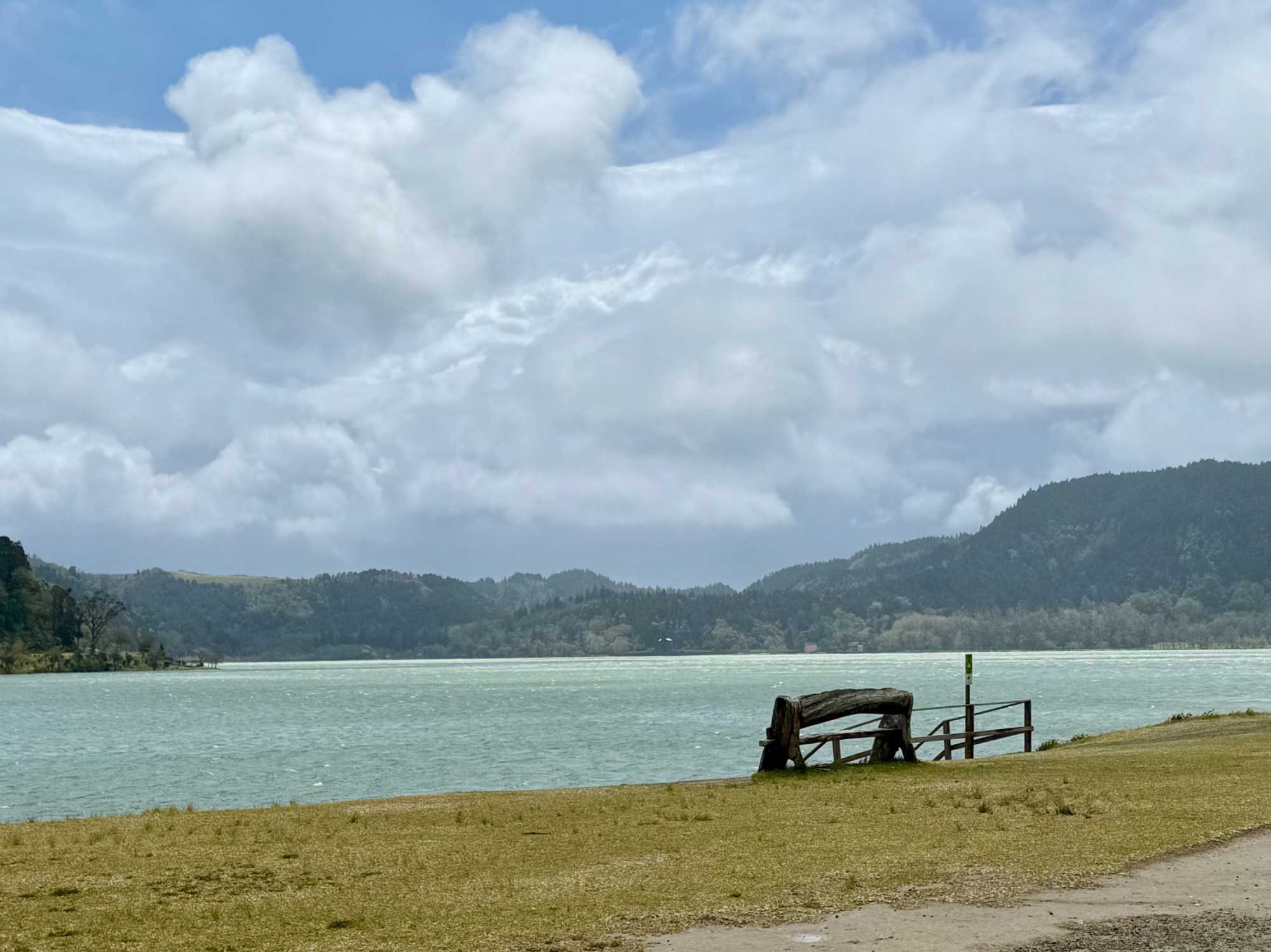 Le lac est alimenté principalement par les précipitations directes sur la caldeira et par le ruissellement superficiel des bassins versants. Les eaux fournissent de l'eau potable aux habitations des flancs sud de la caldeira. Pas de chance ce matin car le brouillard est présent nous empêchant de découvrir ce lac. On se console car notre voyageur, José, qui est natif de cet endroit nous dit que c’est bien difficile de le voir et qu’il se cache la majorité du temps. Nous serons pas mal dépeignés sur toutes nos photos à vous de nous reconnaître. Quand on parle du vent des Açores nous pouvons dire que nous savons ce qu’il en est de ces journées ou le vent s'invite.