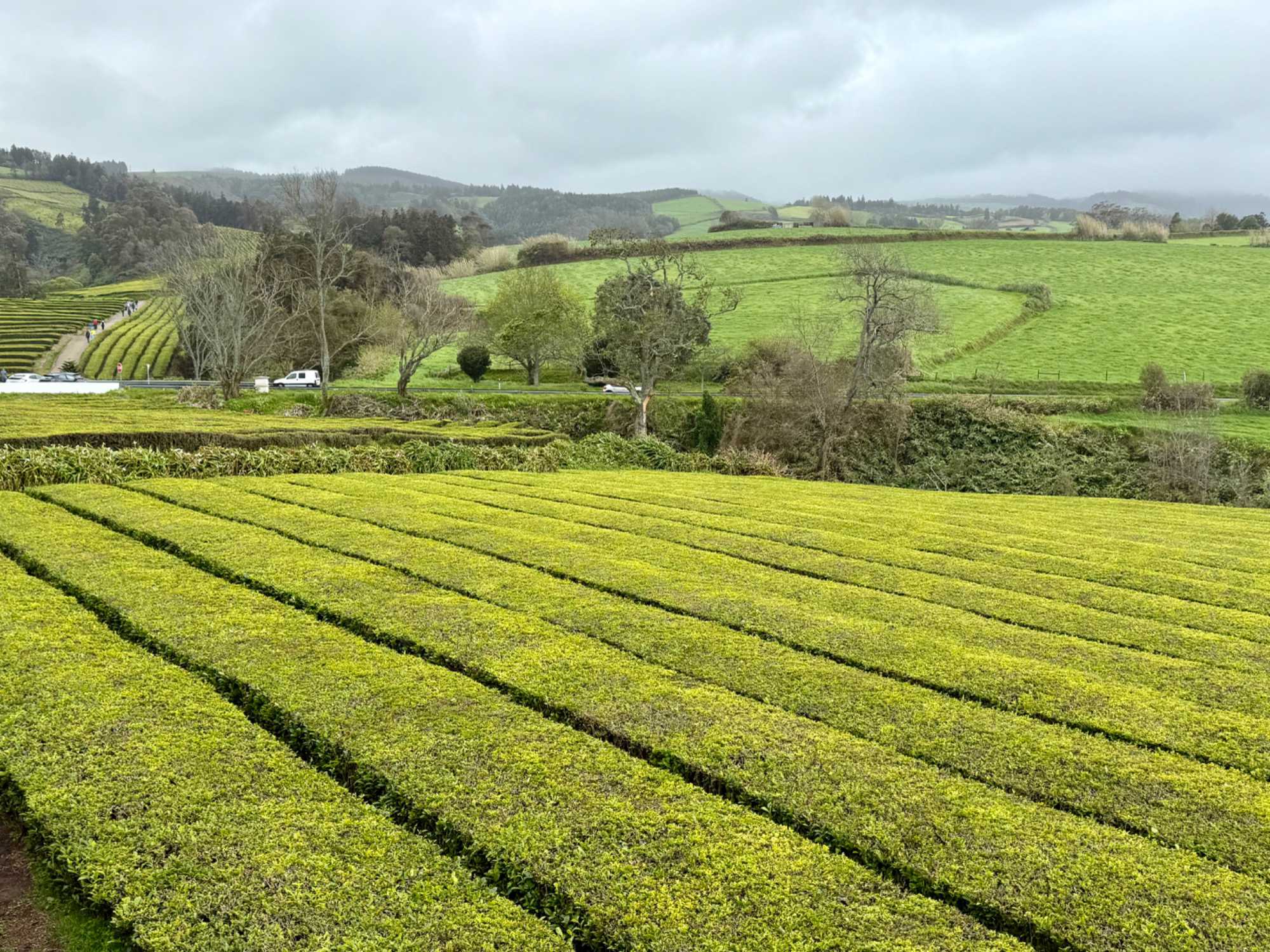 Ribeira Quente est une ville pleine de charme, prête à ravir les touristes qui visitent l'île de São Miguel. Ici, vous êtes sûr de vivre des moments uniques encadrés par un paysage bleu et vert. Le temps de prendre un petit café et de visiter sa très belle église. Ensuite, nous nous sommes dirigés vers la côte nord, où se trouvent les plantations de thé Gorreana. Nous avons fait la découverte des plantations et nous avons visité la petite fabrique, où nous avons gentiment été conviés à une dégustation de thé je dirais plutôt une belle dégustation de thé accompagnée de fromages locaux, le tout si bien présenté et dans un petit restaurant sympathique. Il s’agit d’une production familiale de thé datant de 1883. Le thé existe à l’état sauvage aux Açores depuis le XVIII e siècle, mais la culture a été introduite en 1874 par deux Chinois originaires de Macao. Les thés noirs et verts de la fabrique que nous avons visités sont essentiellement commercialisés sur le territoire portugais. La production annuelle atteint actuellement 40 tonnes à comparer aux 2500 tonnes en moyenne par plantation en Asie.