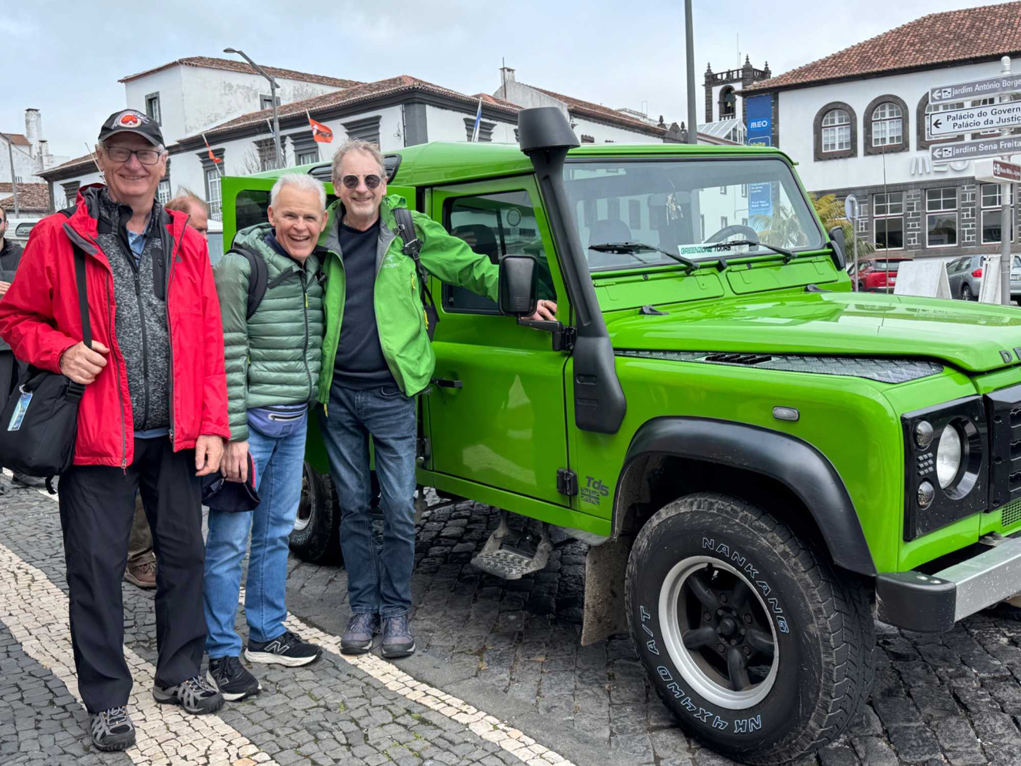 Après un excellent dîner, nous sommes montés à bord de nos jeeps pour faire la découverte des sentiers menant à Sete Cidades, définitivement l'une des merveilles du Portugal et de ce monde. Sete Cidades est une localité de la commune de Ponta Delaga, ici vivent moins de 1000 habitants. C’est ici que l’on trouve le lac bleu et le lac vert et un volcan. Le village conserve des maisons traditionnelles dont quelques-unes encore dotés de greniers sur pilotis. L’église Sao Nicholau est de style néogothique. Les belvédères nous ont offert une vue magnifique sur le lac Sete Cidades. Il s’agit de l’un des trois stratovolcans de l’île de Sao Miguel, situé dans le Parc Naturel du même nom.