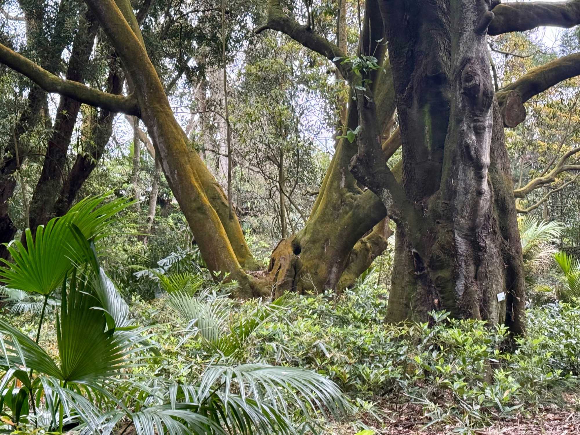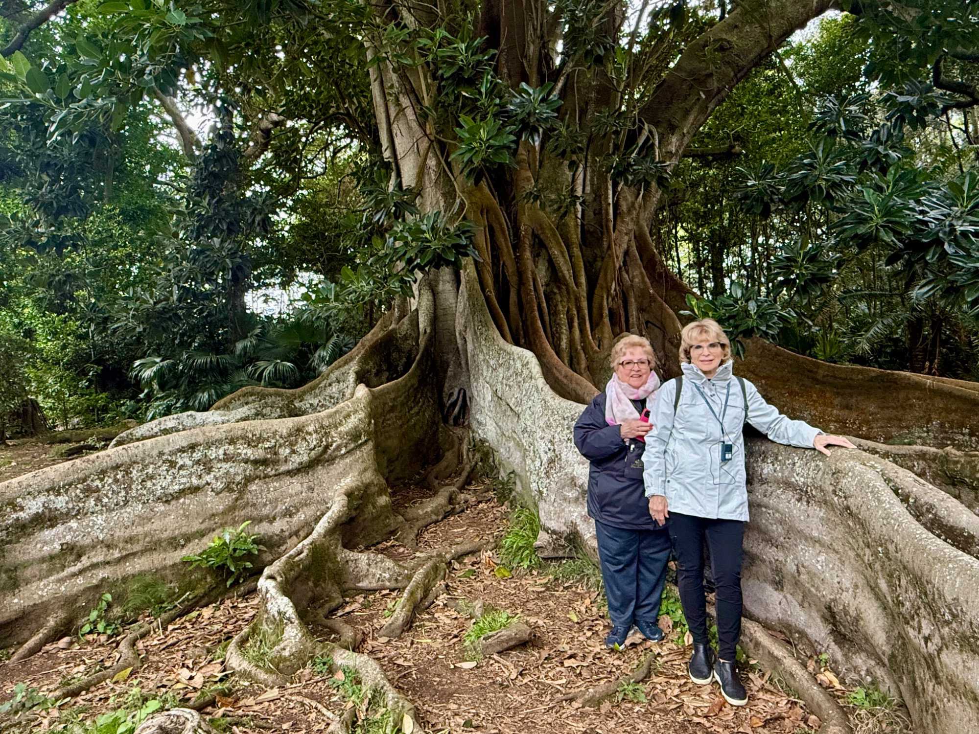 Certains arbres du Jardim Botânico José do Canto peuvent impressionner les visiteurs par leur taille. C'est le cas des figues de Moreton Bay (Ficus macrophylla) ou nous avons eu le plaisir de prendre une photo de groupe, ses racines peuvent même être plus hautes qu'une personne, et s’en approcher et les toucher peut nous faire ressentir la puissance de Mère Nature. C’est trop vrai que l’on se sent bien petit devant ces merveilles de la nature... Nous avons aussi découvert des pins de Bunya (Araucaria bidwillii) qui étaient magnifiques tout comme une espèce de bambous géants : Bambusa Bamboos qui sont imposants à voir et constituent une excellente toile de fond pour les photos. Ce n'est pas une végétation des Açores, ils l'ont importée, comme la plupart de la flore du parc. Nuno nous confirme que l’on y trouve des plantes de tous les continents.