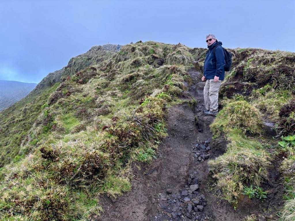 Comme d’habitude nous avions à faire un choix entre une randonnée et un tour de l’île. Plusieurs étaient heureux d’avoir choisi le tour de l’île car la randonnée n’était pas aussi facile que l’on disait. Nous avons de bons marcheurs mais avec les terrains accidentés et boueux ce n’était pas pour tout le monde. Heureusement tous sont revenus corrects et avec de bien belles photos par contre. Ils ont même eu de la grêle pour un petit 5 minutes durant leur randonnée, ensuite un bel arc en ciel. Ce parcours se déroule dans la réserve naturelle de Caldeira, et dans le paysage protégé de la partie centrale de l’île. Situé au cœur de l'île, il offre l'opportunité de connaitre l’important géosite de Caldeira. Cette caldera d’environ 2 km de diamètre a été formée par plusieurs éruptions, suivies de périodes de calme, au cours des derniers 400.000 ans.