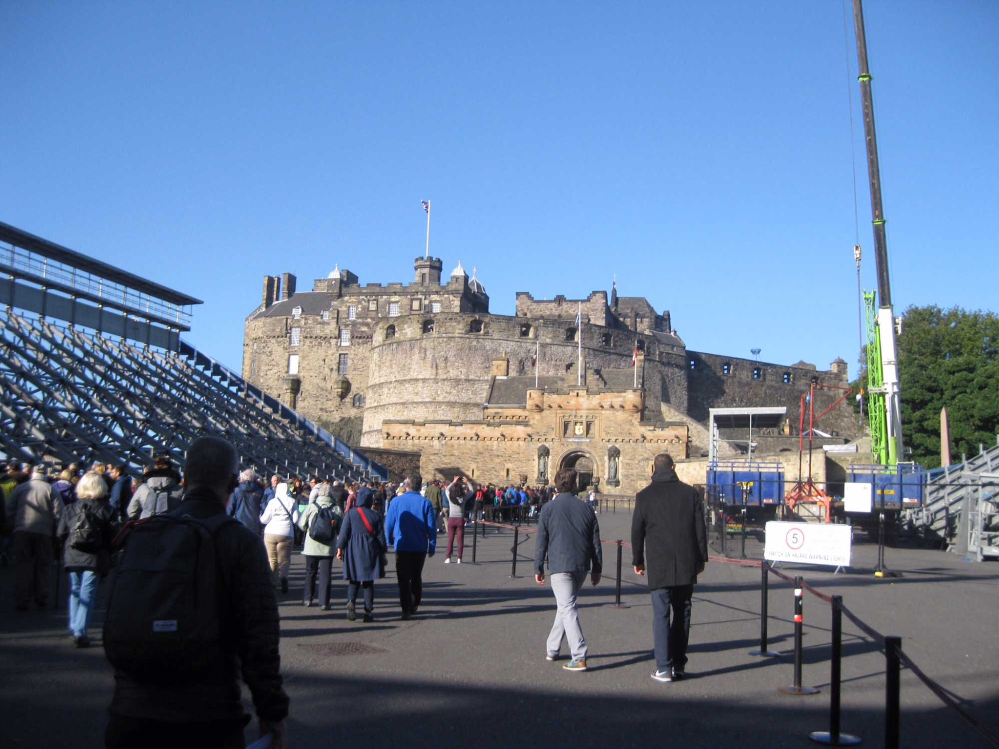 Notre première visite a été le château d'Édimbourg, visible de partout, il impose sa présence. Témoin de toute l'histoire de la ville, il a connu des hôtes aussi prestigieux que Marie-Stuart et Cromwell. La plupart de ses bâtiments datent du XVIe siècle mais on note que certains dateraient aussi loin que du XIIe siècle. Construit sur un rocher d'origine volcanique, il fut, au début, une forteresse, utilisé dans un but militaire. Sa vocation n'a changé que tout récemment.