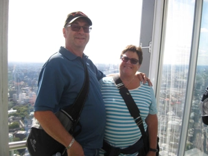 Nous avons pris un ascenseur ultra-rapide ( 6 mètres / seconde ) qui nous a propulsés au 68e étage. C'est le point d'observation le plus élevé de la capitale britannique. Quand la visibilité le permet, à 264 mètres, on peut avoir une vue exceptionnelle dans un rayon de 65 km. Malheureusement aujourd’hui avec la couverture de nuages, la visibilité était limitée mais nous avons une vue spectaculaire de Londres.